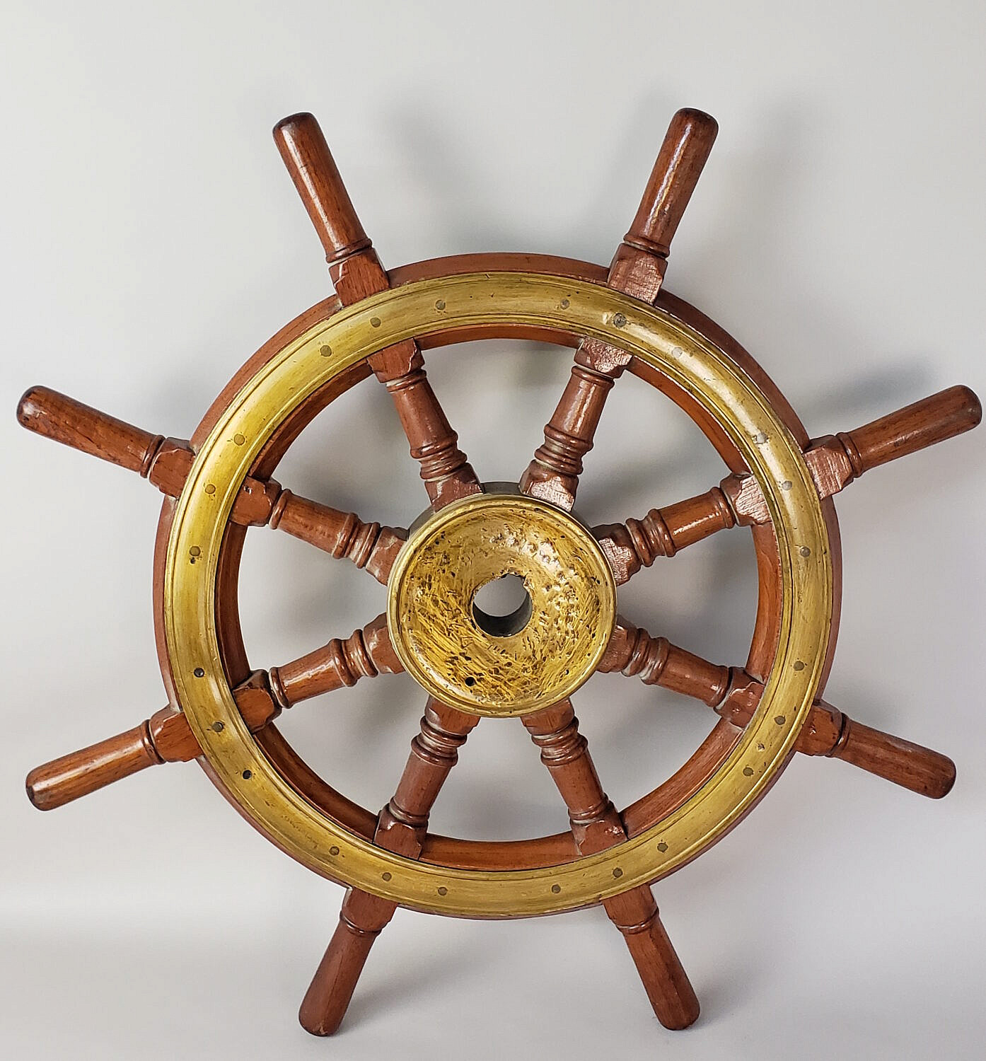 Antique Eight-Spoke Suicide Knob Ship Captain’s Yacht Wheel Consign Now DeptCollections, Decorative Arts, Furniture/Decorative Arts, Maritime ArtsSize28.5 in. x 30.5 in. x 5 in. Antique Eight-Spoke Suicide Knob Ship Captain’s Yacht Wheel, brass and mahogany construction. 28.5 in. x 30.5 in. x 5 in. Please note that this auction has ended. Click here for an overview of this auction.