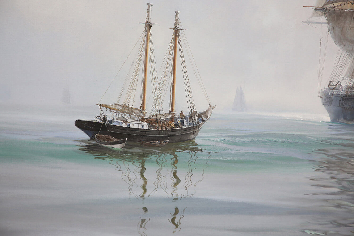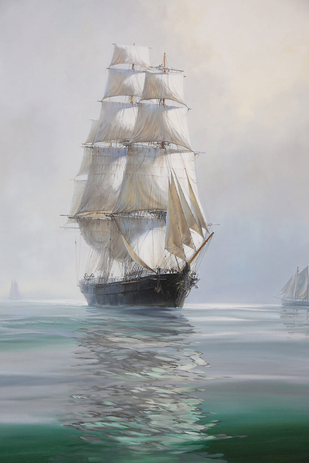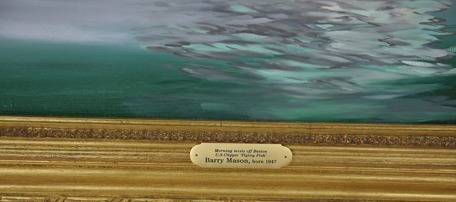 Barry Mason Oil on Canvas “Morning Mists Off Boston U.S. Clipper Flying Fish”