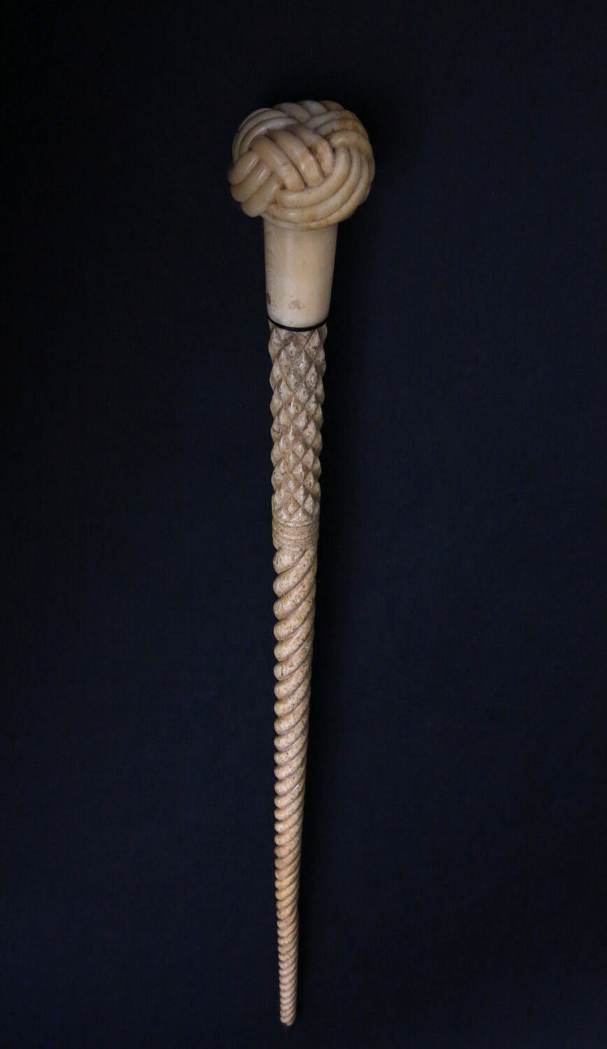 Fine Antique Whale Ivory and Whalebone “Turk’s Knot” Walking Stick, mid 19th Century Consign Now Dept19th Century Scrimshaw, Decorative ArtsSizeLength 32.5 in. Fine Antique Whale Ivory and Whalebone “Turk’s Knot” Walking Stick, mid 19th Century , on hatch and twist carved whalebone shaft terminating in brass ferrule. Note: mended shaft as depicting in images Length 32.5 in. Please note that this auction has ended. Click here for an overview of this auction.