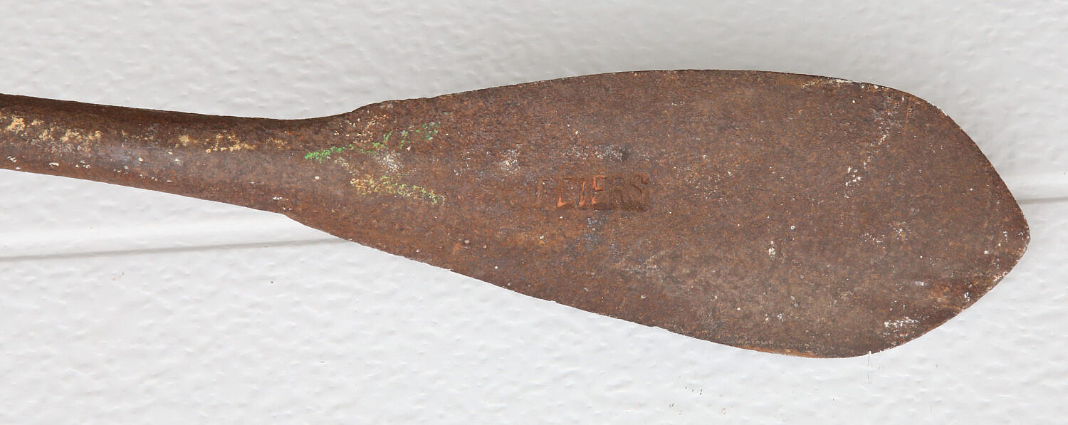 Signed Ambrose J. Peters New Bedford Iron and Cast Steel Killing Lance Harpoon, circa 1860 Consign Now DeptDecorative Arts, Maritime ArtsSizeIron Length 66.5 in. Overall Length 128 in. Signed Ambrose J. Peters New Bedford Iron and Cast Steel Killing Lance Harpoon, circa 1860, head marked “Cast Steel” and “Peters”; long shaft ending in expansion sleeve socket attached to old if not original wood handle Iron Length 66.5 in. Overall Length 128 in. Please note that this auction has ended. Click here for an overview of this auction.
