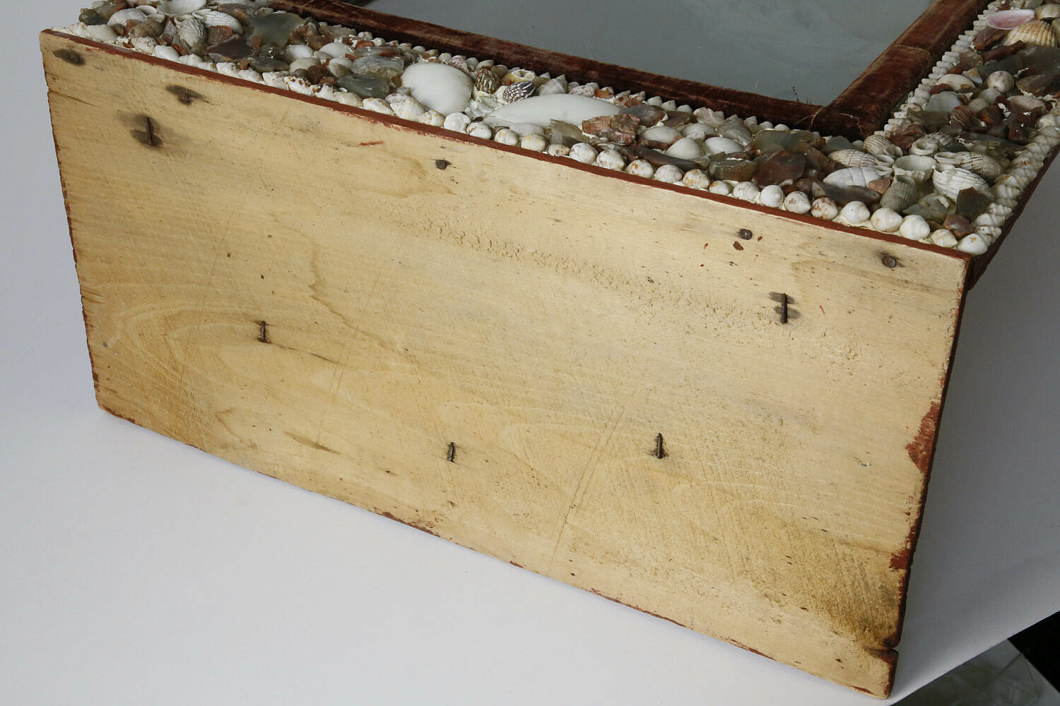 American Shell and Chipped Agate Encrusted Display Case, circa 1850 Consign Now DeptDecorative Arts, Furniture/Decorative ArtsSizeHeight 23.5 in. Width 17 in. Depth 8.5 in. American Shell and Chipped Agate Encrusted Display Case, circa 1850, dome and finial pediment above a glazed conforming door and wallpaper wrapped back Height 23.5 in. Width 17 in. Depth 8.5 in. Please note that this auction has ended. Click here for an overview of this auction.