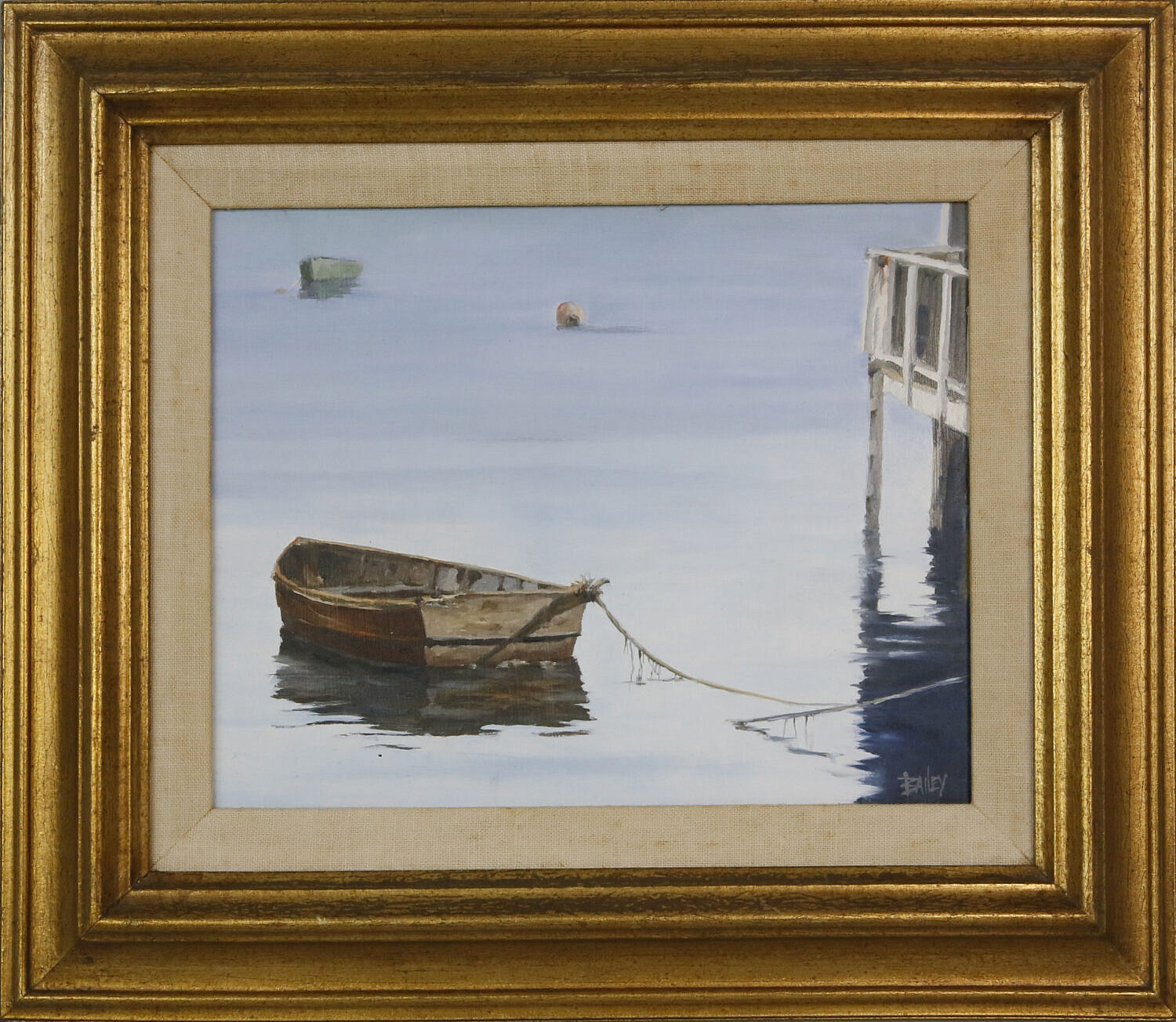 Roy Bailey Oil On Board “Study of a Dory” Consign Now DeptFine Arts, Maritime Arts, Nantucket ArtSize8 in. x 10 in. Framed 12.75 in. x 14.75 in. Roy Bailey (American 1933-2002) Oil On Board “Study of a Dory”, signed lower right Bailey, in molded gilt frame with linen liner 8 in. x 10 in. Framed 12.75 in. x 14.75 in. Please note that this auction has ended. Click here for an overview of this auction.