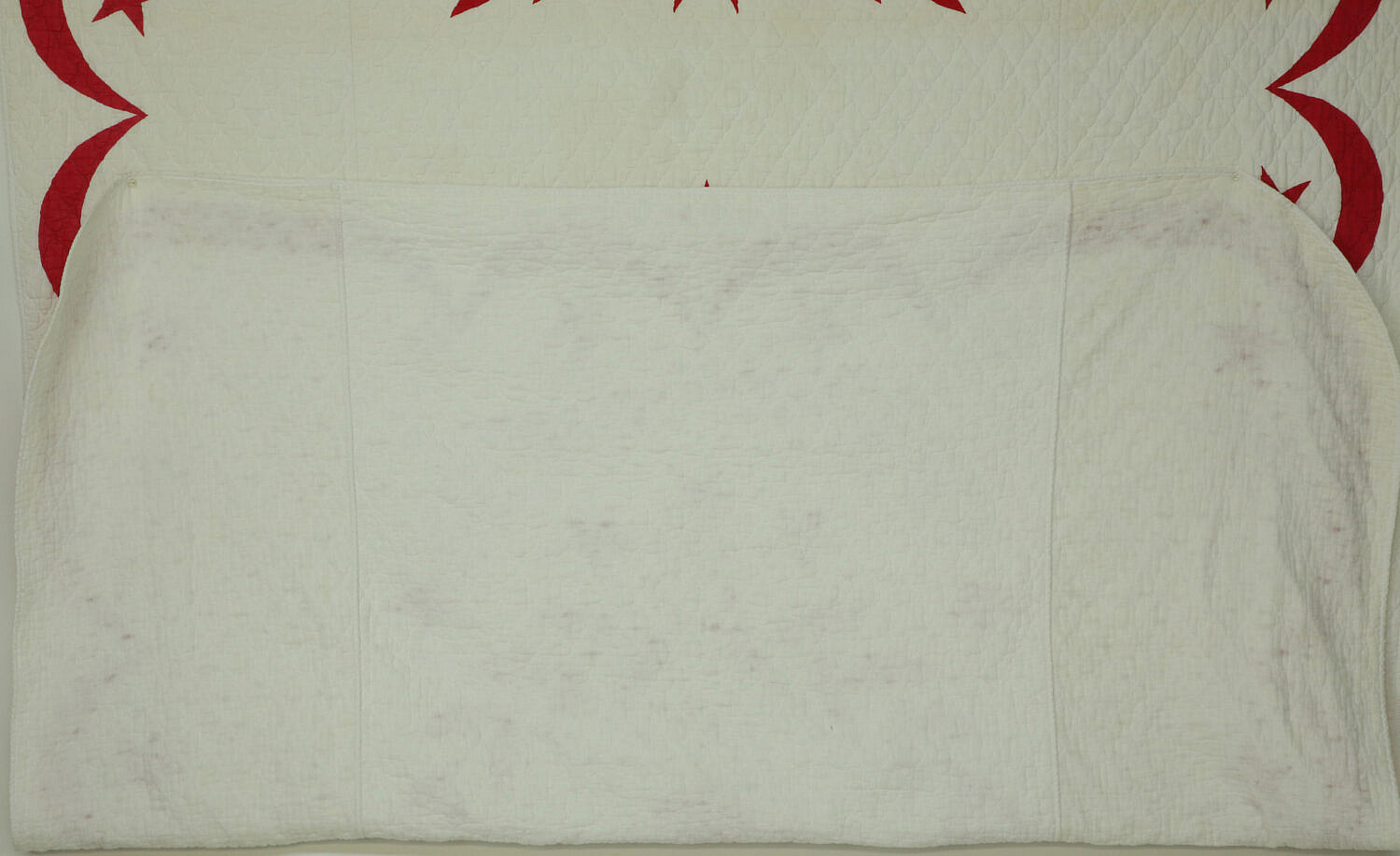 Vintage Patriotic American Eagle Quilt, red fabric on white background with eagle surrounded by stars, laurel and holding arrows in talons