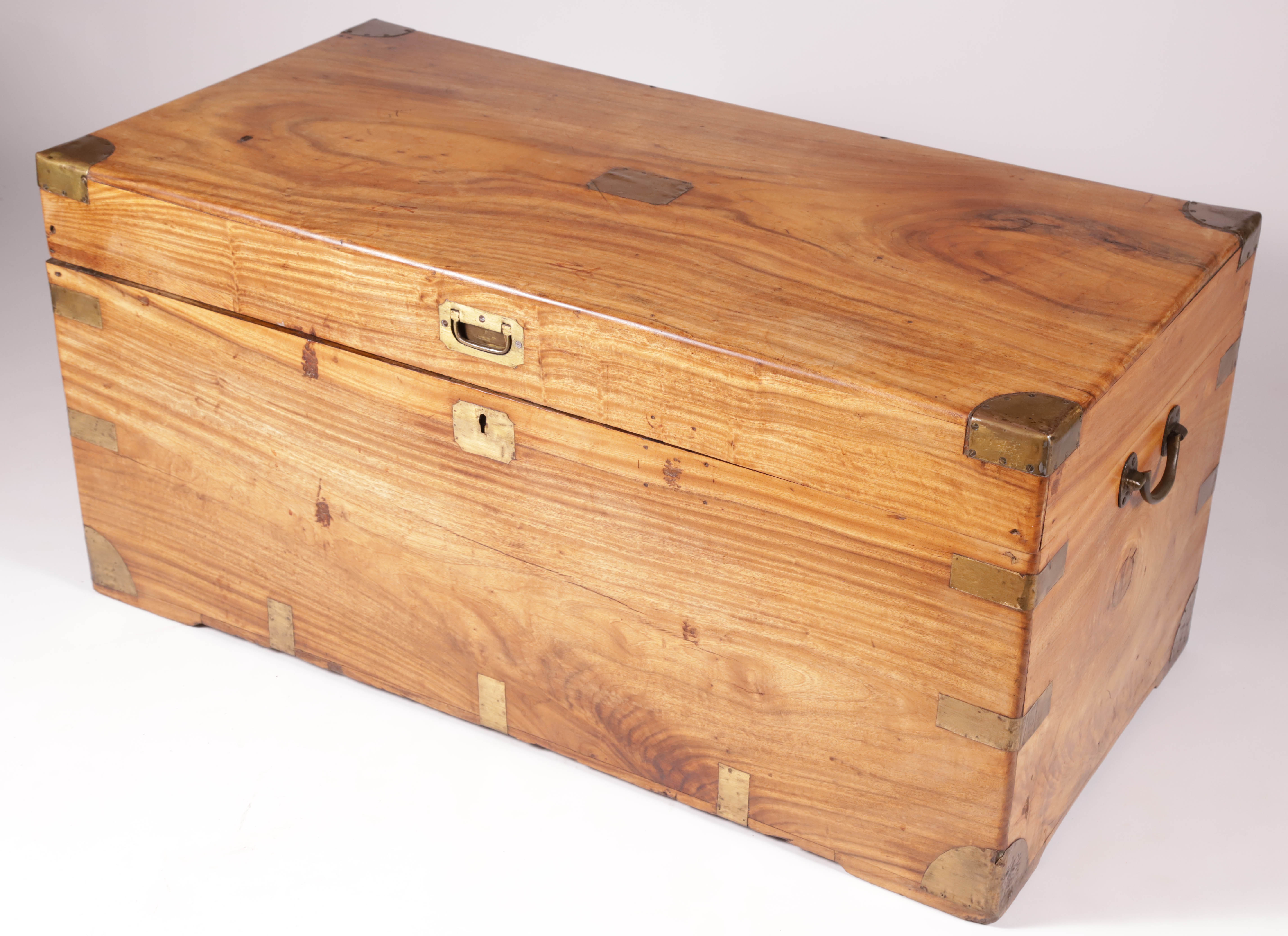 Chinese Export Brass Bound Camphorwood Trunk, 19th Century Consign Now DeptAsian Arts/China Trade, FurnitureSizeHeight 19 in. Width 40 in. Depth 20 in. Chinese Export Brass Bound Camphorwood Trunk, 19th Century Height 19 in. Width 40 in. Depth 20 in. Please note that this auction has ended. Click here for an overview of this auction.