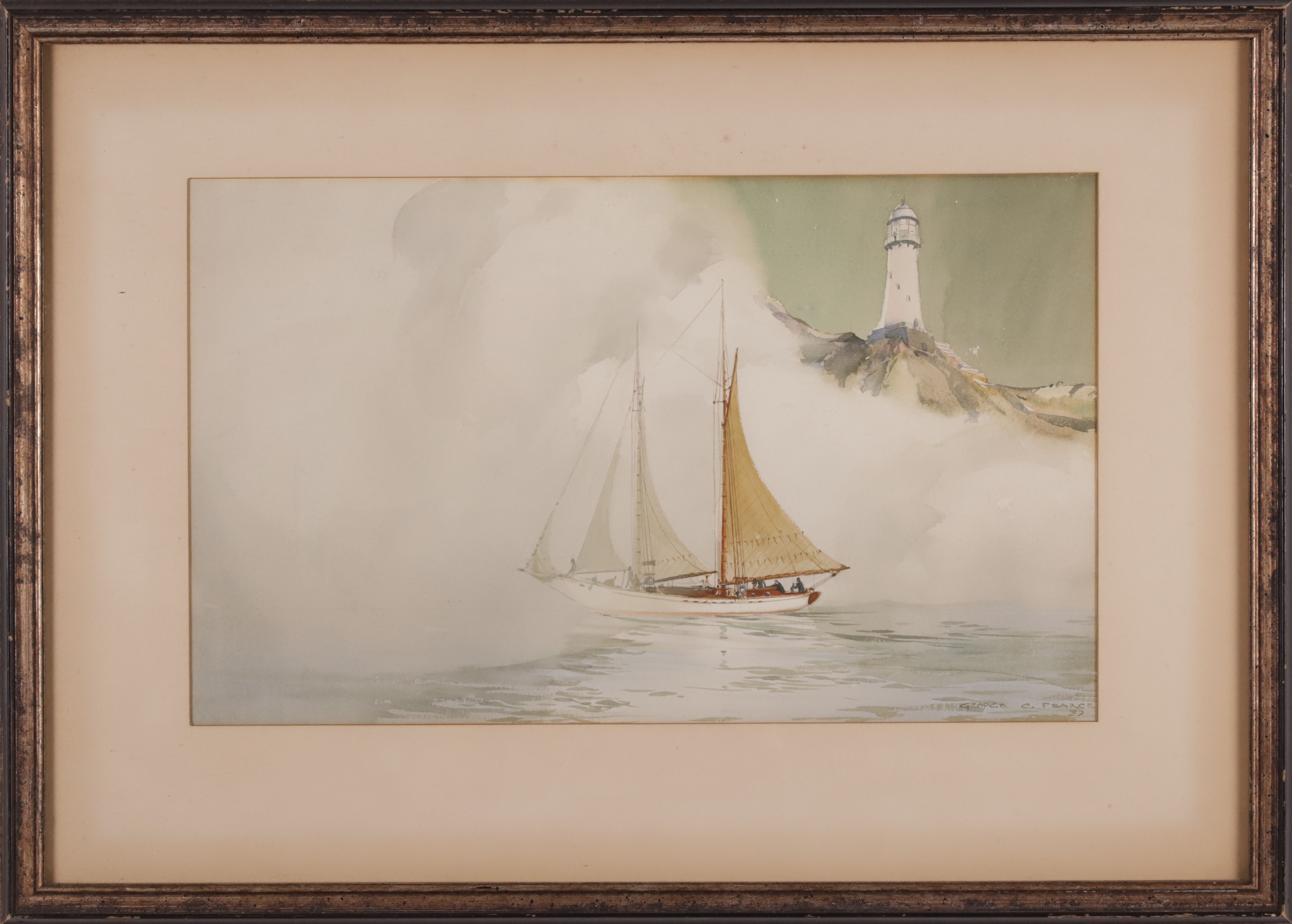 George C. Pearce Watercolor on Paper “Sailing into the Fog”, circa 1937