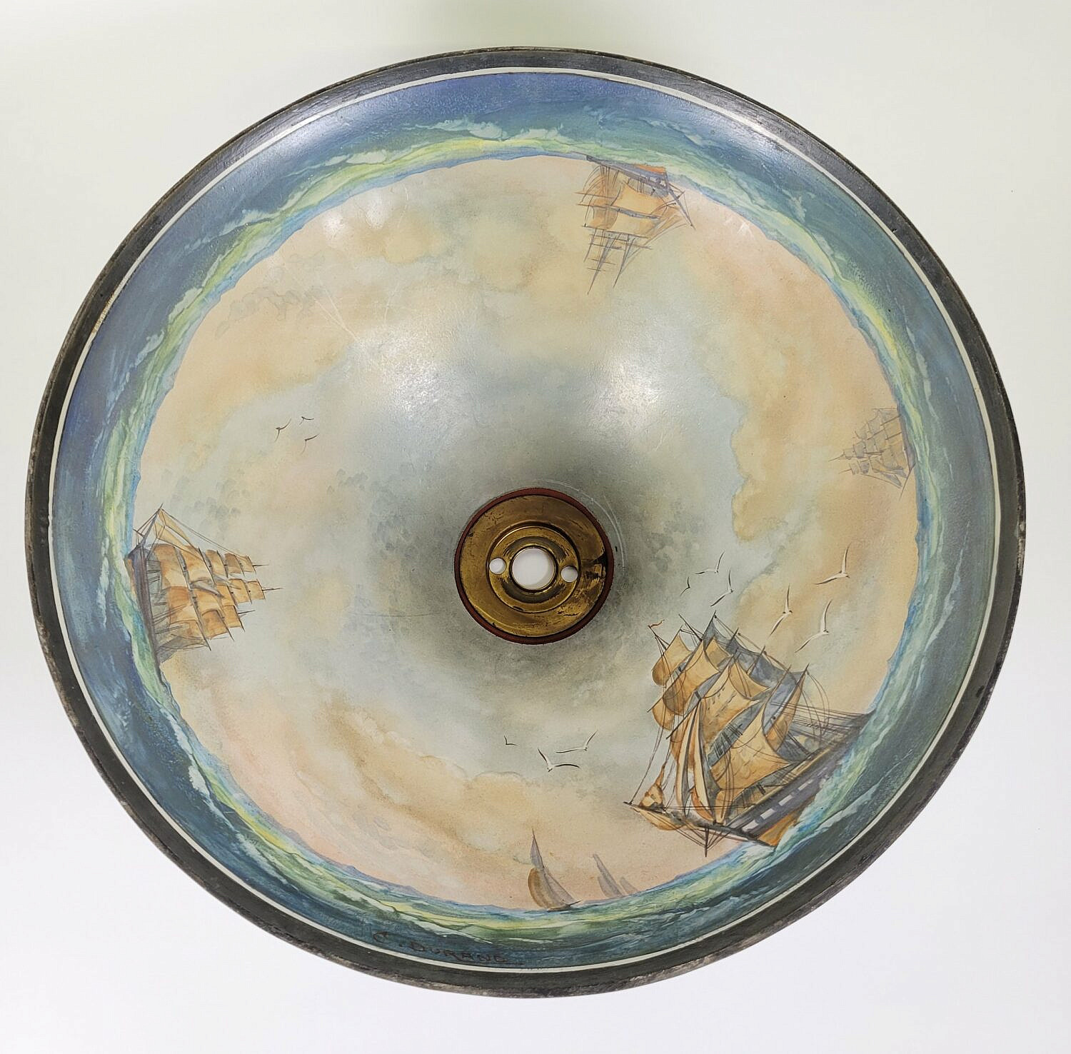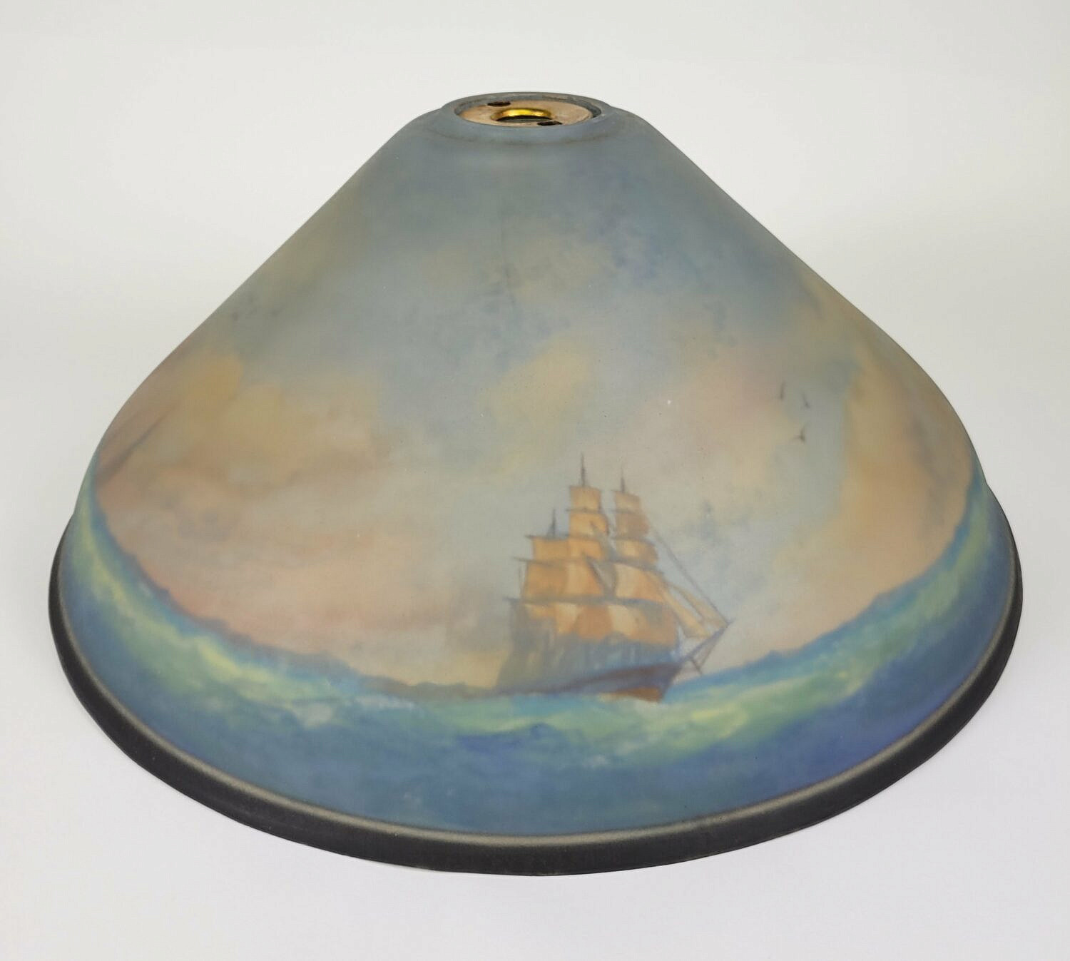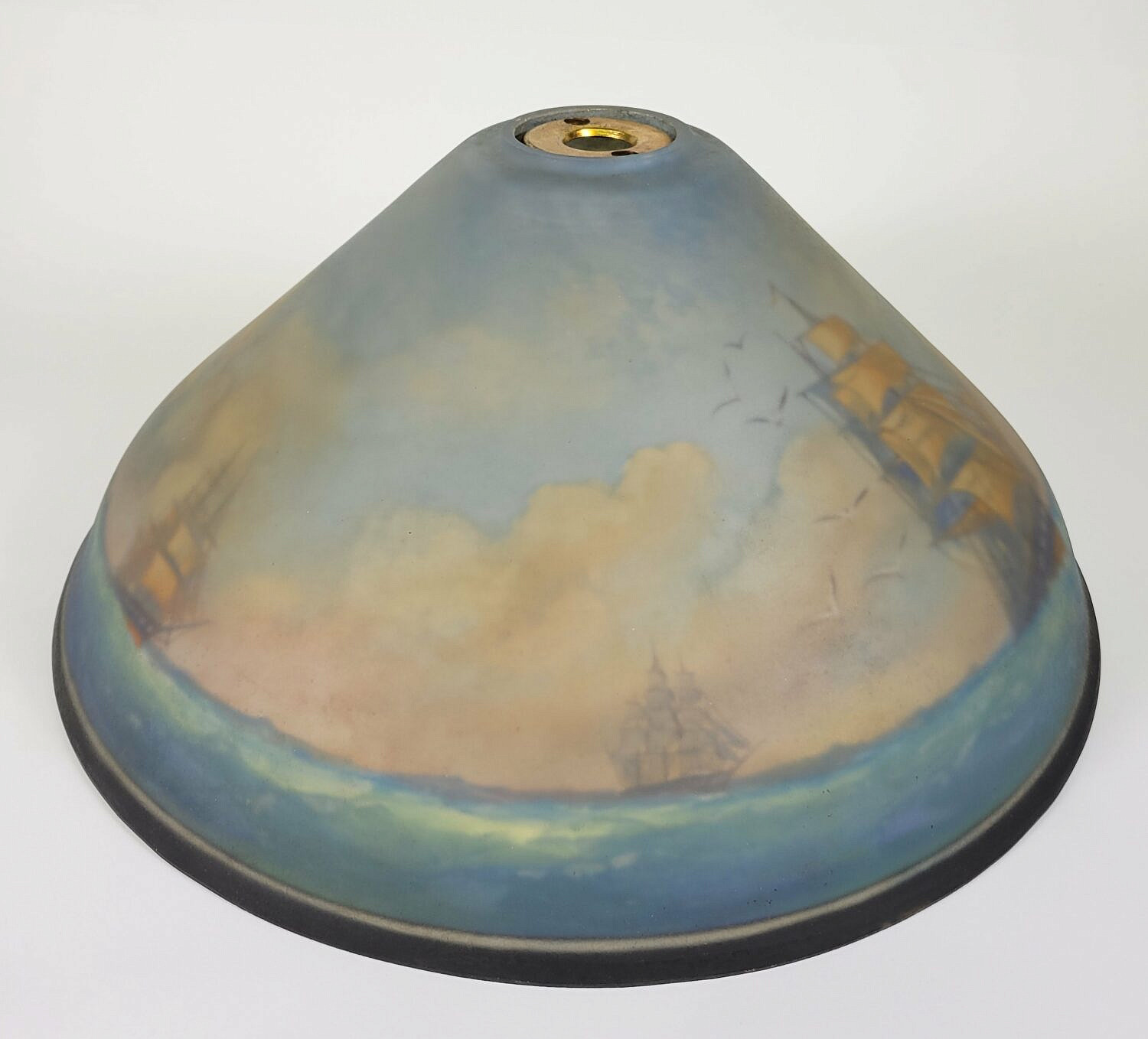 Antique Pairpoint Reverse Painted Nautical Ship Decorated Glass Lamp Shade Consign Now DeptLighting/Candlesticks/SconcesSizeHeight 7.75 in. Diameter 17.75 in. Antique Pairpoint Reverse Painted Nautical Ship Decorated Glass Lamp Shade, seascape with multiple sailing ships on rolling waves, signed by the artist C. Durand and stamped The Pairpoint Corp. on the inner rim. Height 7.75 in. Diameter 17.75 in. Please note that this auction has ended. Click here for an overview of this auction.