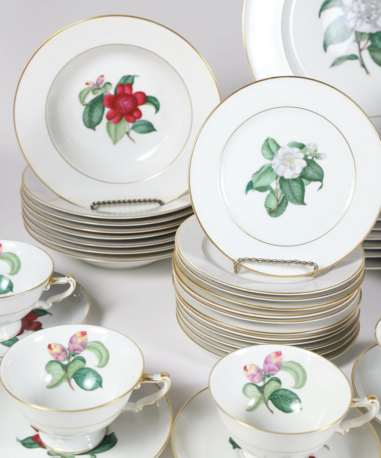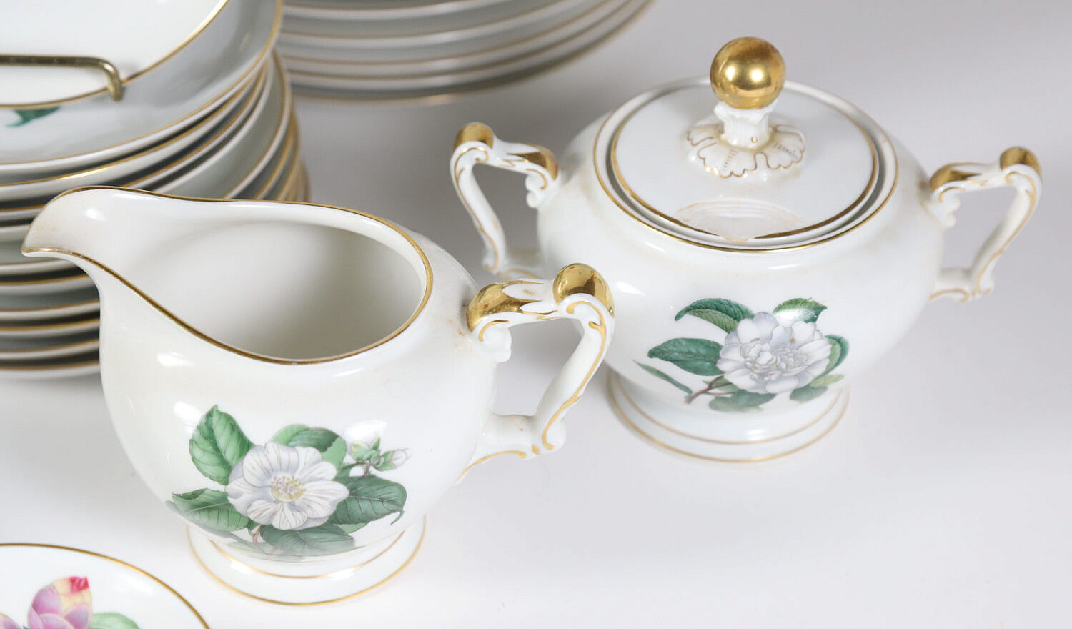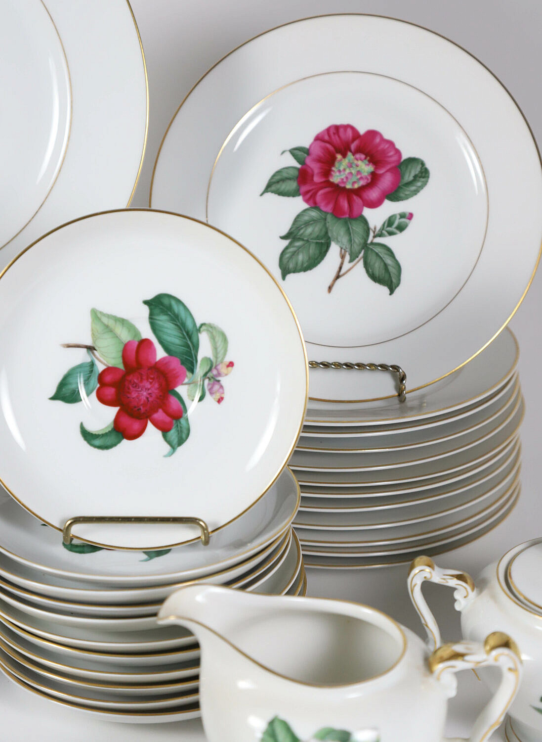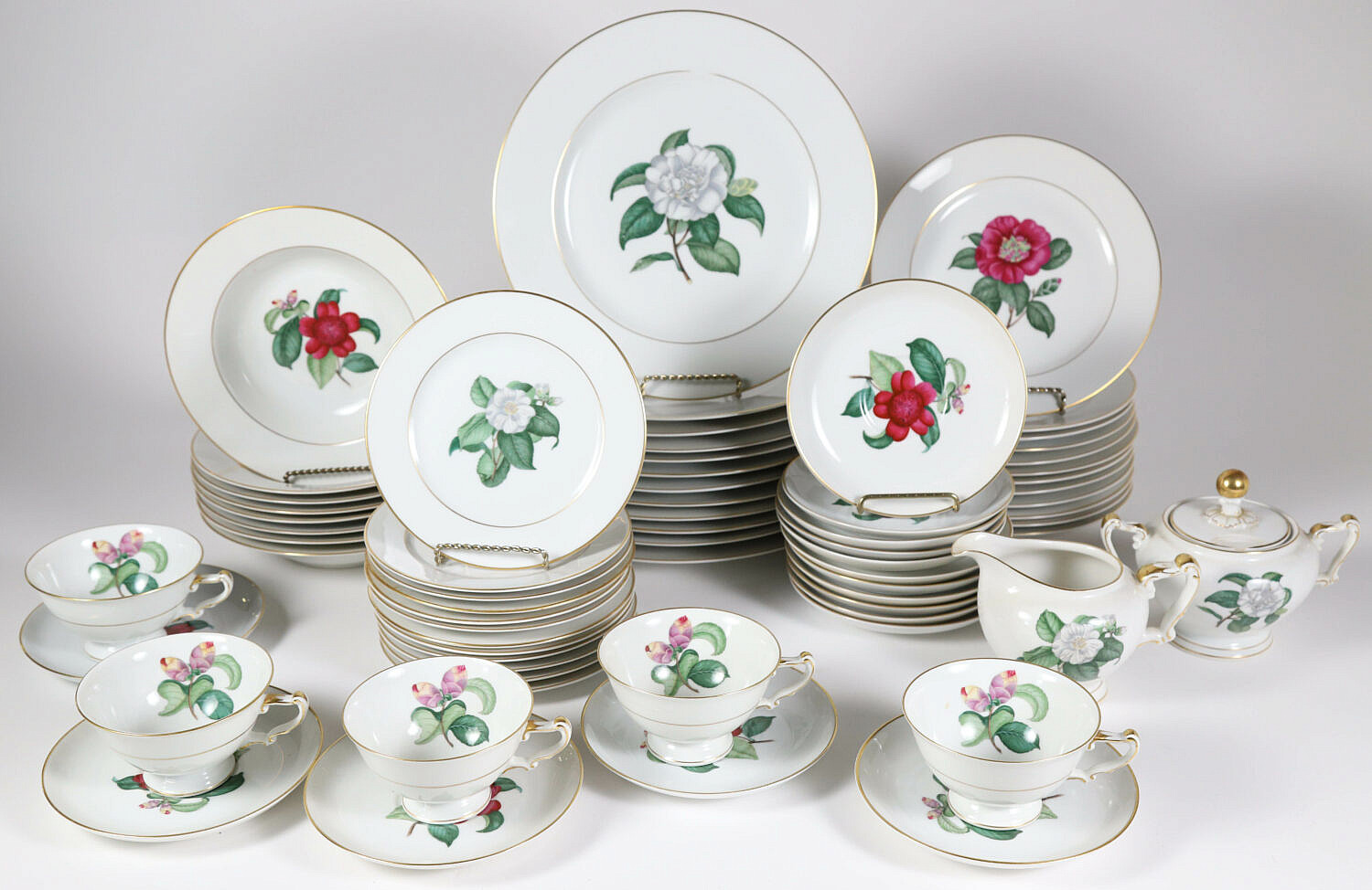 H. & Co. Selb Bavaria Germany Dinner Service in the Camellia Japonica Floral Albo Pattern