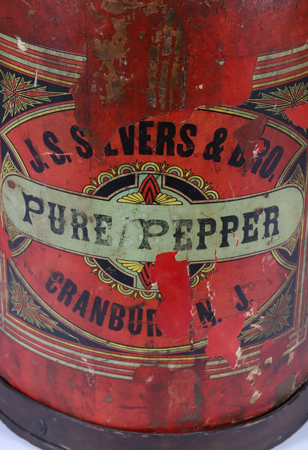 Antique J.S. Silvers & Bro. Pure Pepper Container Consign Now DeptDecorative ArtsSizeHeight 17 in. Diameter 12 in. Antique J.S. Silvers & Bro. Pure Pepper Container Height 17 in. Diameter 12 in. Please note that this auction has ended. Click here for an overview of this auction.