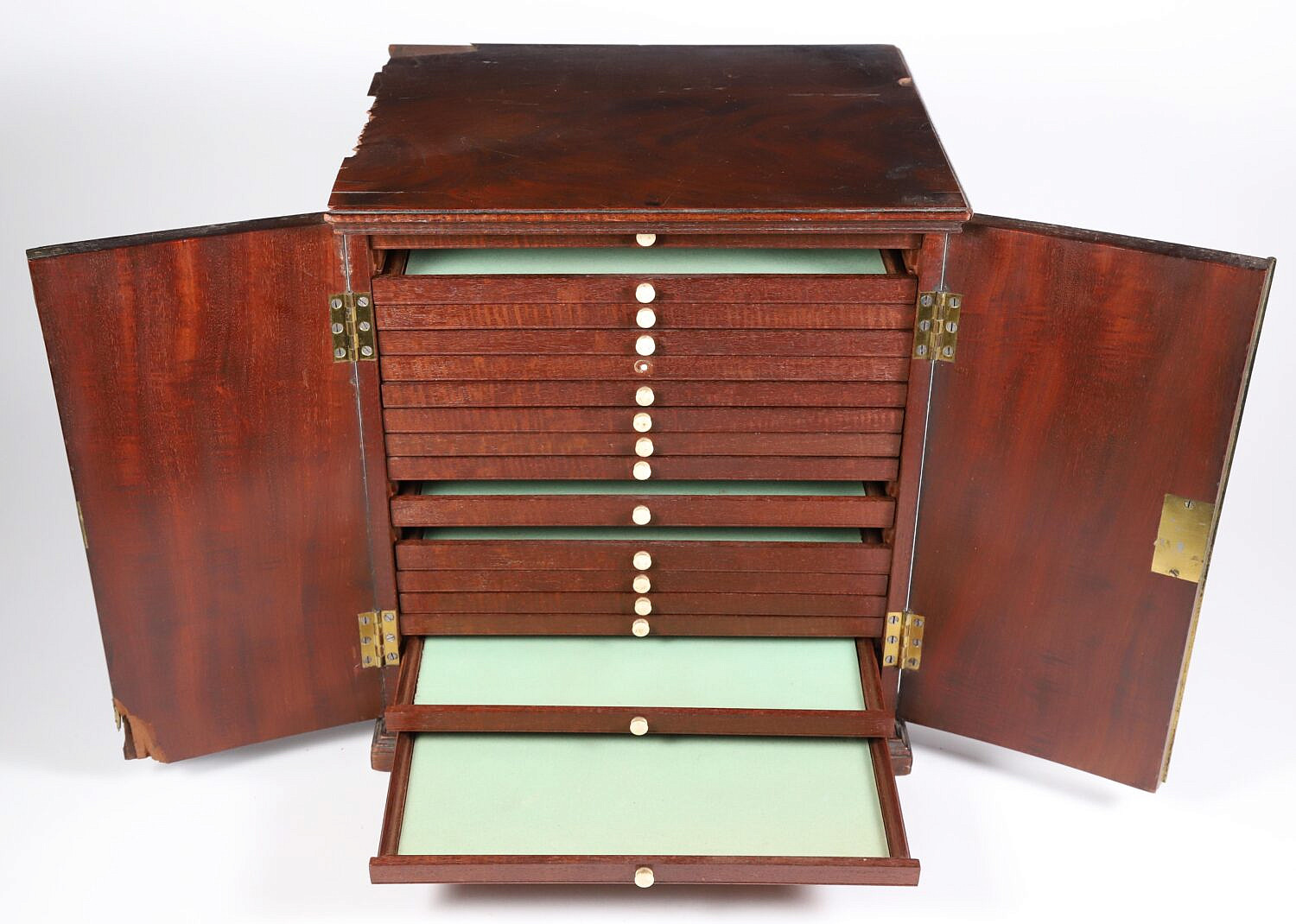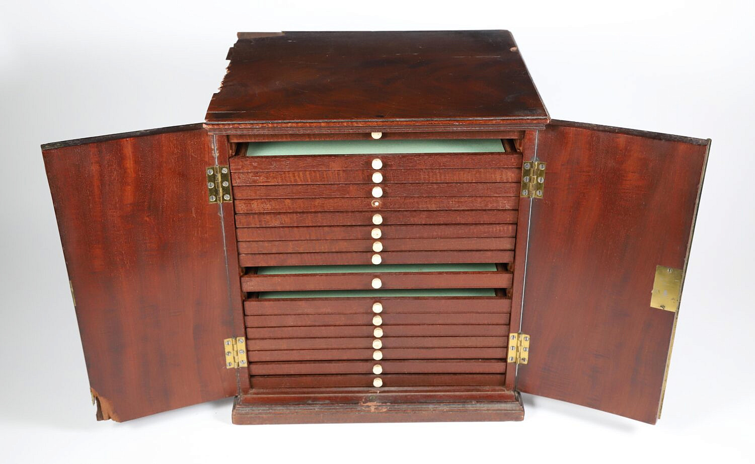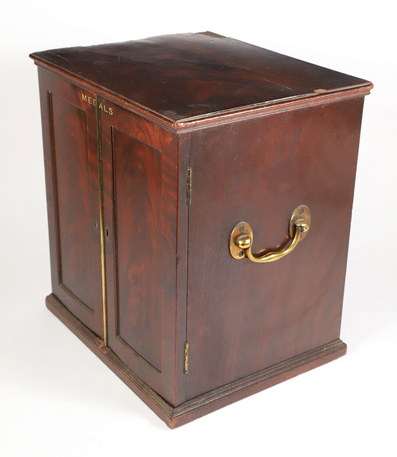 Mahogany Medal Box, 19th Century Consign Now DeptDecorative Arts, FurnitureSizeHeight 15 in. Width 12 in. Depth 10.5 in. Mahogany Medal Box, 19th Century, with two cross-banded doors revealing multi-drawers and brass carrying handles Height 15 in. Width 12 in. Depth 10.5 in. Please note that this auction has ended. Click here for an overview of this auction.