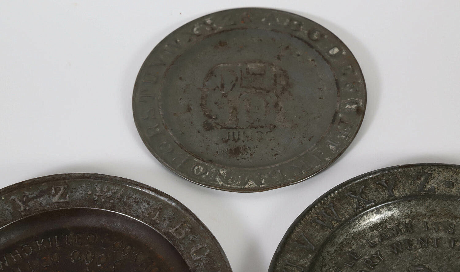 Six Embossed Tin Child’s Plates, 19th Century Consign Now DeptDecorative ArtsSizeDiameters 6 in. to 8 in. Six Embossed Tin Child’s Plates, 19th Century Diameters 6 in. to 8 in. Please note that this auction has ended. Click here for an overview of this auction.