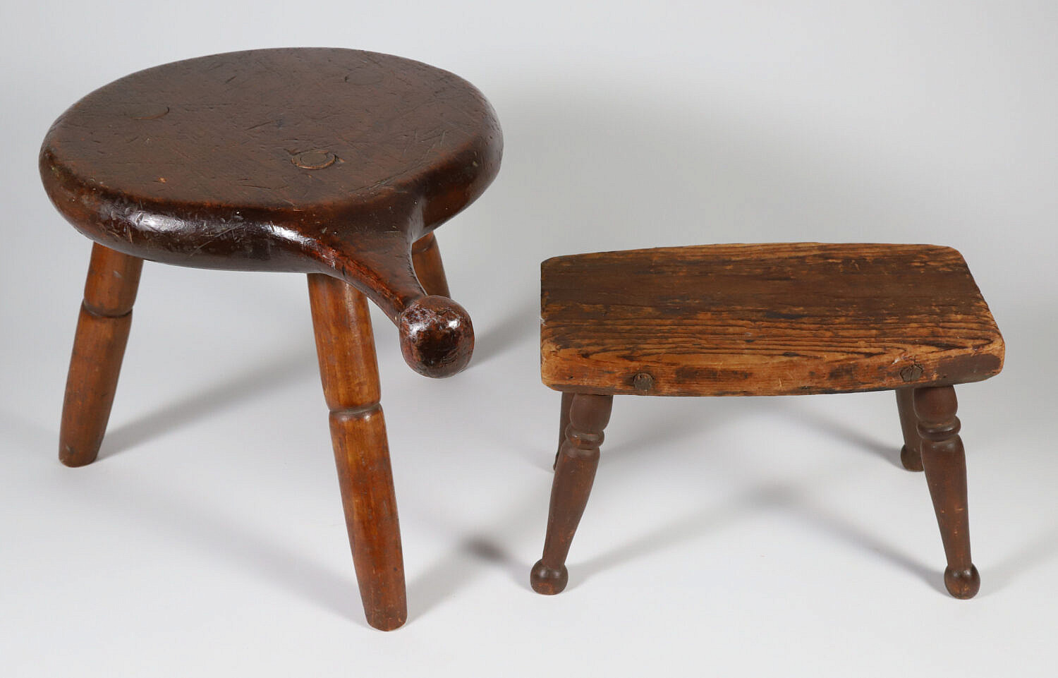 Two Antique American Milking Stools Consign Now DeptAmericana and Folk Arts, Decorative Arts, FurnitureSize7.5 in. x 11 in. x 6 in. and 11 in. x 17.5 in. Two Antique American Milking Stools 7.5 in. x 11 in. x 6 in. and 11 in. x 17.5 in. Please note that this auction has ended. Click here for an overview of this auction.
