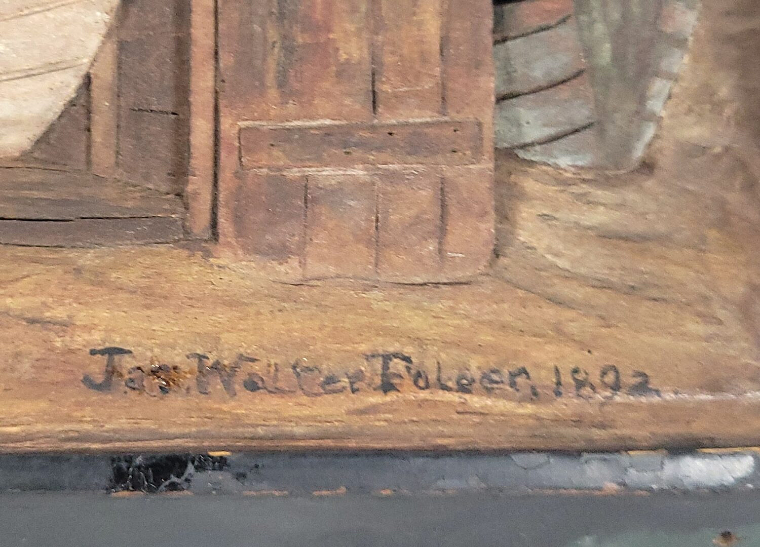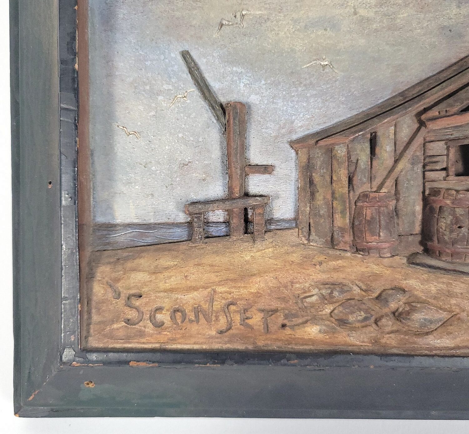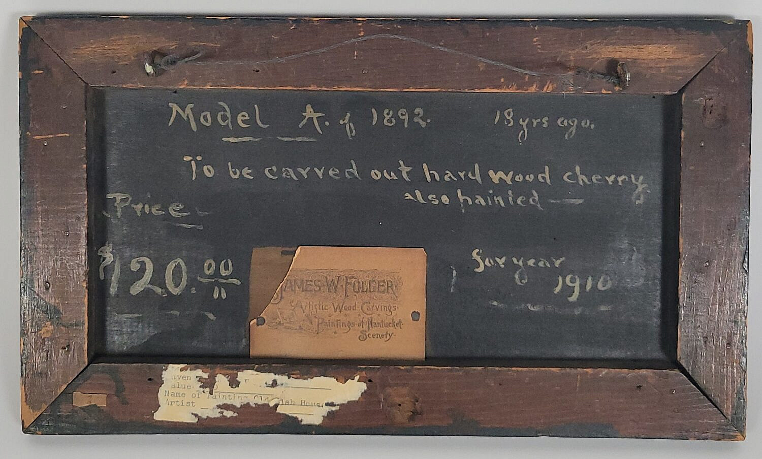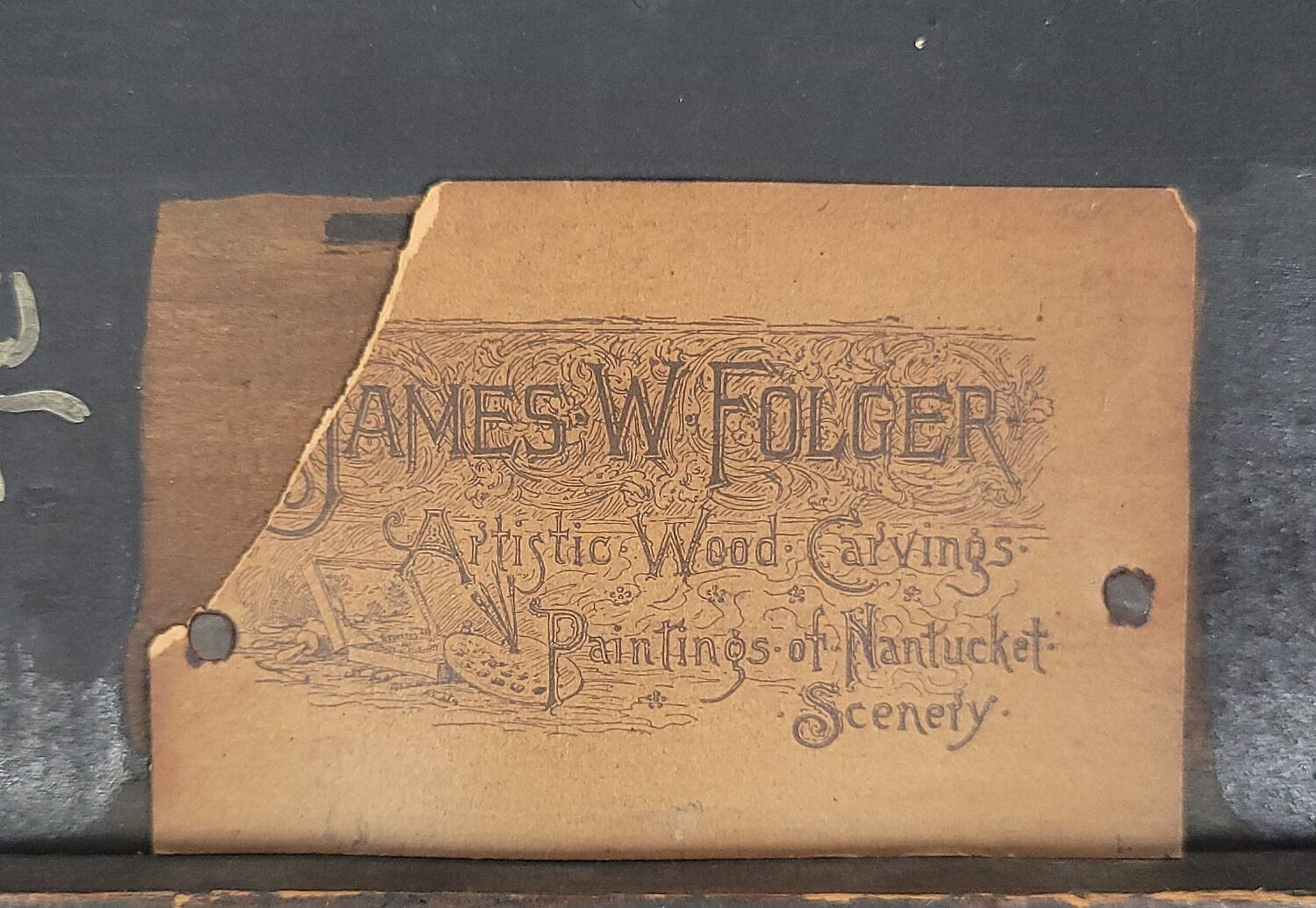 1892 James Walter Folger Folk Art Carved Sconset Nantucket Plaque Consign Now ArtistJames Walter Folger (Massachusetts 1851-1918)Click here for artist bioDeptNantucket ArtSizeOverall 8 in. x 14 in. 1892 James Walter Folger Folk Art Carved Sconset Nantucket Plaque, showing an old Sconset fishing shack, carved and polychrome paint decorated wood, signed and dated lower right, with painted inscription and Folger’s business card on reverse. Overall 8 in. x 14 in. Please note that this auction has ended. Click here for an overview of this auction.