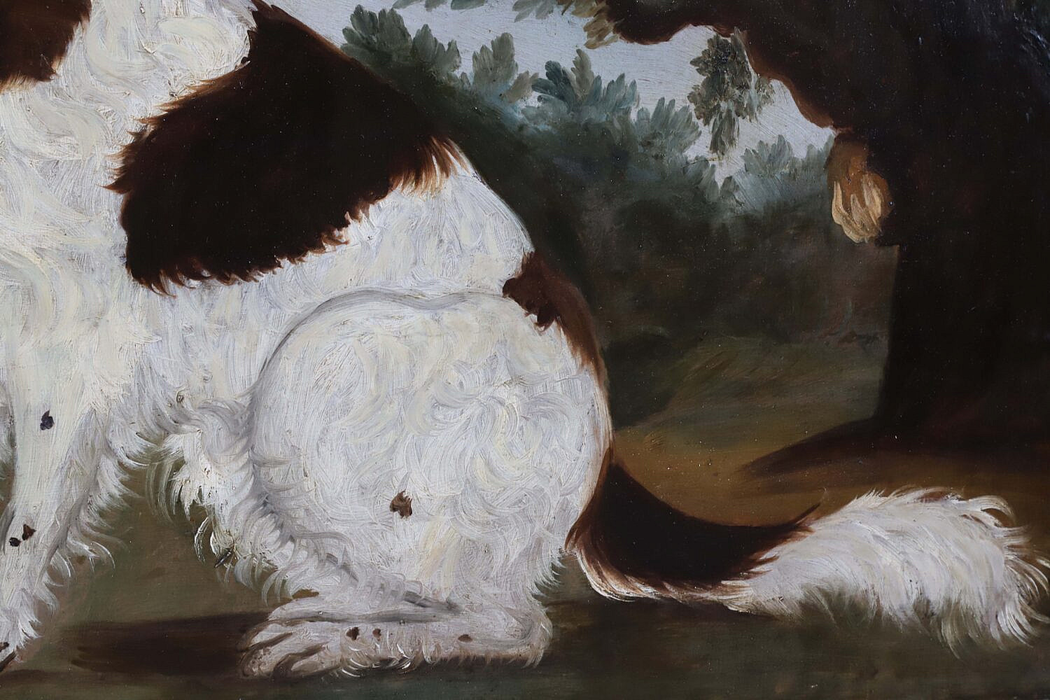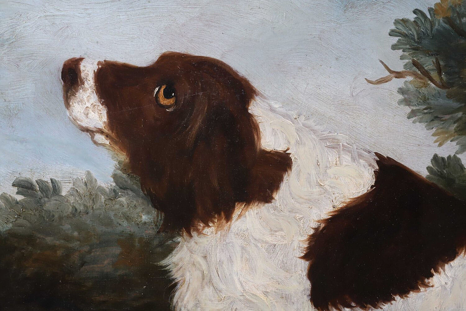 American Folk Art Oil on Wood Panel Portrait of a Spaniel
