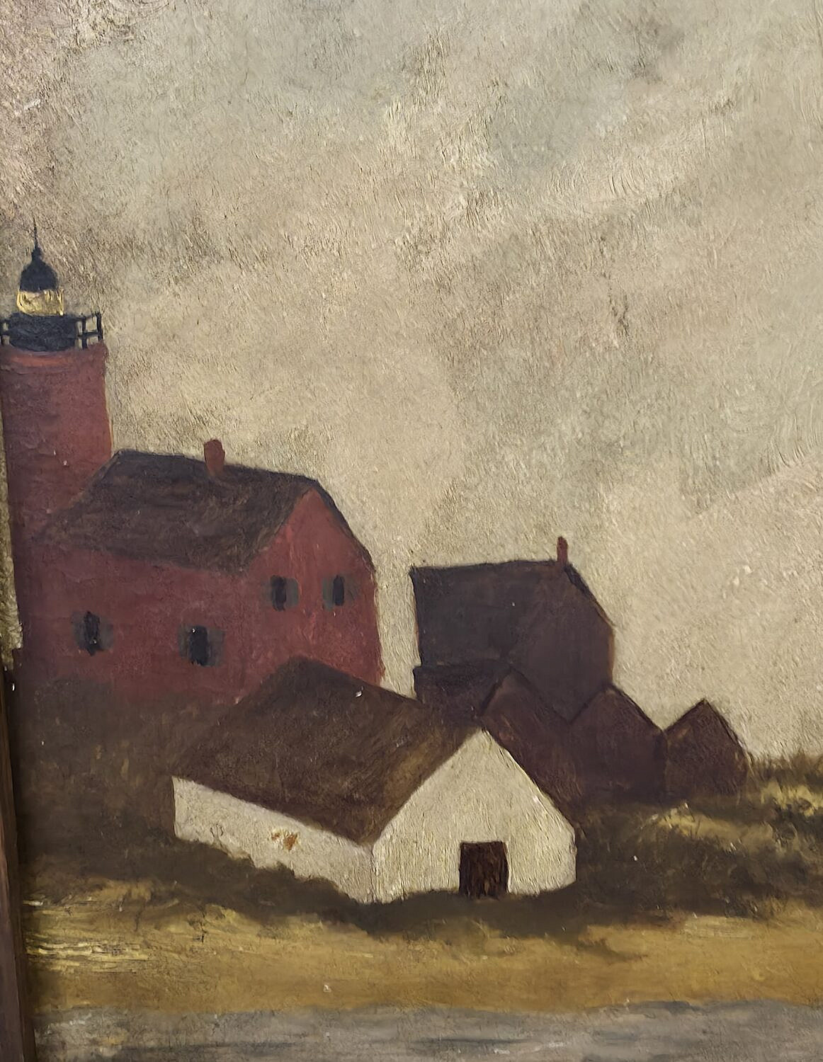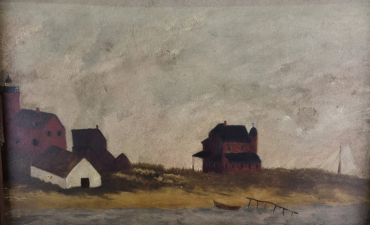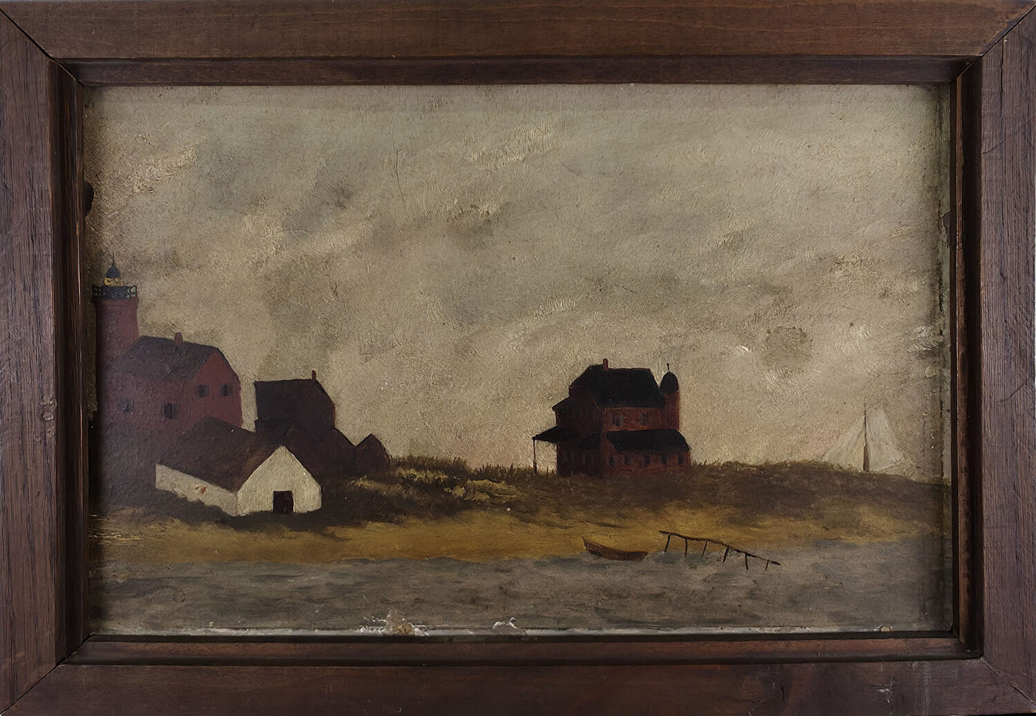 Antique American Folk Art Oil on Board Painting, “Brant Point Lighthouse”, Nantucket, 19th Century