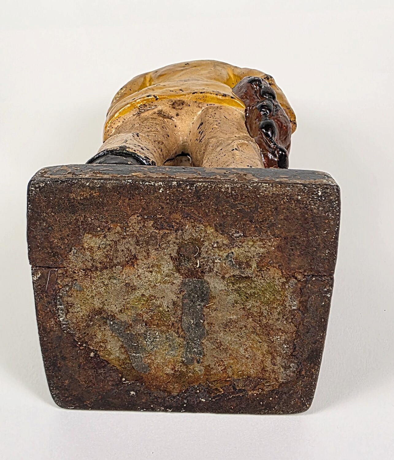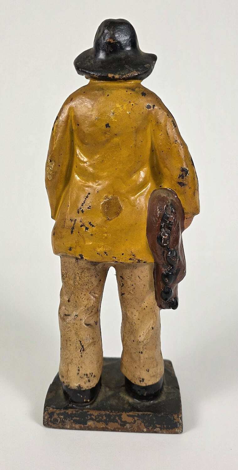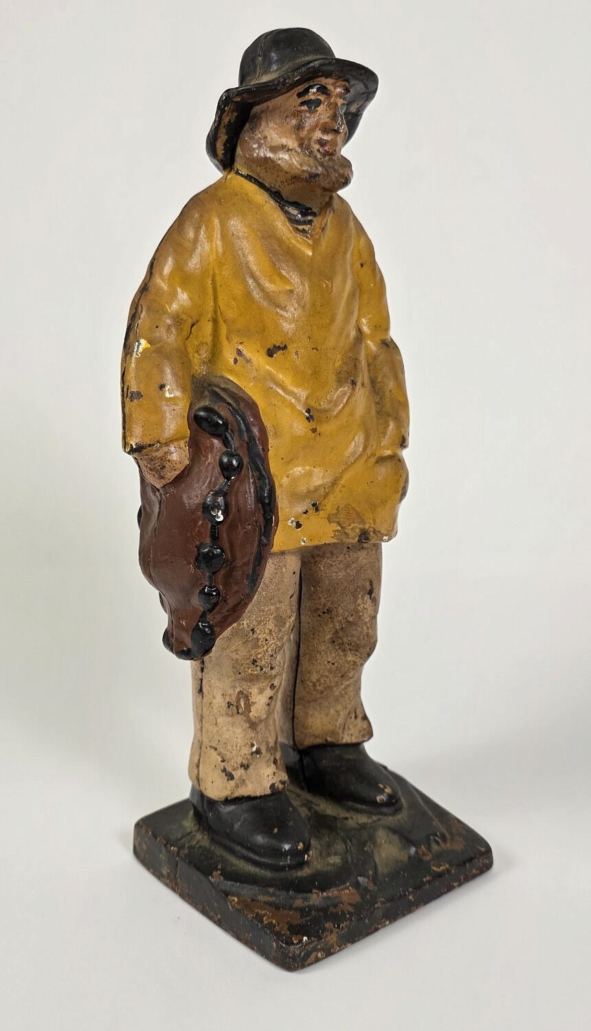 Antique Cast Iron Figural Large Old Salt Doorstop, circa 1920s, in original paint.