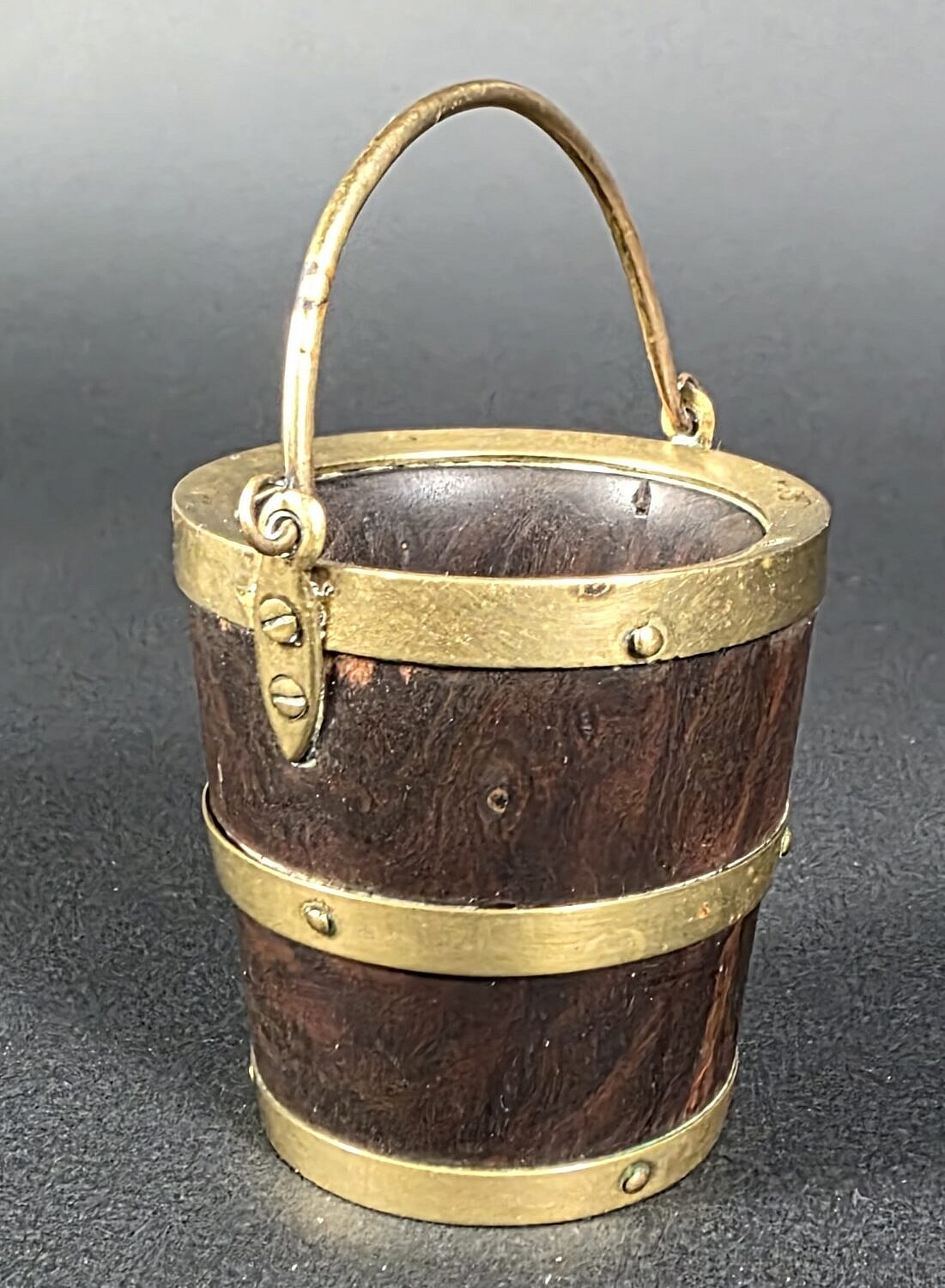 Antique English Brass Bound Miniature Treenware Peat Bucket Consign Now DeptAmericana and Folk Arts, Decorative ArtsSizeHeight 2 in. Width 2.25 in. Antique English Brass Bound Miniature Treenware Peat Bucket Height 2 in. Width 2.25 in. Please note that this auction has ended. Click here for an overview of this auction.