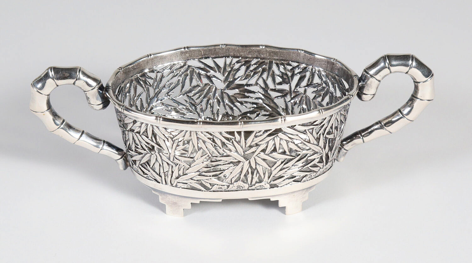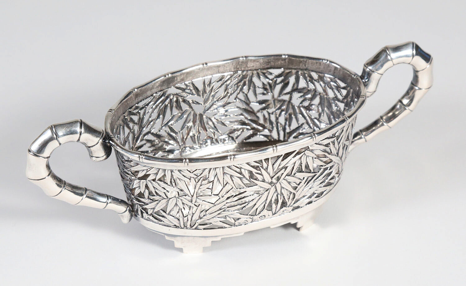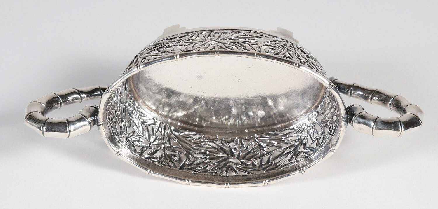 Chinese Export Silver Reticulated Two Handled Oval Bowl, late 19th Century / early 20th C.
