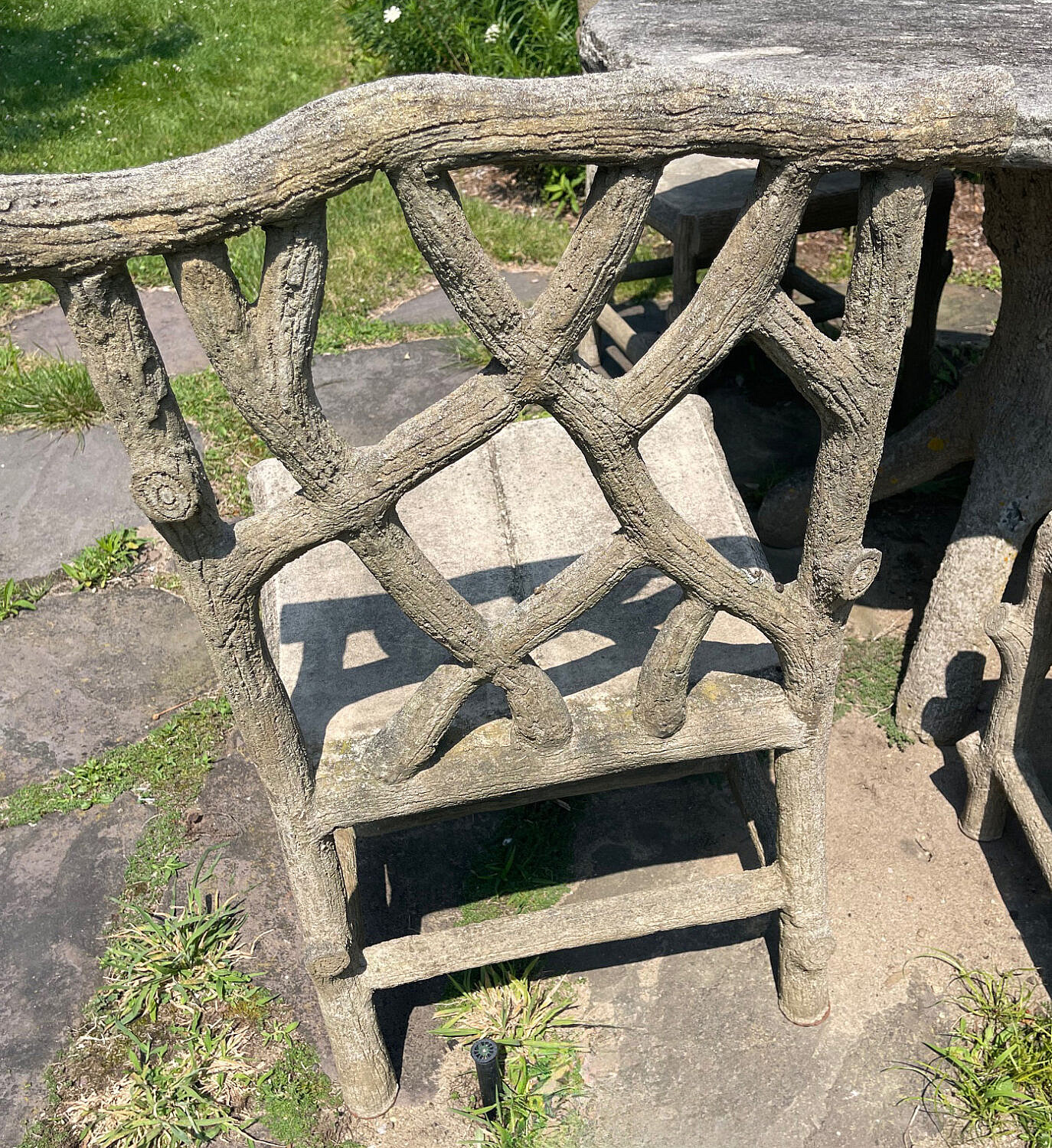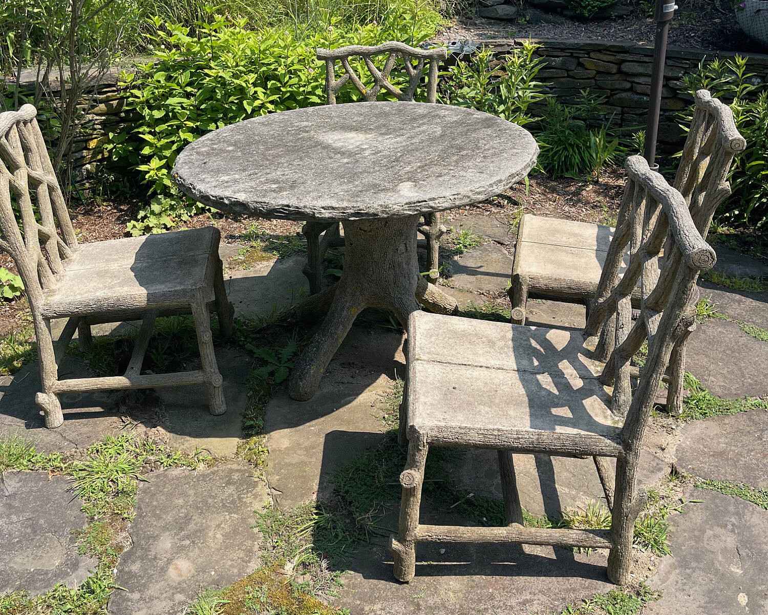 Faux Bois Sculpted Concrete Breakfast Table and Four Side Chairs
