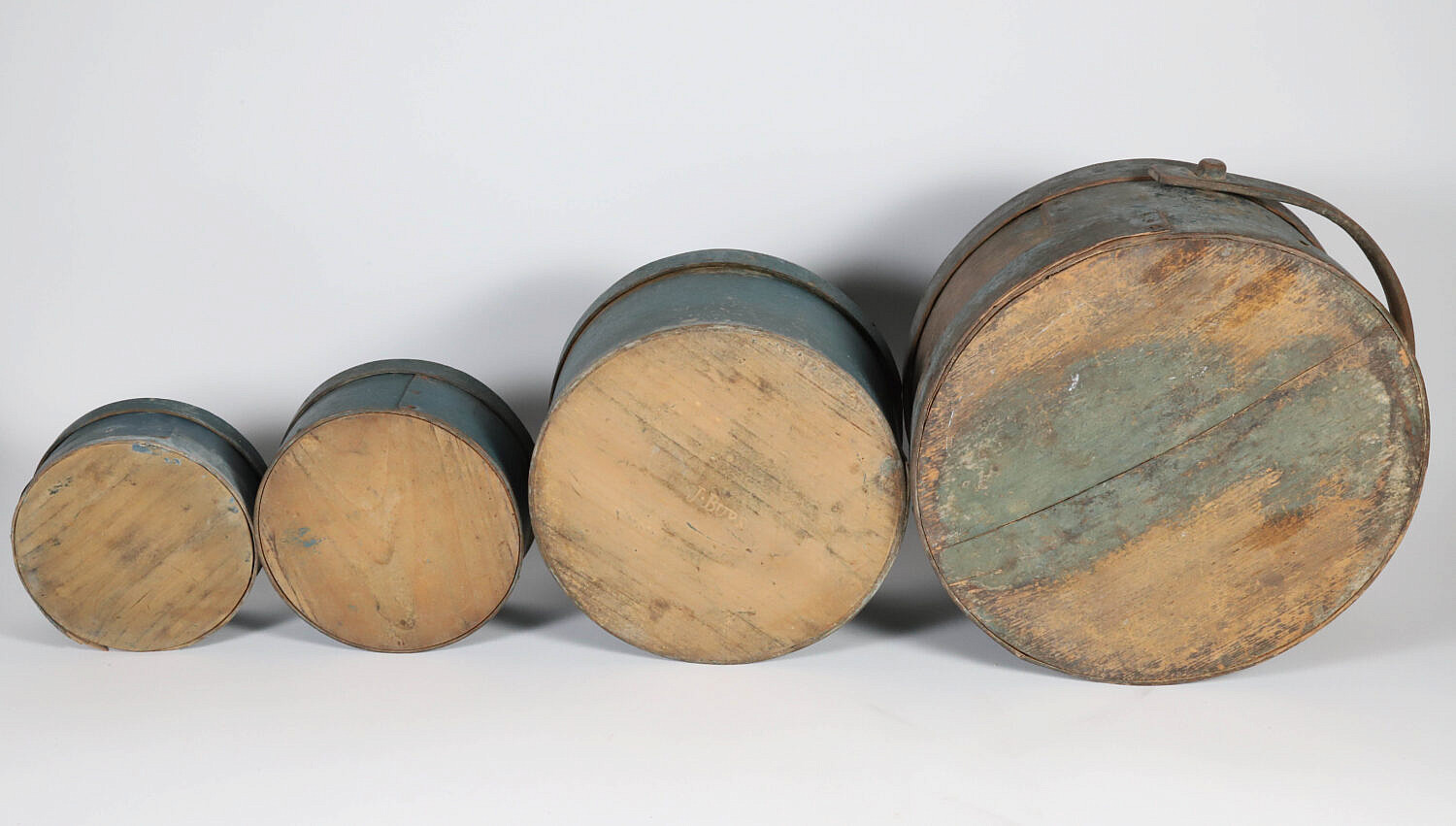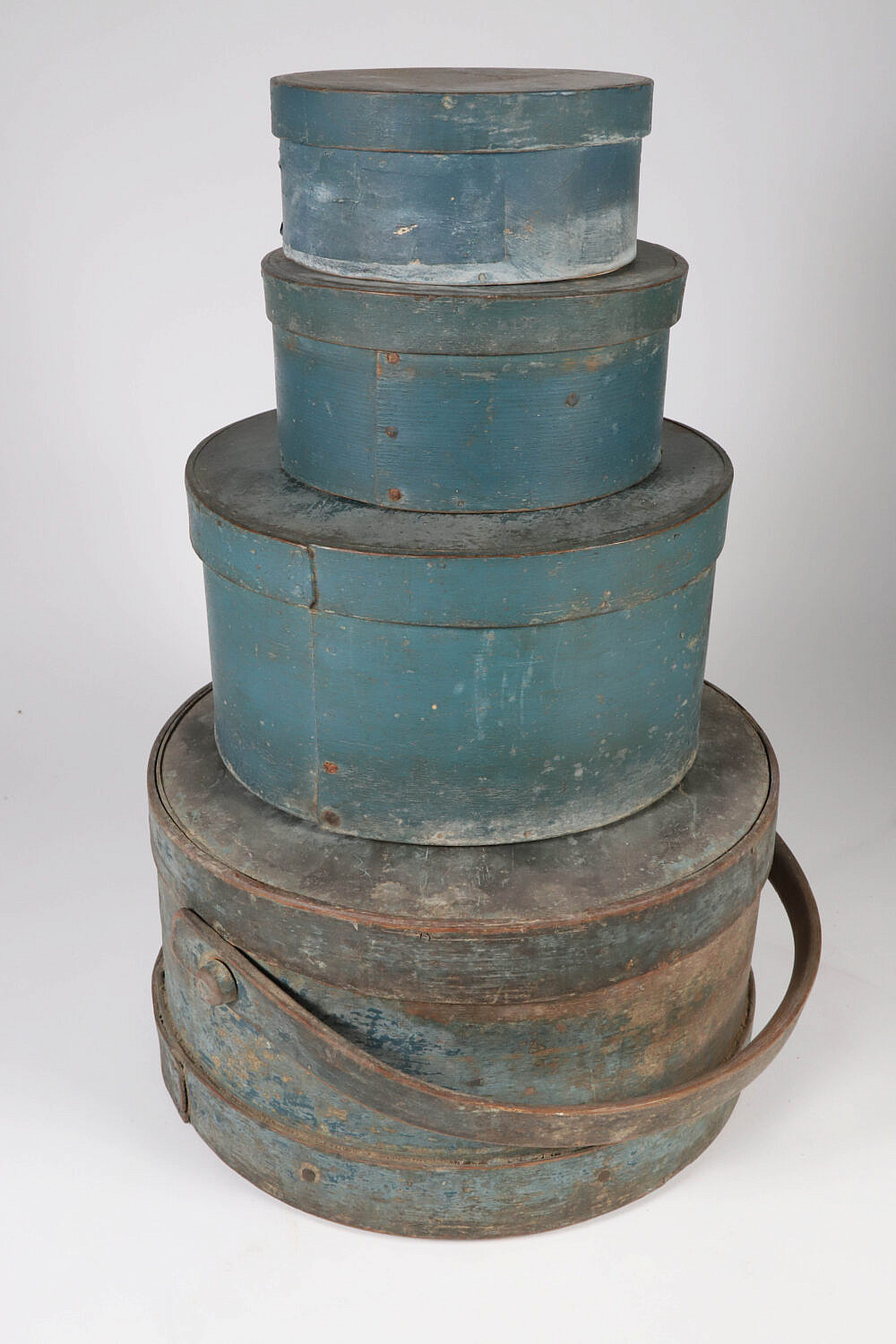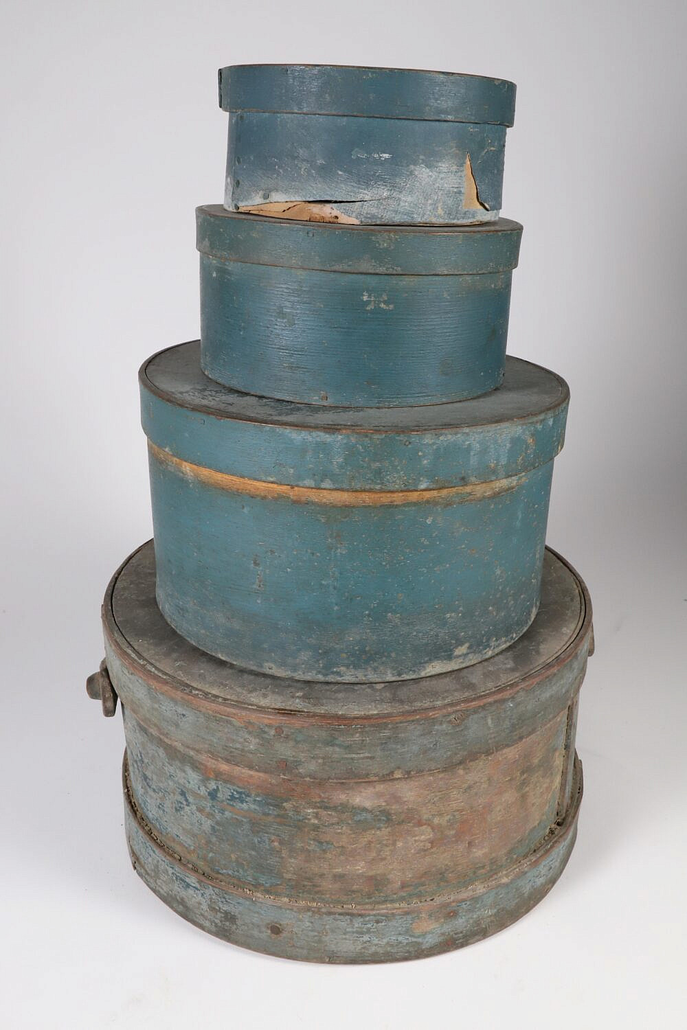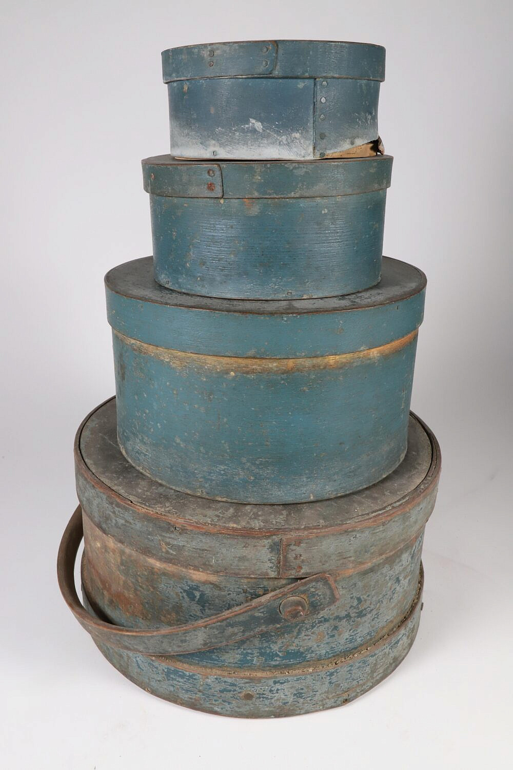 Group of Four Blue Painted Pantry Boxes, 19th Century Consign Now DeptDecorative Arts, Furniture/Decorative Arts Group of Four Blue Painted Pantry Boxes, 19th Century, the exterior of one lid stamped Hyde, another stamped J.Burr Please note that this auction has ended. Click here for an overview of this auction.
