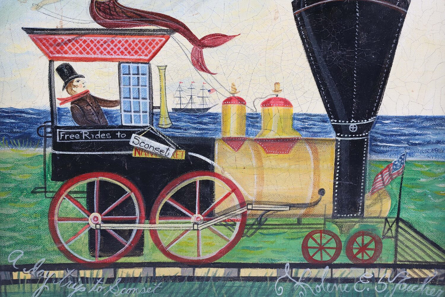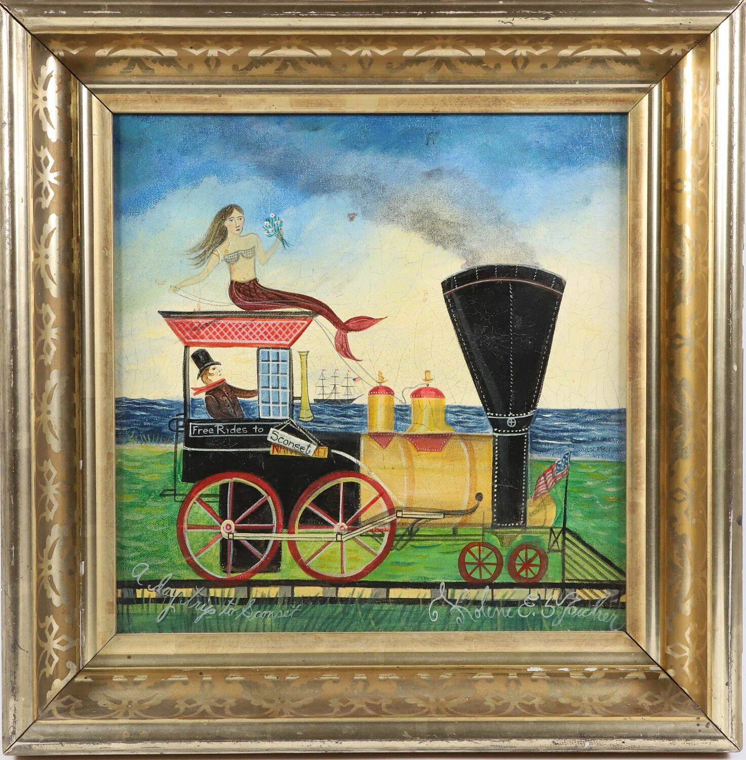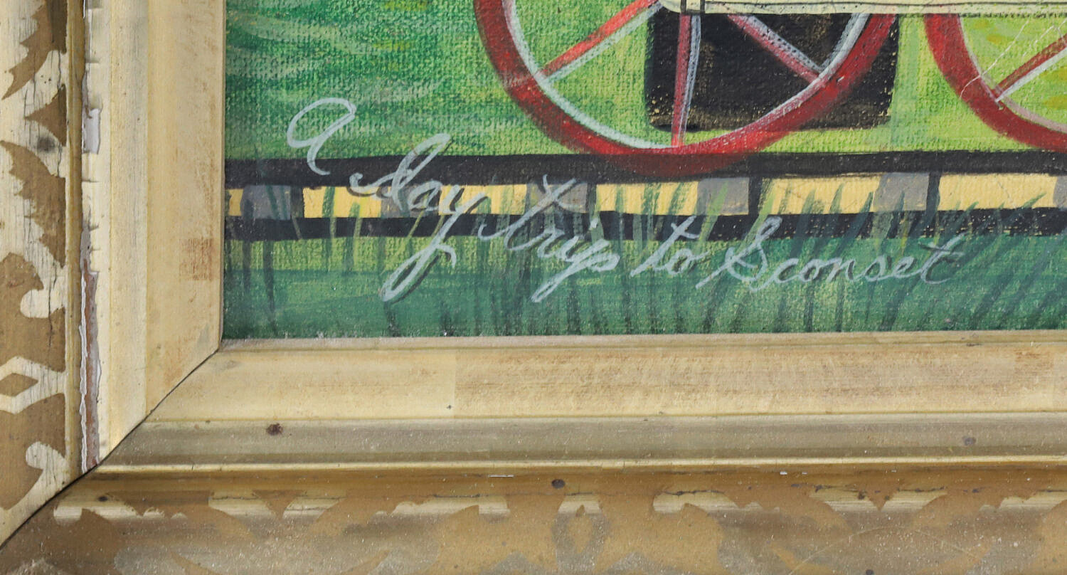 Kolene E. Spicher Oil on Canvas “Free Ride to Sconset” Consign Now DeptFine Arts, Nantucket ArtSize12 in. x 12 in. Framed 16.75 in. x 16.75 in. Kolene E. Spicher (American 1964-2022) Oil on Canvas “Free Ride to Sconset”, signed lower left Kolene E. Spicher, in period gilt frame 12 in. x 12 in. Framed 16.75 in. x 16.75 in. Please note that this auction has ended. Click here for an overview of this auction.