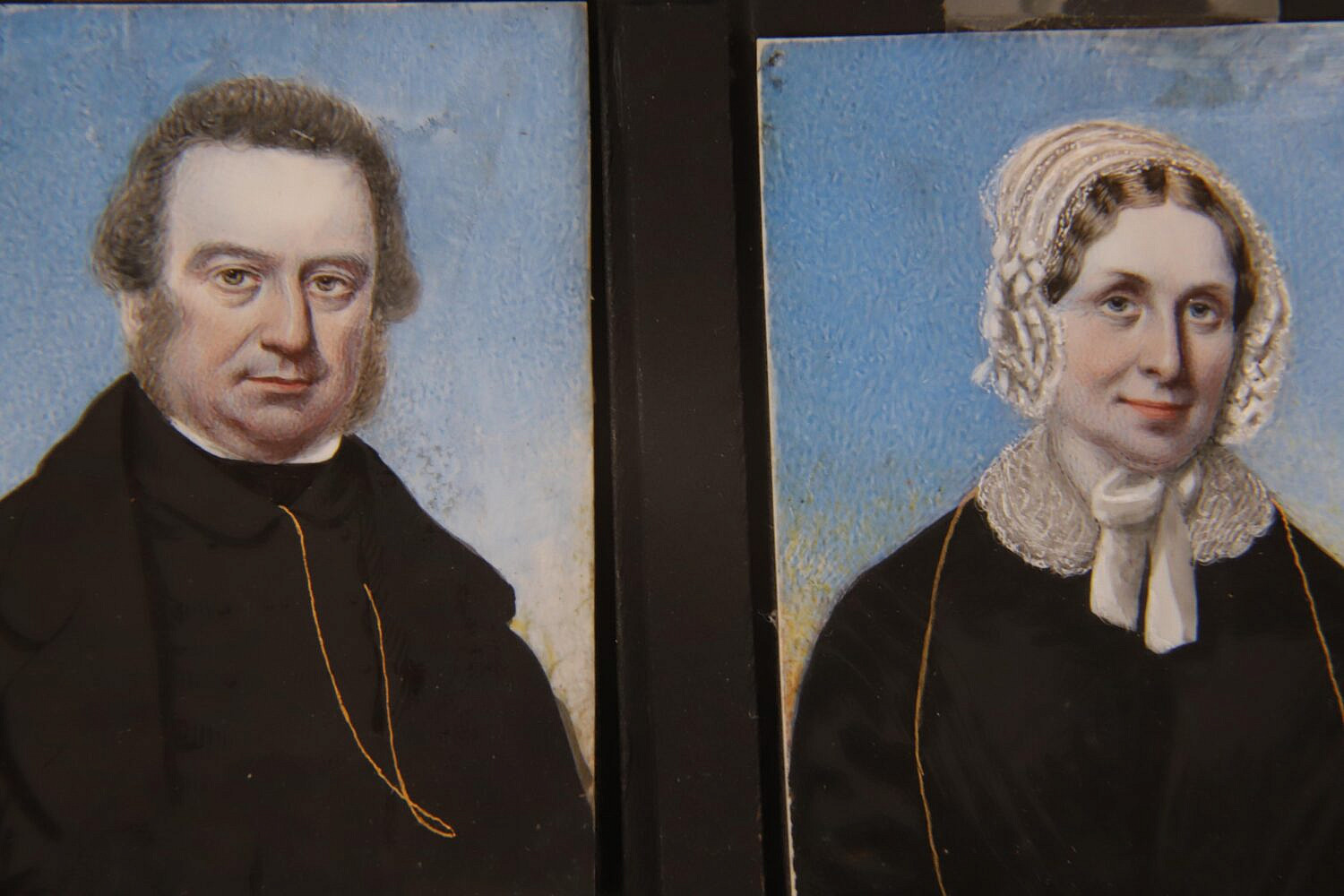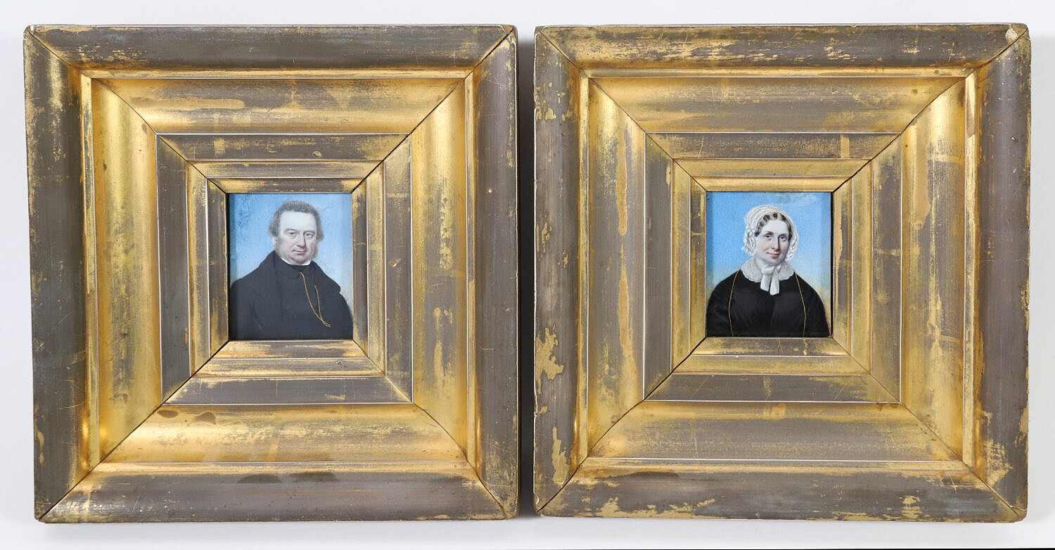 Pair of Miniature Portraits In Molded Gilt Frames, 19th Century