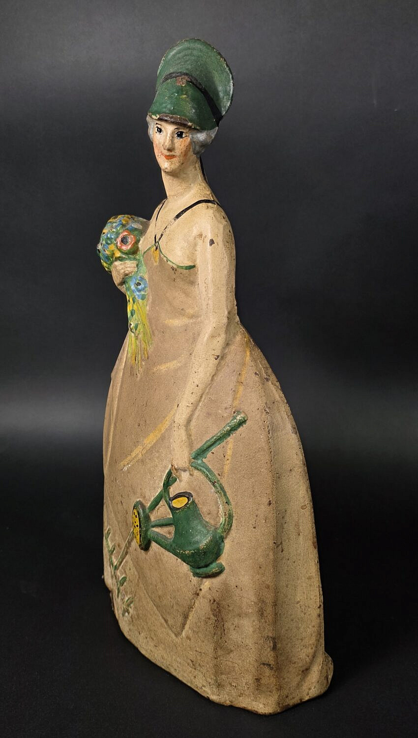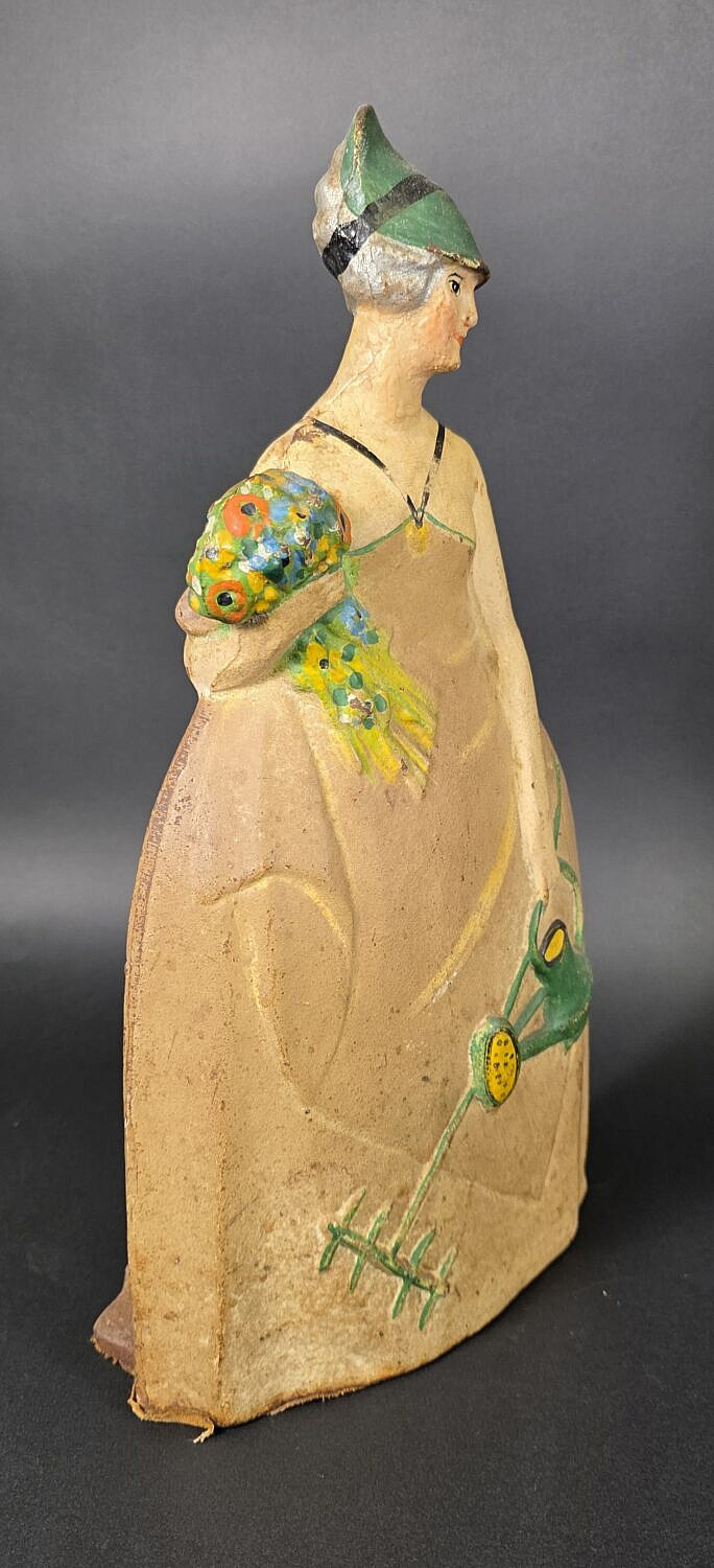 Rare Antique Figural Cast Iron, “Mary Quite Contrary” Doorstop, circa 1920s Consign Now Dept20th Century Design, Americana and Folk Arts, Decorative Arts, Furniture/Decorative ArtsSizeHeight 15 in. Width 8 in. Depth 4.5 in. Rare Antique Figural Cast Iron, “Mary Quite Contrary” Doorstop, circa 1920s, marked on reverse 1292, depicting a woman in a sun bonnet with a bushel of flowers in one hand and a watering can and a rake in the other. Height 15 in. Width 8 in. Depth 4.5 in. Please note that this auction has ended. Click here for an overview of this auction.