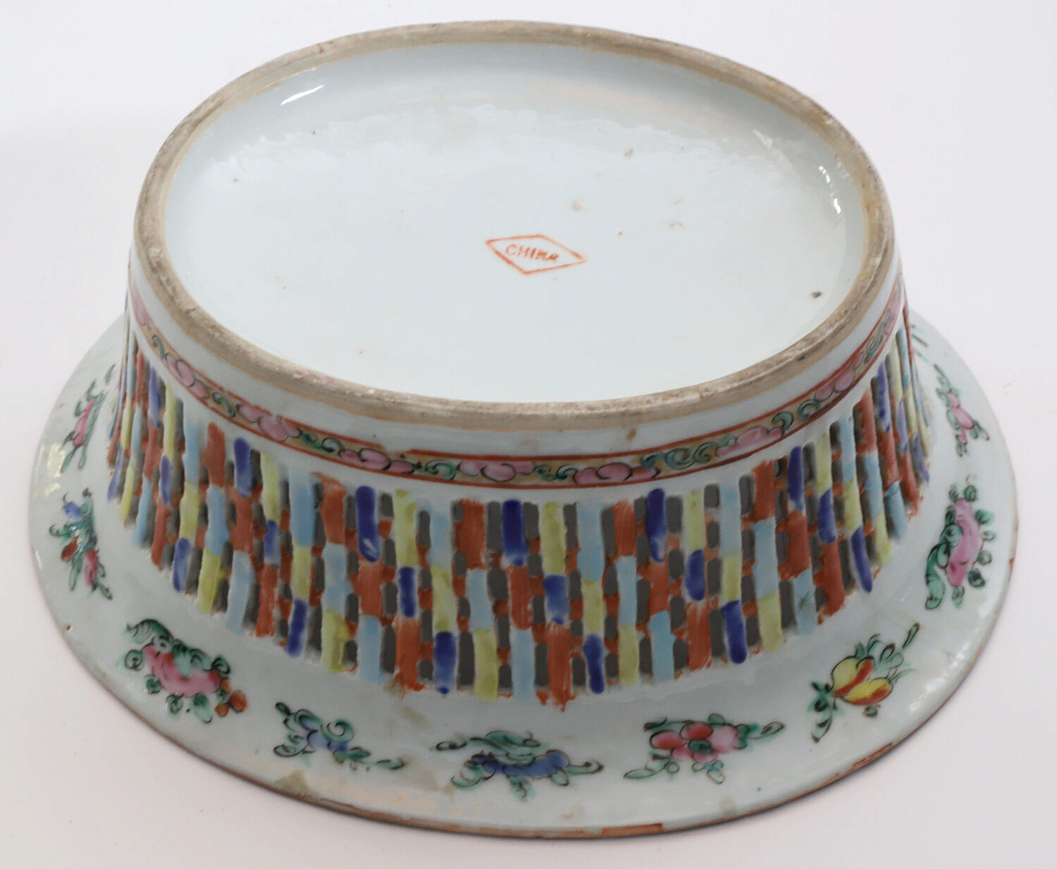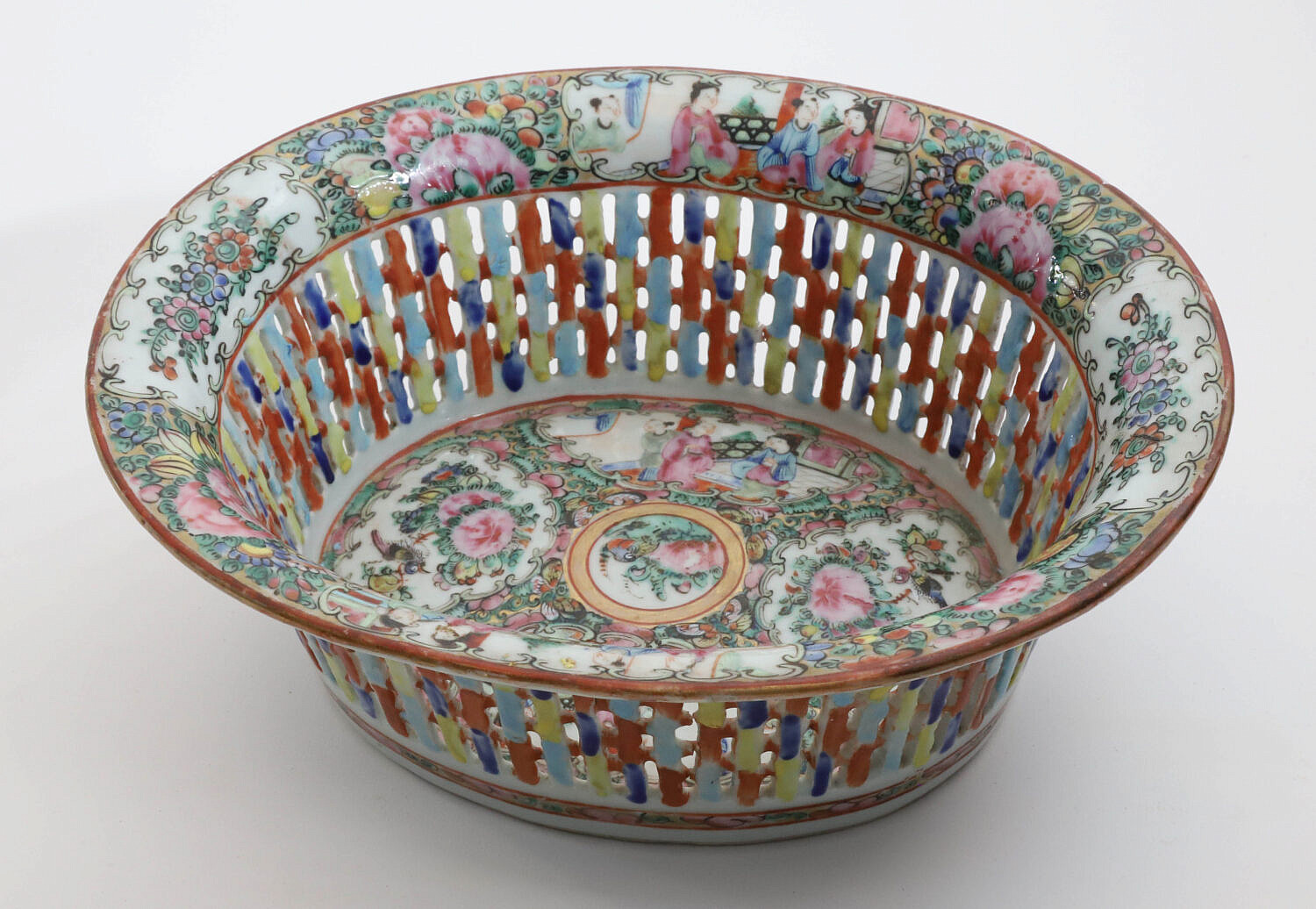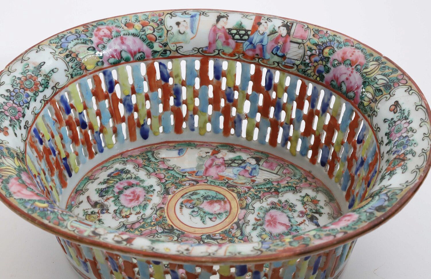 Rose Medallion Pierced Fruit or Chestnut Basket, late 19th Century Consign Now DeptAsian Arts/China Trade, Ceramics & GlassSizeHeight 3.5 in. Length 9.25 in. Width 8.25 in. Rose Medallion Pierced Fruit or Chestnut Basket, late 19th Century Height 3.5 in. Length 9.25 in. Width 8.25 in. Please note that this auction has ended. Click here for an overview of this auction.