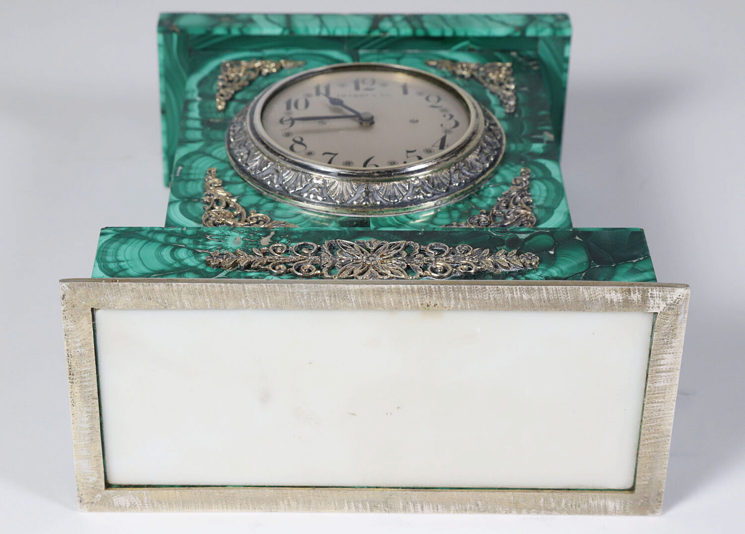 Tiffany & Co. Malachite and Silver Angelus Clock Consign Now DeptDecorative ArtsSizeHeight 6.25 in. Width 6 in. Depth 2.75 in. Tiffany & Co. Malachite and Silver Angelus Clock Height 6.25 in. Width 6 in. Depth 2.75 in. Please note that this auction has ended. Click here for an overview of this auction.