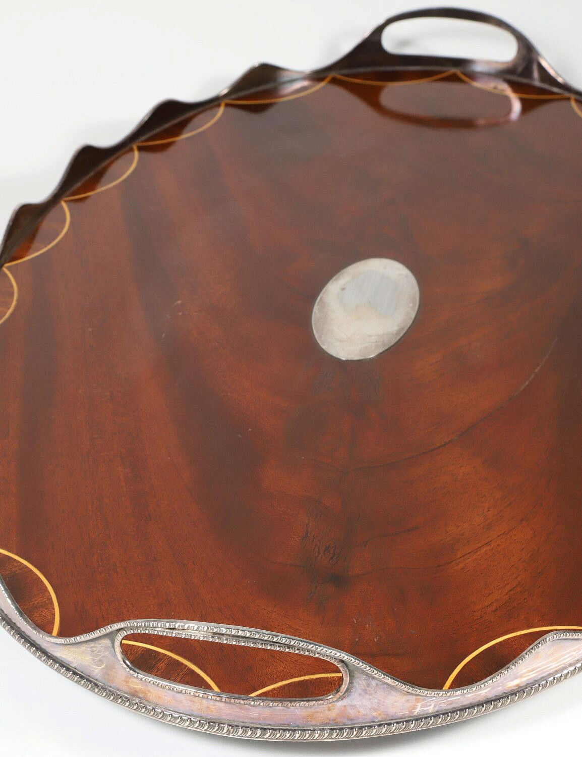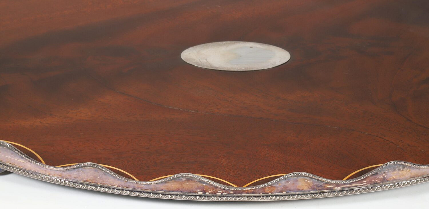 Vintage English Mahogany and Silver Plated Gallery Serving Tray