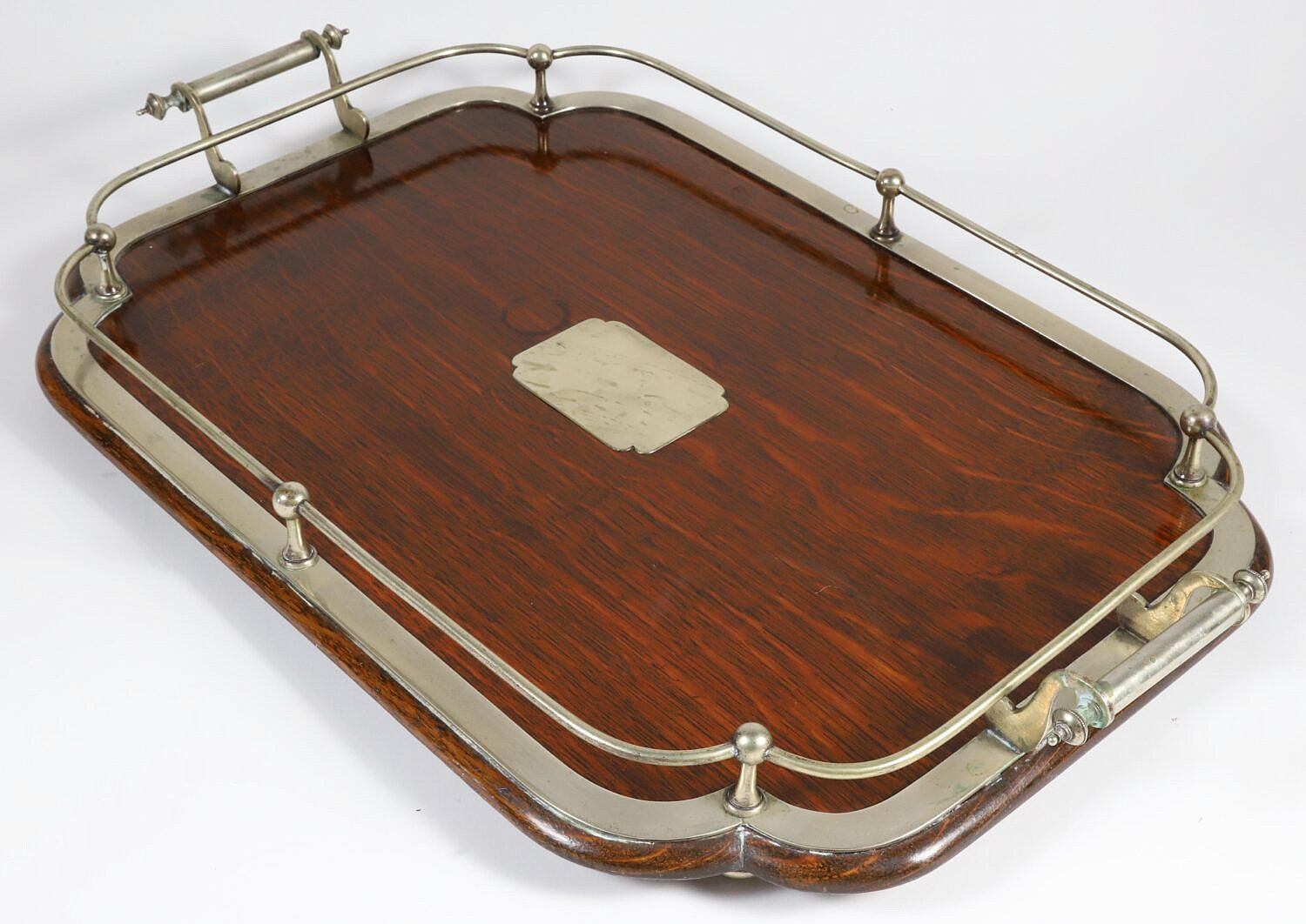 56-5370 Oak Silver Tray A_IMG_7780Vintage English Oak and Silver Plated Gallery Serving TrayVintage English Oak and Silver Plated Gallery Serving TrayVintage English Oak and Silver Plated Gallery Serving TrayVintage English Oak and Silver Plated Gallery Serving Tray