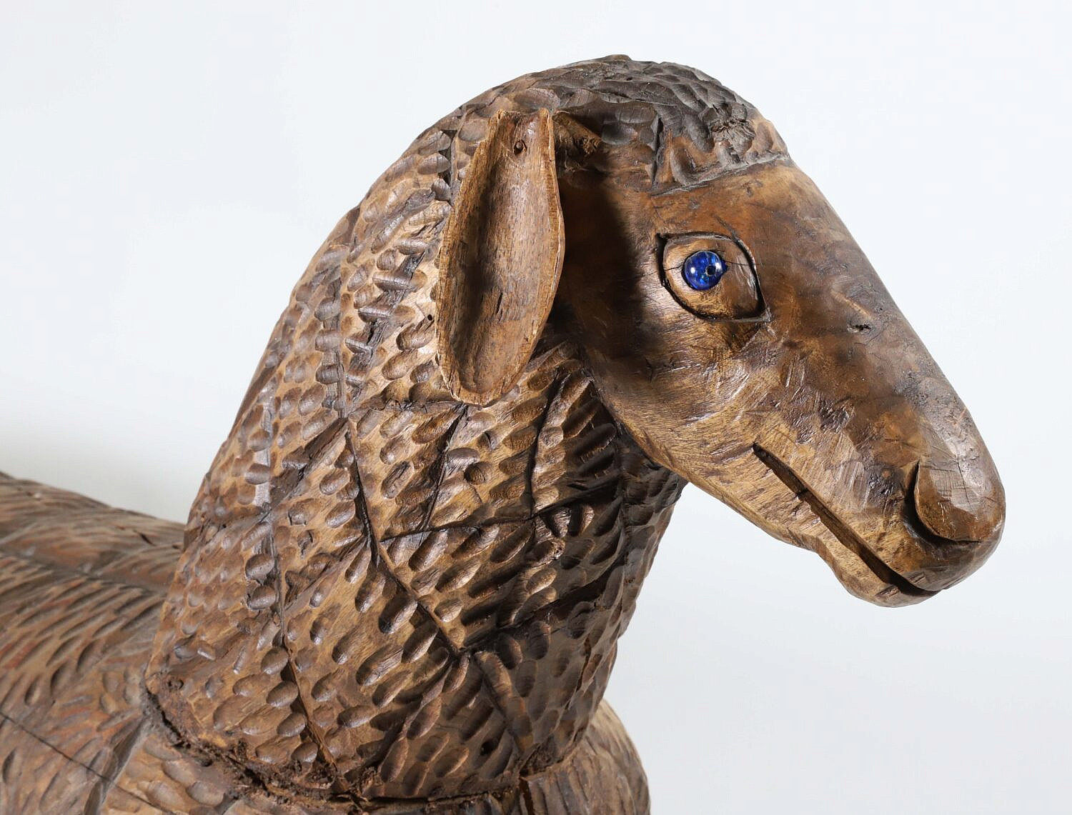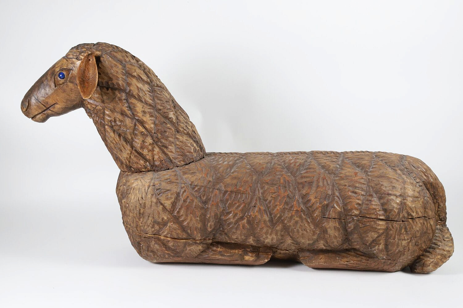 Vintage Folk Art Carved Wood Reclining Lamb Consign Now DeptAmericana and Folk Arts, Decorative ArtsSizeHeight 18 in. Width 36 in. Depth 9 in. Vintage Folk Art Carved Wood Reclining Lamb Height 18 in. Width 36 in. Depth 9 in. Provenance: The Estate of Carolyn and Roger Horchow, Nantucket Island, Massachusetts Please note that this auction has ended. Click here for an overview of this auction.