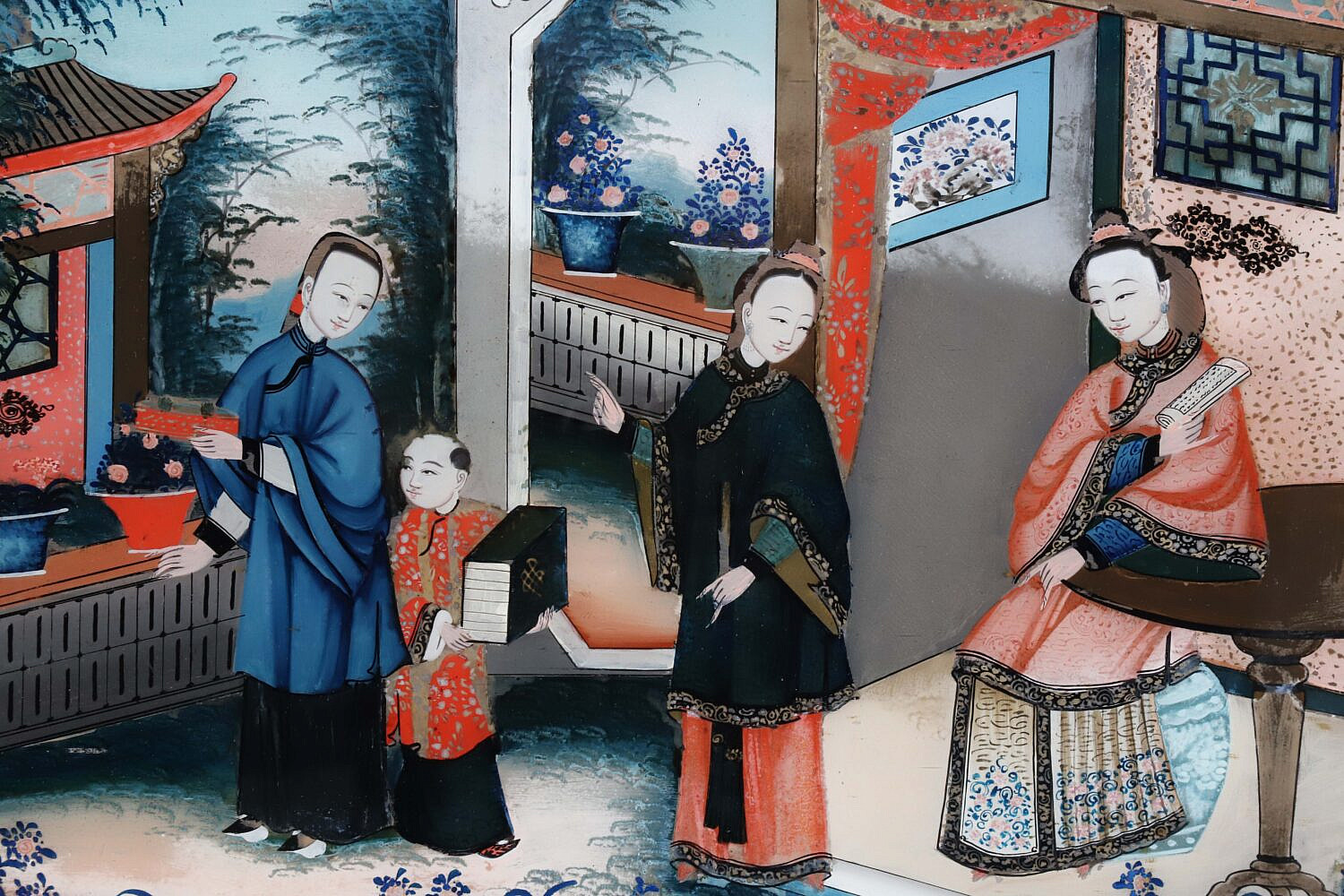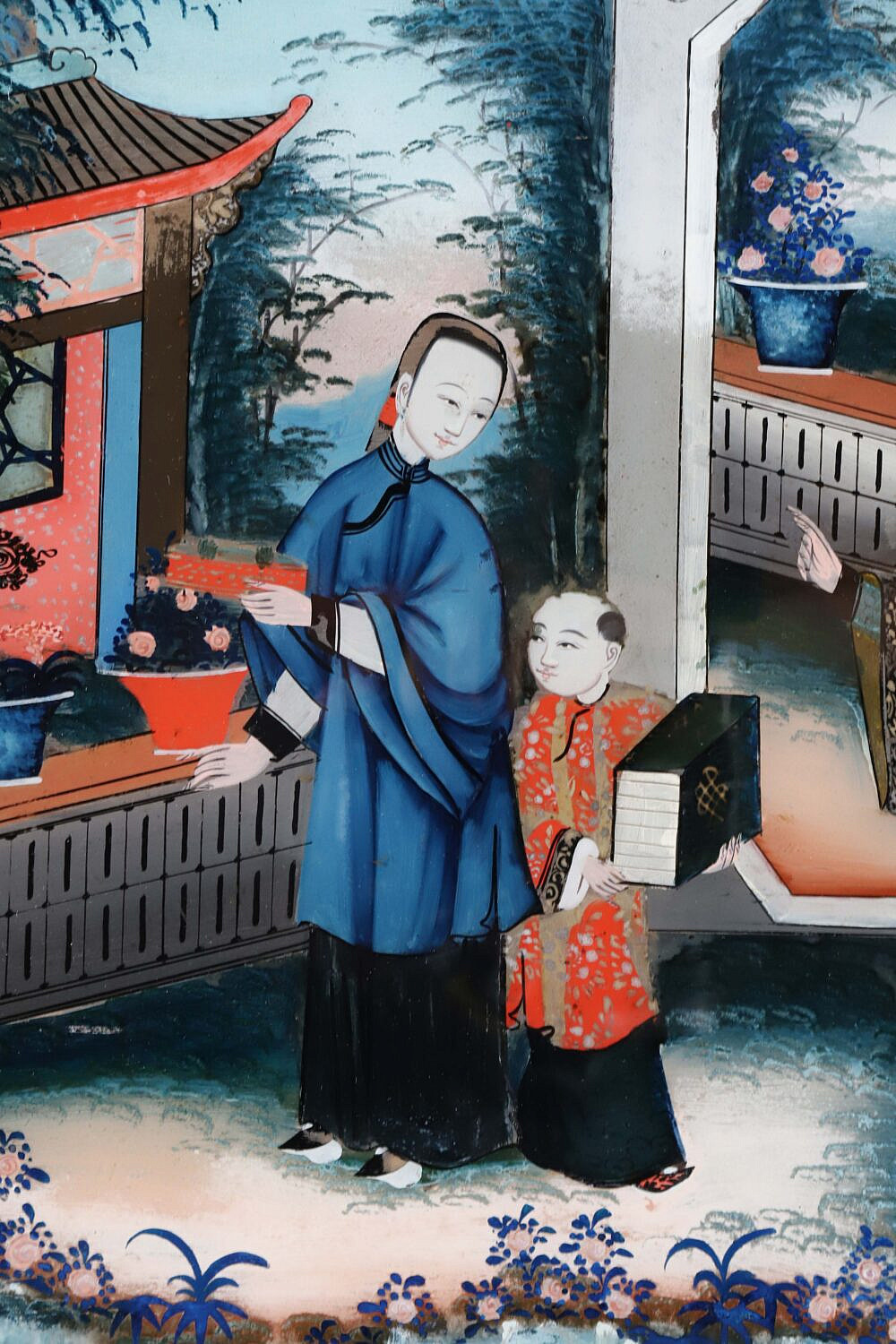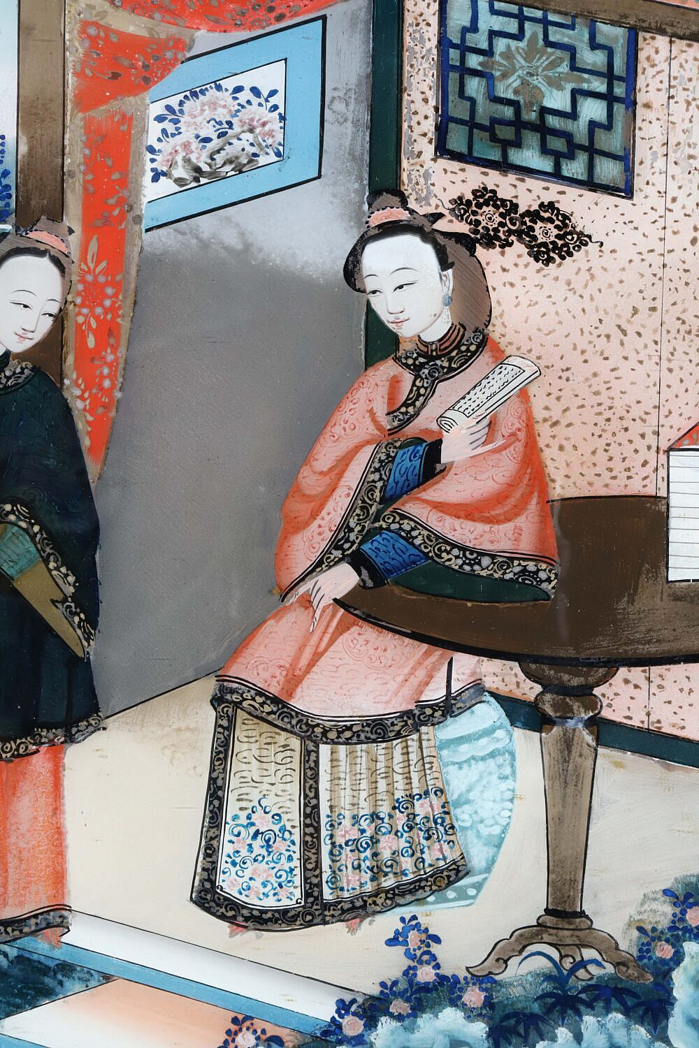 Antique Chinese Reverse Painting On Glass Consign Now DeptAsian Arts/China Trade, Fine ArtsSize13 in. x 19 in. Framed 18 in. x 24 in. Antique Chinese Reverse Painting On Glass, depicting an Empress and her attendants in period red and gilt painted frame 13 in. x 19 in. Framed 18 in. x 24 in. Please note that this auction has ended. Click here for an overview of this auction.