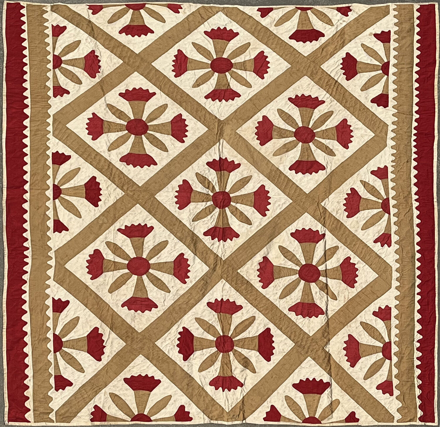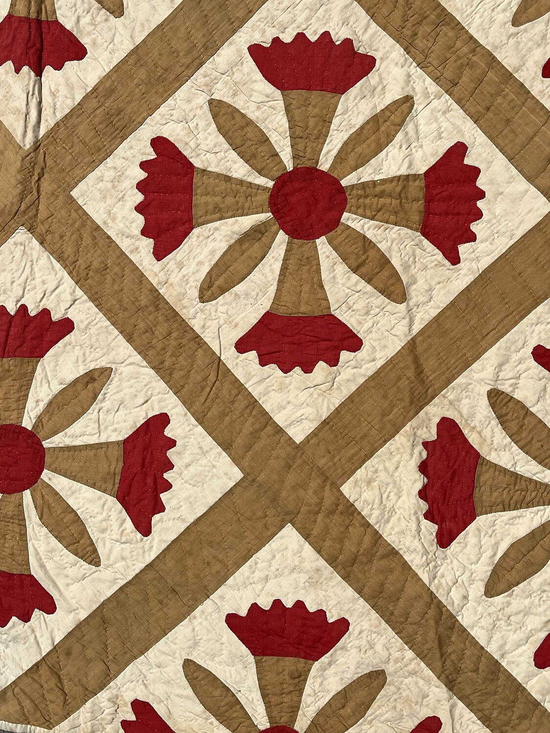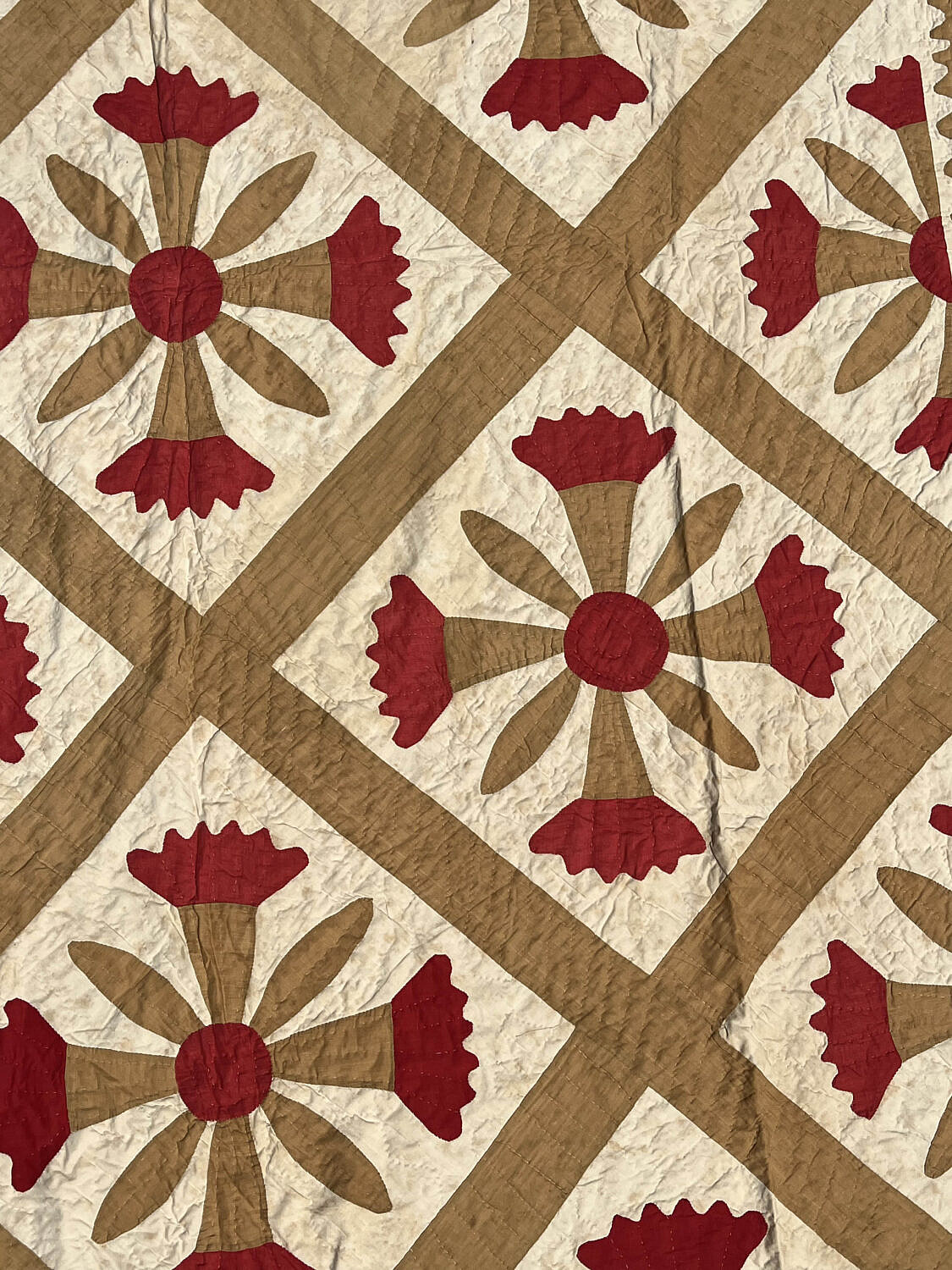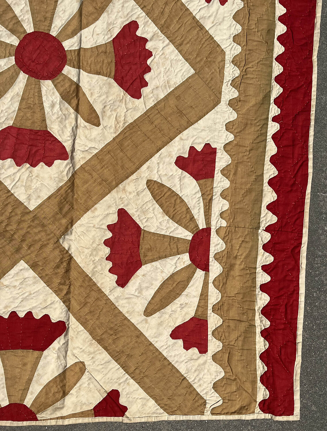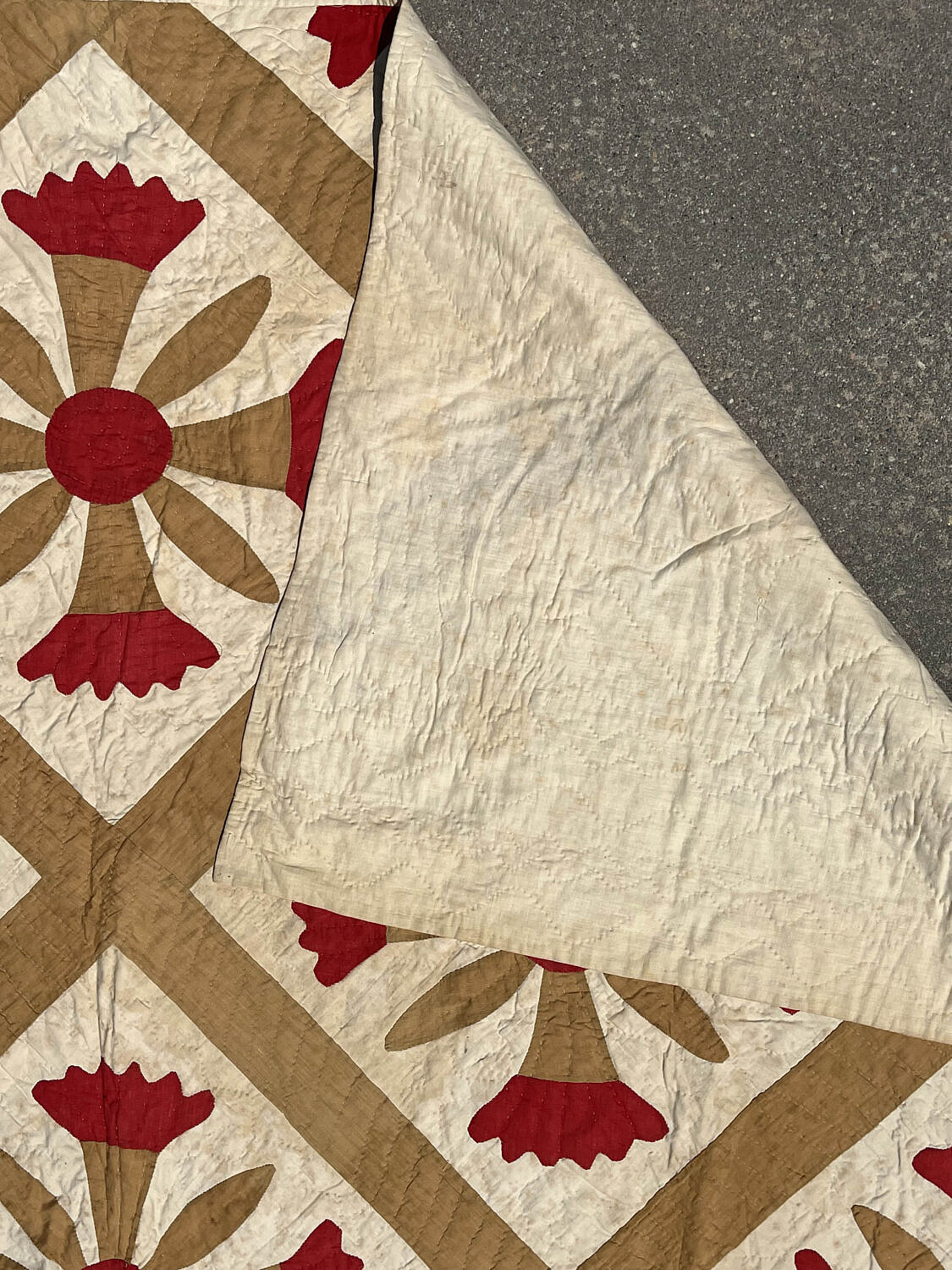 Antique Hand Stitched Poppy Floral Applique Quilt, 19th Century Consign Now DeptAmericana and Folk Arts, Textiles and QuiltsSize81 in. x 72 in. Hand Stitched Poppy Floral Applique Quilt, 19th Century, red and tan fabric on creme ground 81 in. x 72 in. Please note that this auction has ended. Click here for an overview of this auction.