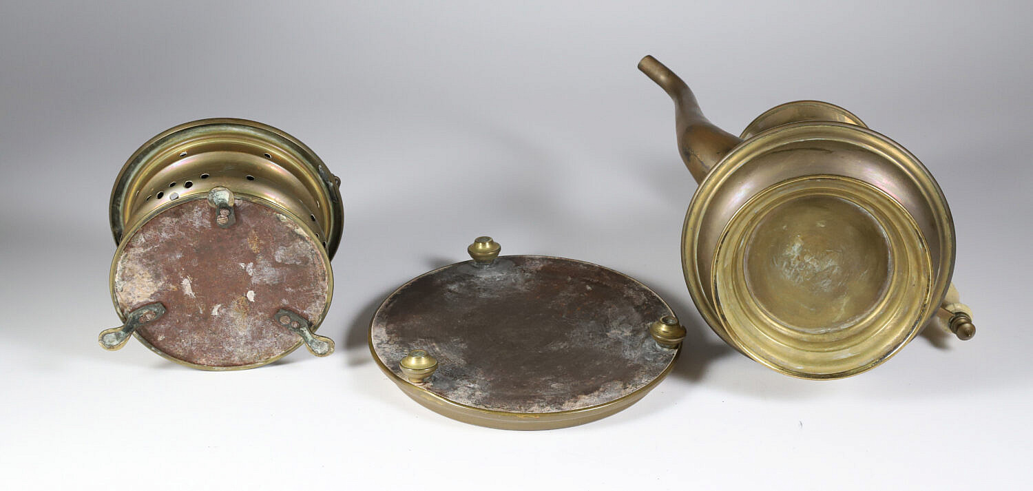 Antique Russian Brass Samovar, St. Petersburg, circa 1870s Consign Now DeptDecorative ArtsSizeHeight 16 in. Antique Russian Brass Samovar, St. Petersburg, circa 1870s, in three sections, brass pitcher with turned bone handle and finial burner pot and hot plate Height 16 in. Please note that this auction has ended. Click here for an overview of this auction.