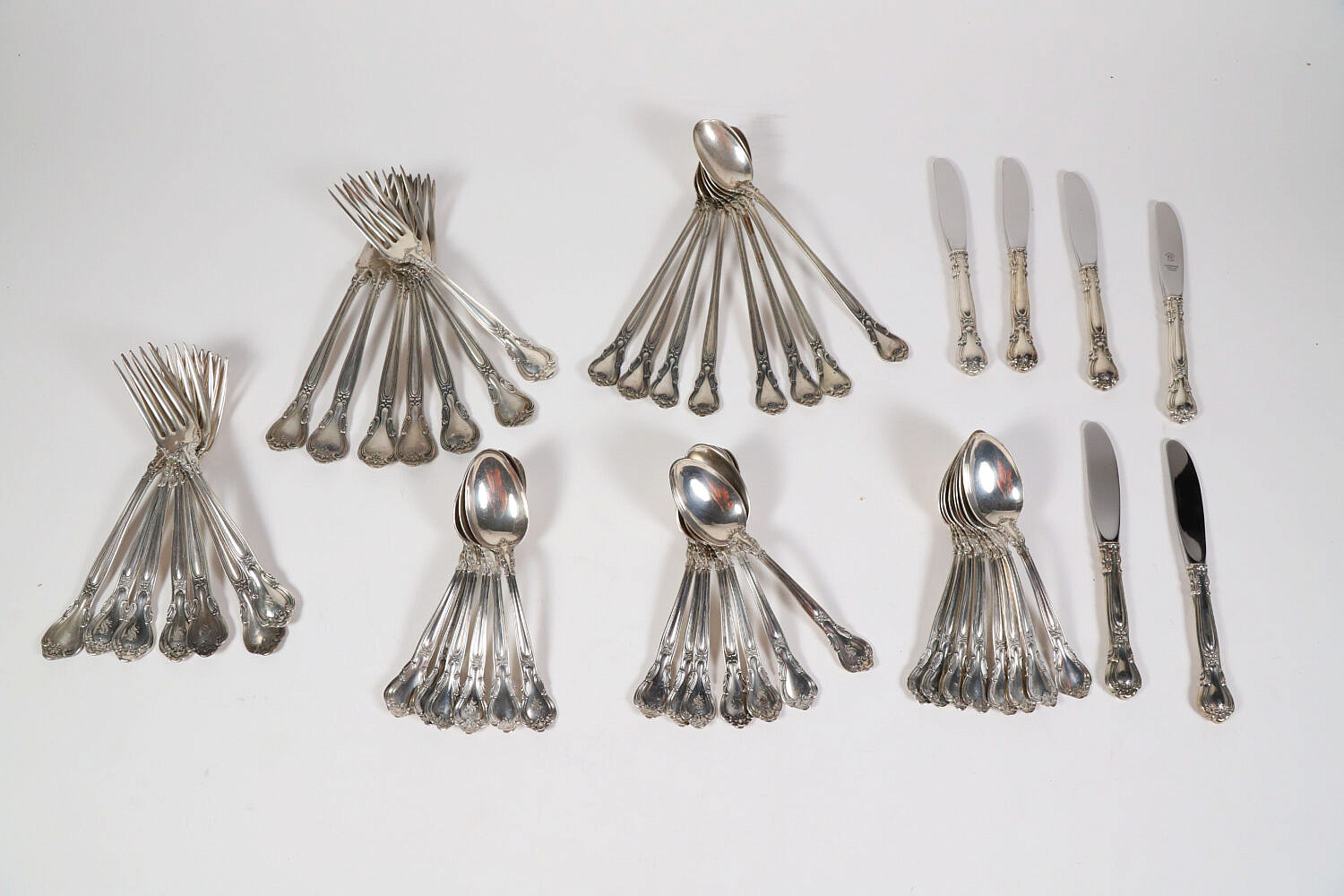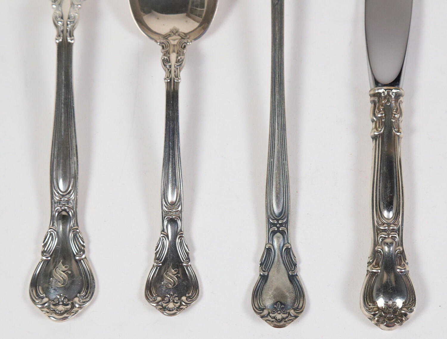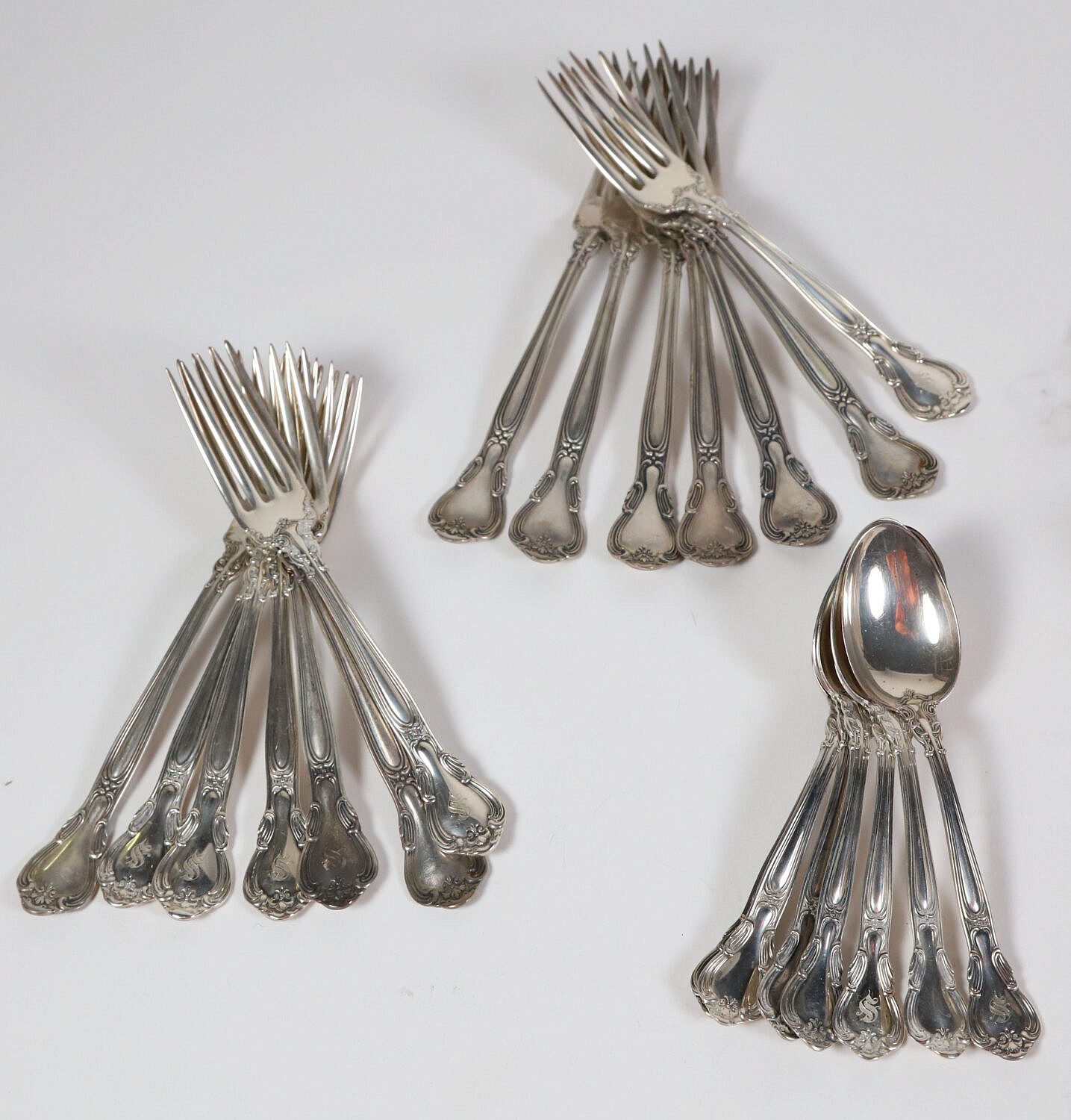 Gorham Sterling Silver Flatware in the Chantilly Pattern Consign Now DeptDecorative Arts, SilverSizeLengths 6 in. to 7.5 in. 50 troy ounces Gorham Sterling Silver Flatware in the Chantilly Pattern, comprising; 14 dinner forks 22 teaspoons 8 iced tea spoons 6 butter knives (sterling silver handles – stainless blades) Lengths 6 in. to 7.5 in. 50 troy ounces (not including butter knives) Please note that this auction has ended. Click here for an overview of this auction.