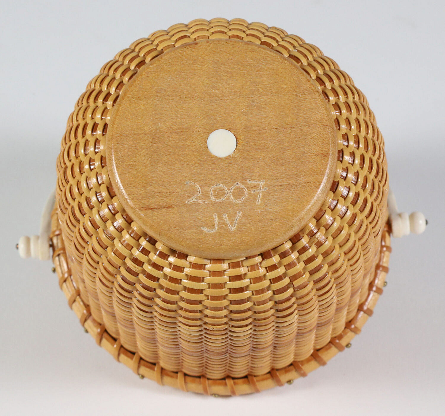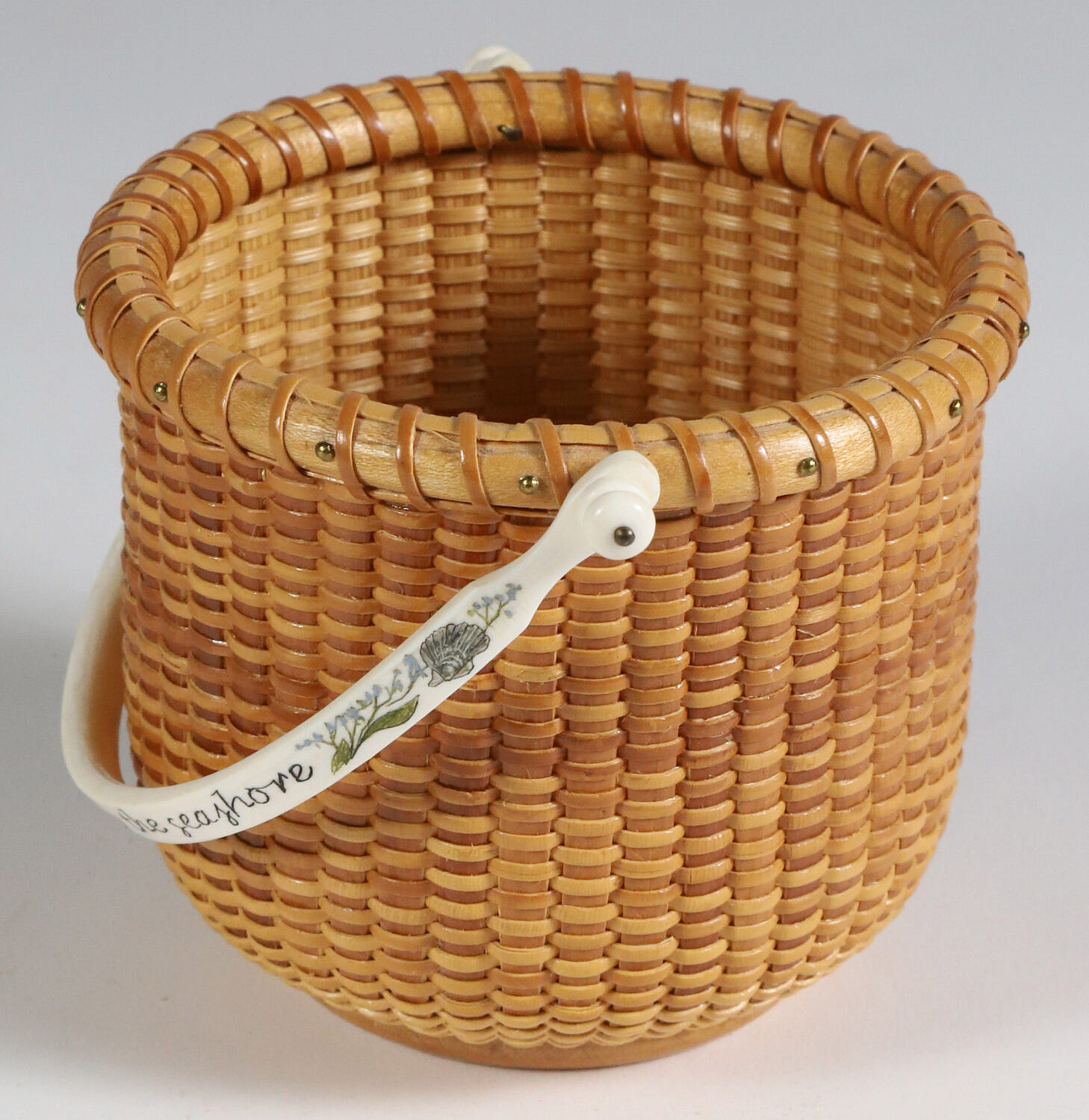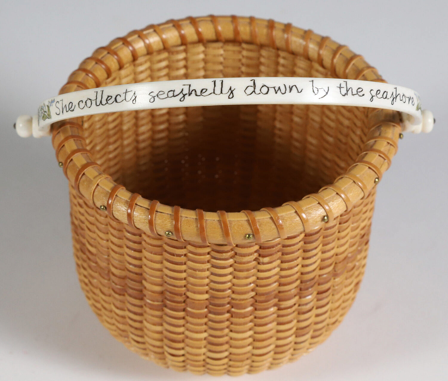 Jean M. Valerio Two-Egg Nantucket Basket, Scrimshaw Swing Handle “She Collects Seashells Down by the Seashore” Consign Now DeptNantucket BasketsSizeHeight 2.75 in. Diameter 3.25 in. Jean M. Valerio Two-Egg Nantucket Basket, Scrimshaw Swing Handle “She Collects Seashells Down by the Seashore”, initialed J.V. 2007 Height 2.75 in. Diameter 3.25 in. Provenance: The Estate of Jean M. Valerio, Wellesley, Massachusetts Please note that this auction has ended. Click here for an overview of this auction.
