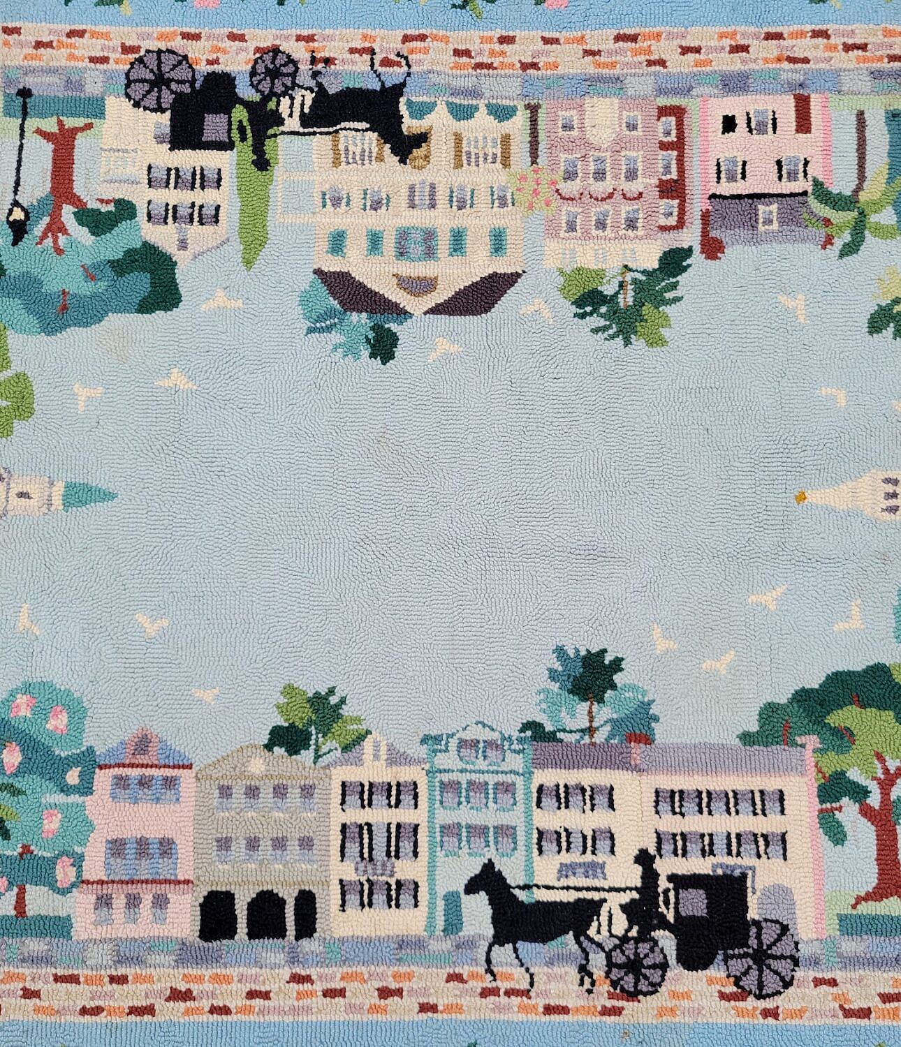 Large Vintage Claire Murray Charleston South Carolina Scene Hooked Rug