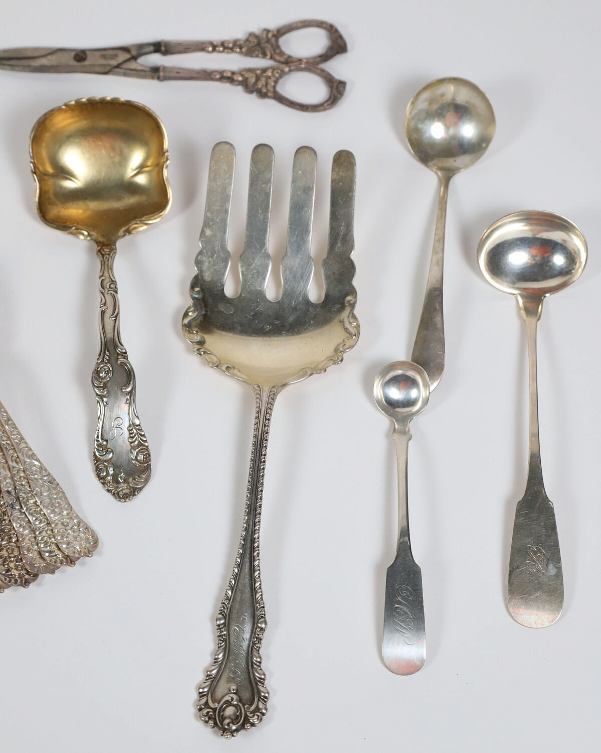 Lot of Sterling Silver Flatware and Serving Pieces Consign Now DeptDecorative Arts, SilverSize16 troy ounces Lot of Sterling Silver Flatware and Serving Pieces, 16 troy ounces, grapefruit spoons, ladles, demitasse spoons, serving fork, scissors, etc. Please note that this auction has ended. Click here for an overview of this auction.