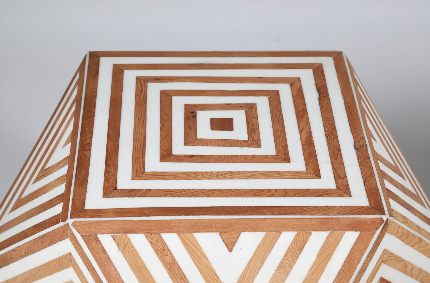Moroccan Geometric Inlaid Polyhedron Shaped Side Table or Stool Consign Now Dept20th Century Design, FurnitureSizeHeight 18 in. Width at widest point 24 in. Moroccan Geometric Inlaid Polyhedron Shaped Side Table or Stool, walnut wood and white resin Height 18 in. Width at widest point 24 in. Please note that this auction has ended. Click here for an overview of this auction.