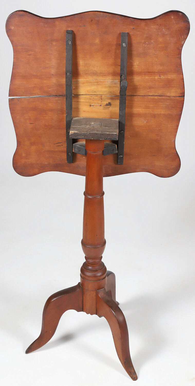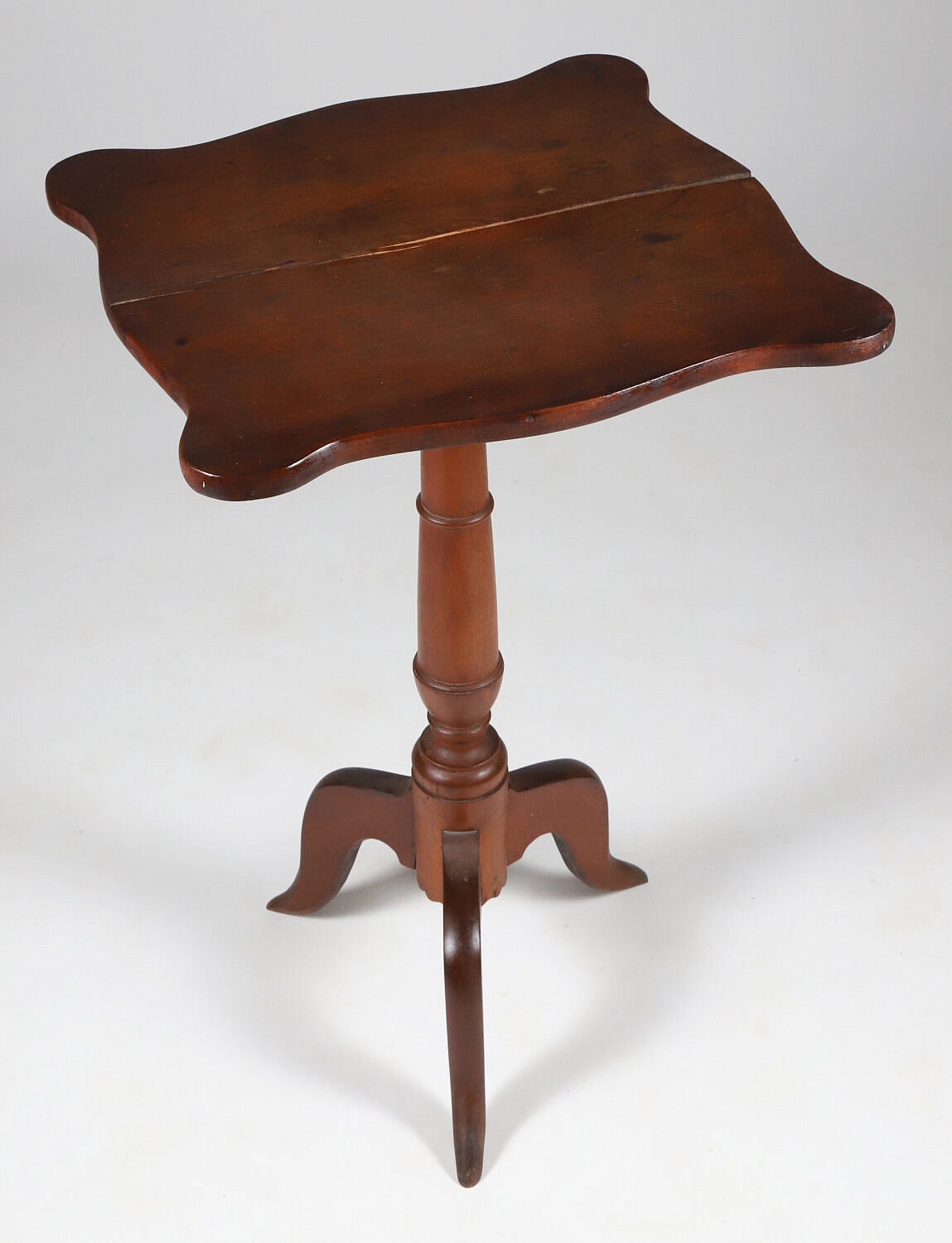 Nantucket Tripod Candle Stand, circa 1810 Consign Now DeptAmericana and Folk Arts, FurnitureSizeHeight 27 in. Width 16.5 in. Depth 17 in. Nantucket Tripod Candle Stand, circa 1810, belonged to Sarah Wendell Starbuck who married Peleg Macy Height 27 in. Width 16.5 in. Depth 17 in. Provenance: Sarah Wendell Starbuck Married Peleg Macy Please note that this auction has ended. Click here for an overview of this auction.