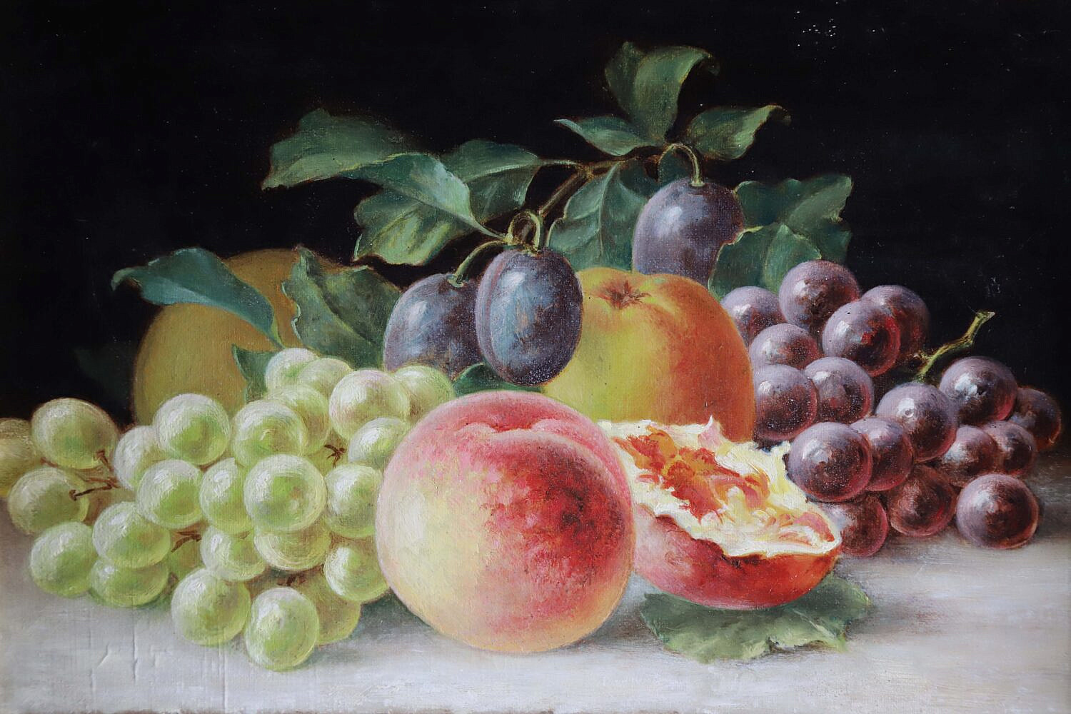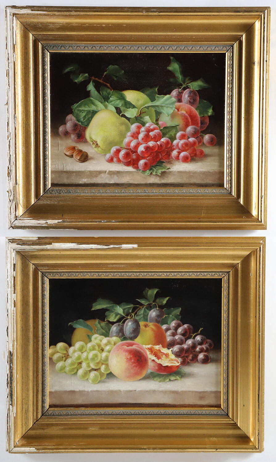 Pair of Oils on Canvas “American School Fruit Still Life Paintings”, 19th Century