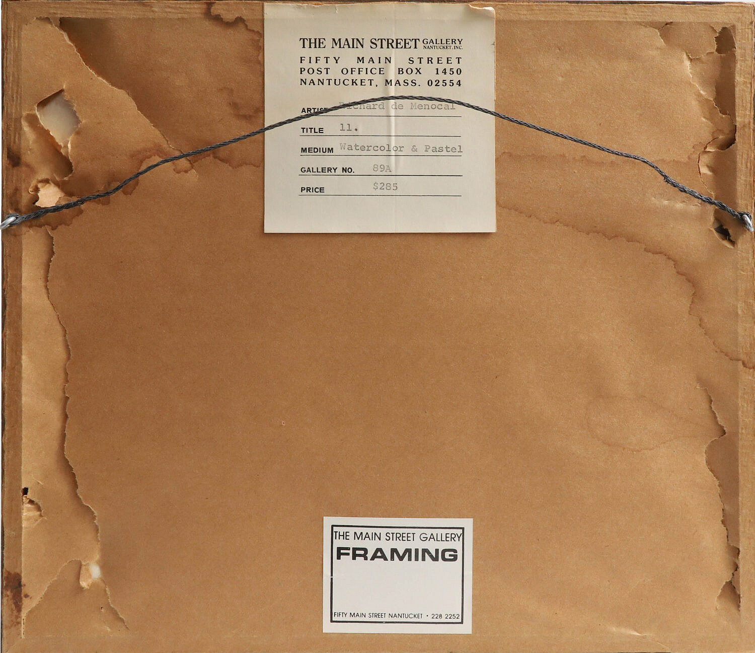 Richard de Menocal Watercolor And Pastel On Paper, Titled “11” Consign Now DeptFine Arts, Nantucket ArtSize5.75 in. x 6.75 in. Framed 10 in. x 11.5 in. Richard de Menocal Watercolor And Pastel On Paper, Titled “11”, signed lower right Menocal, with original Main Street Gallery label on reverse, matted and framed 5.75 in. x 6.75 in. Framed 10 in. x 11.5 in. Please note that this auction has ended. Click here for an overview of this auction.