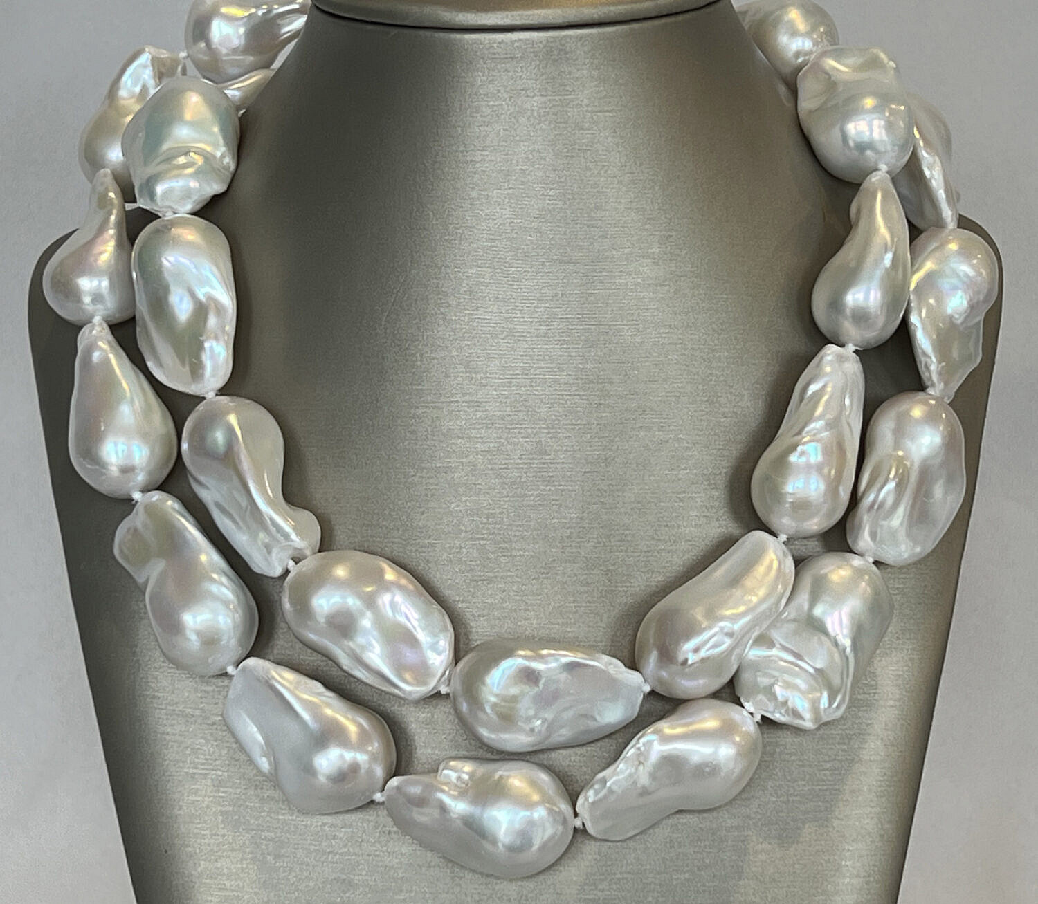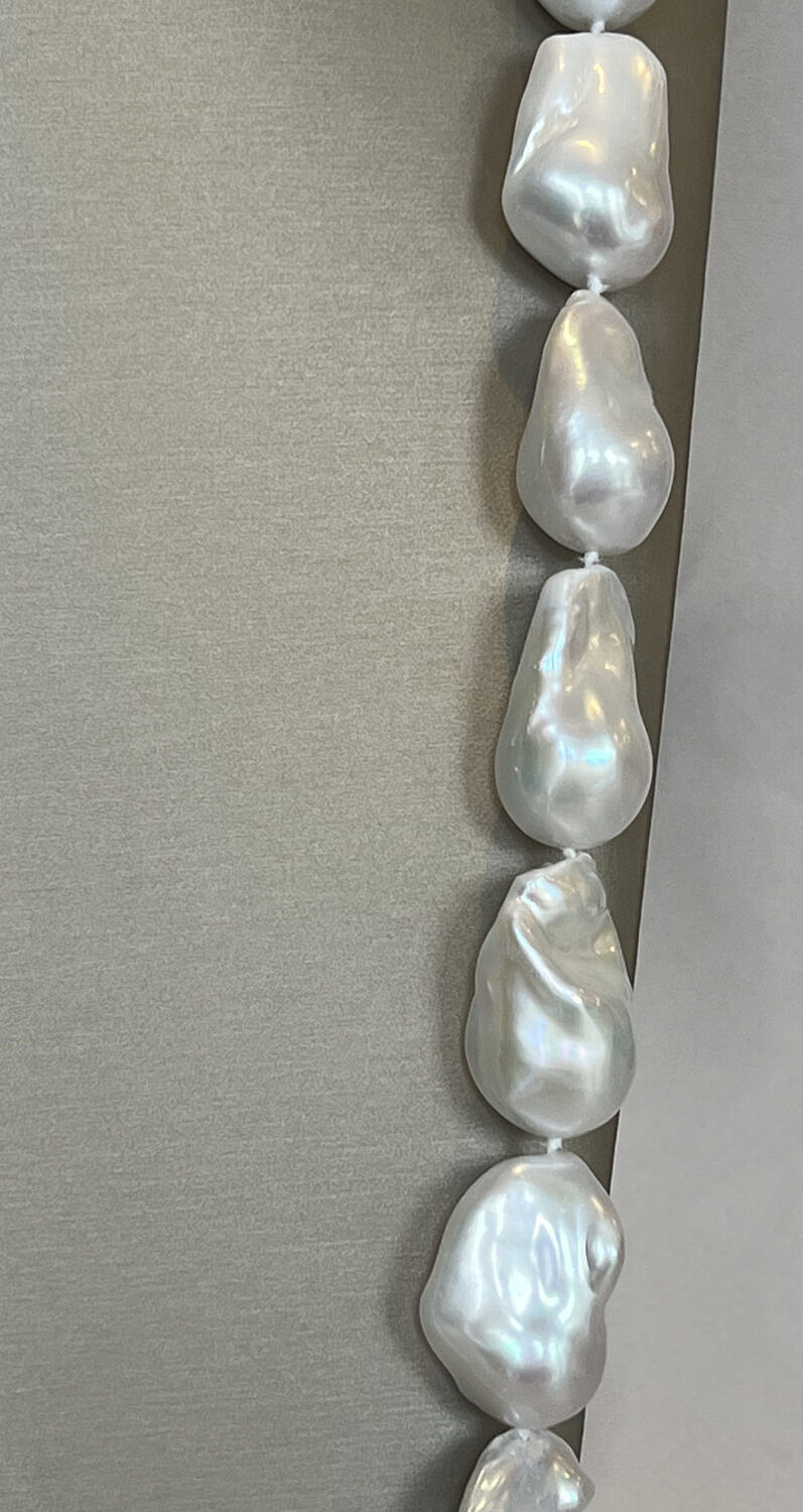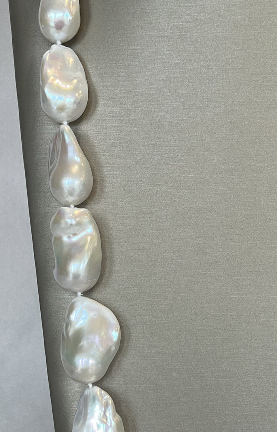 Very Fine 30mm x 36mm White Baroque Fresh Water Pearl Opera Length Necklace, 14k Gold Clasp Consign Now DeptJewelrySize30mm x 36mm Length 34 in. Very Fine 30mm x 36mm White Baroque Fresh Water Pearl Opera Length Necklace, 14k Gold Clasp, 3.48g 30mm x 36mm Length 34 in. Please note that this auction has ended. Click here for an overview of this auction.
