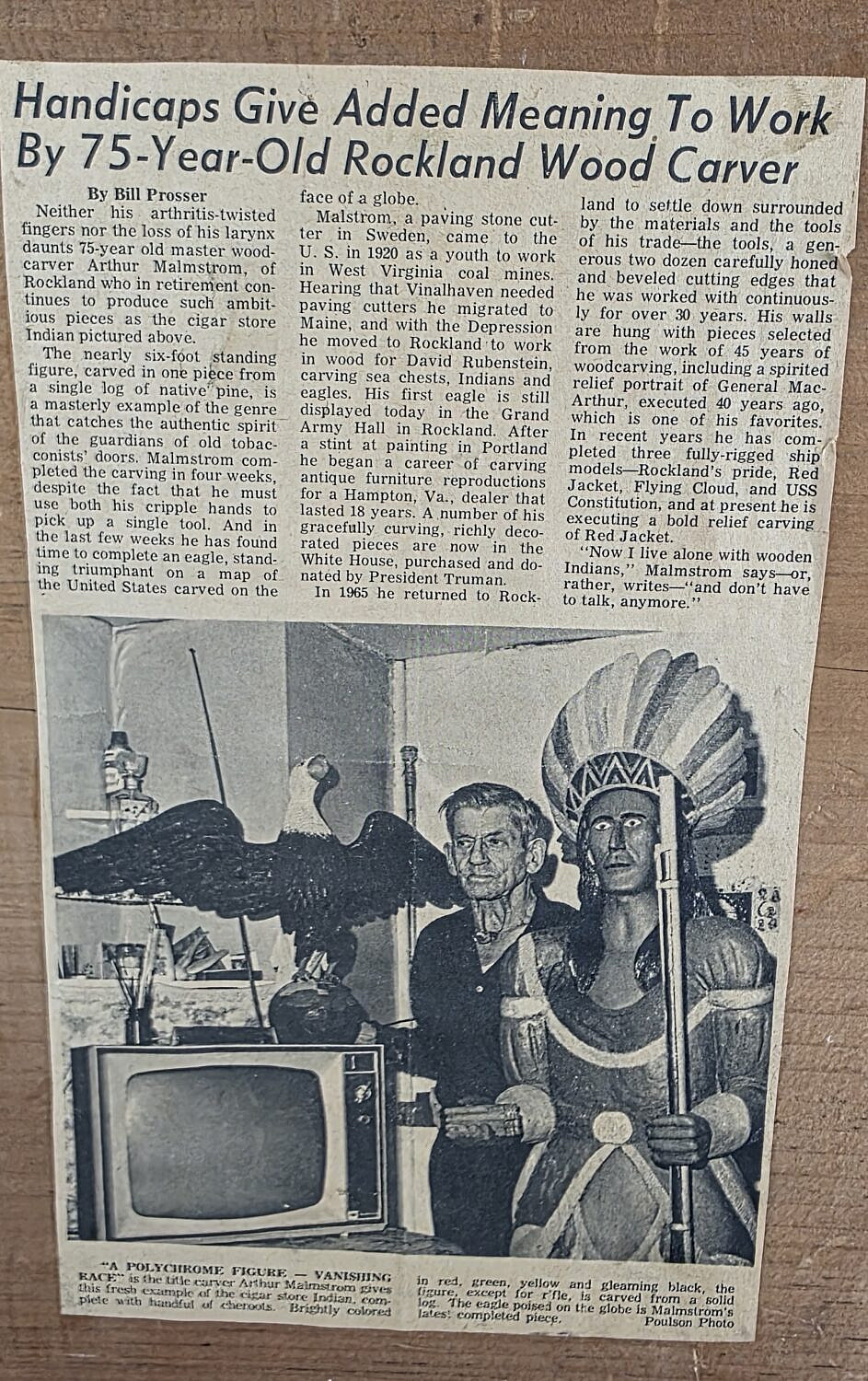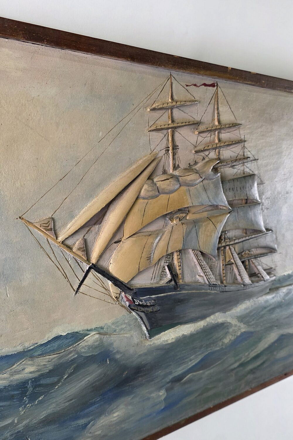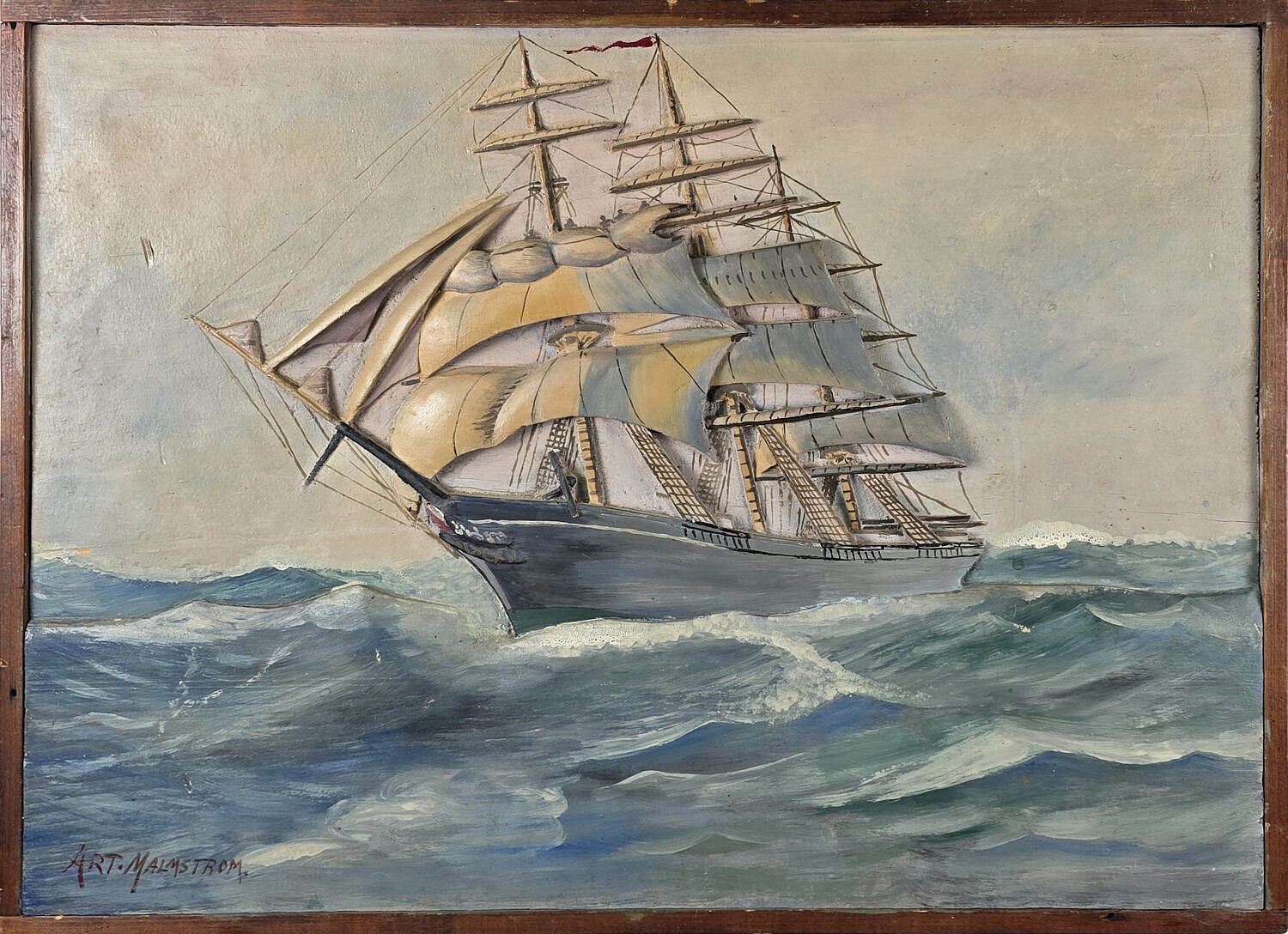 Vintage Art Malmstrom Relief Carved and Painted Clipper Ship Plaque, 20th Century Consign Now Dept20th Century Design, Americana and Folk Arts, Decorative Arts, Fine Arts, Maritime ArtsSize17.5 in. X 24.5 in. Vintage Art Malmstrom Relief Carved and Painted Clipper Ship Plaque, 20th century, depicting a clipper ship on the open seas, signed lower left, with inscription on reverse, Christmas Present From Dad 1944 17.5 in. X 24.5 in. Please note that this auction has ended. Click here for an overview of this auction.