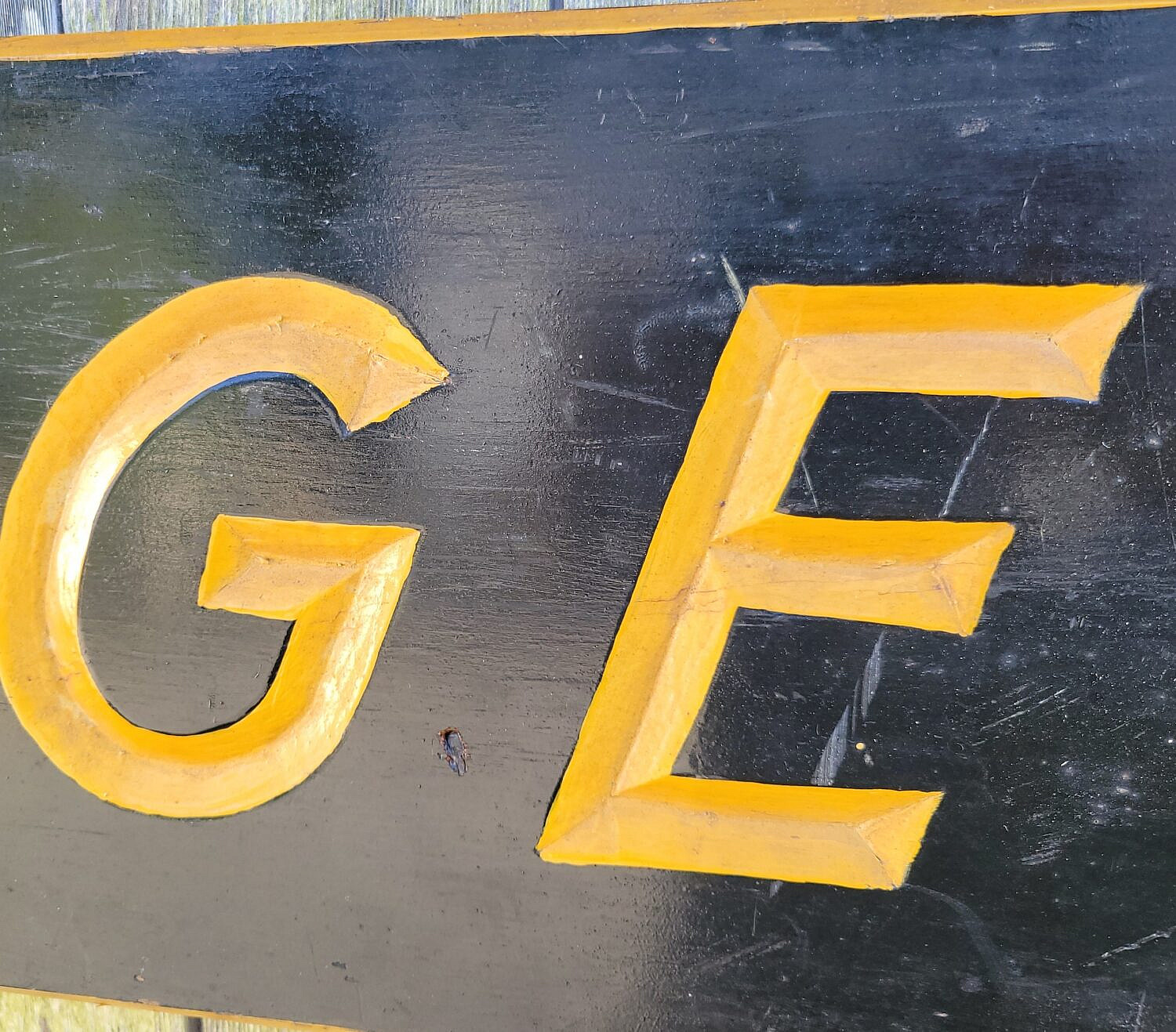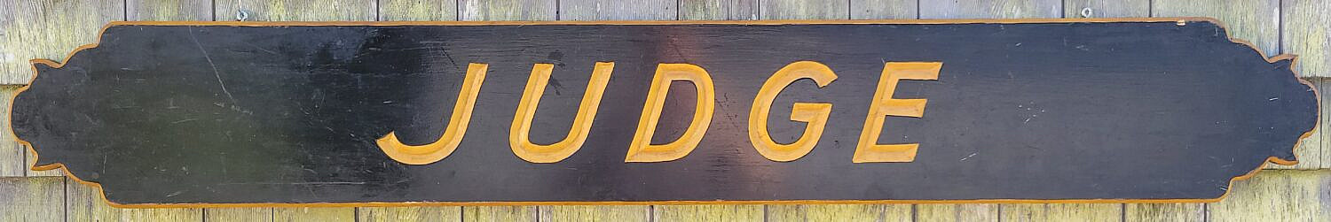 Vintage Carved and Painted Ship “Judge” Quarterboard Name Plaque Consign Now DeptMaritime ArtsSizeHeight 9.5 in. Width 66 in. Vintage Carved and Painted Ship “Judge” Quarterboard Name Plaque, mid 20th century, gold painted carved letters on black painted backboard. Height 9.5 in. Width 66 in. Please note that this auction has ended. Click here for an overview of this auction.