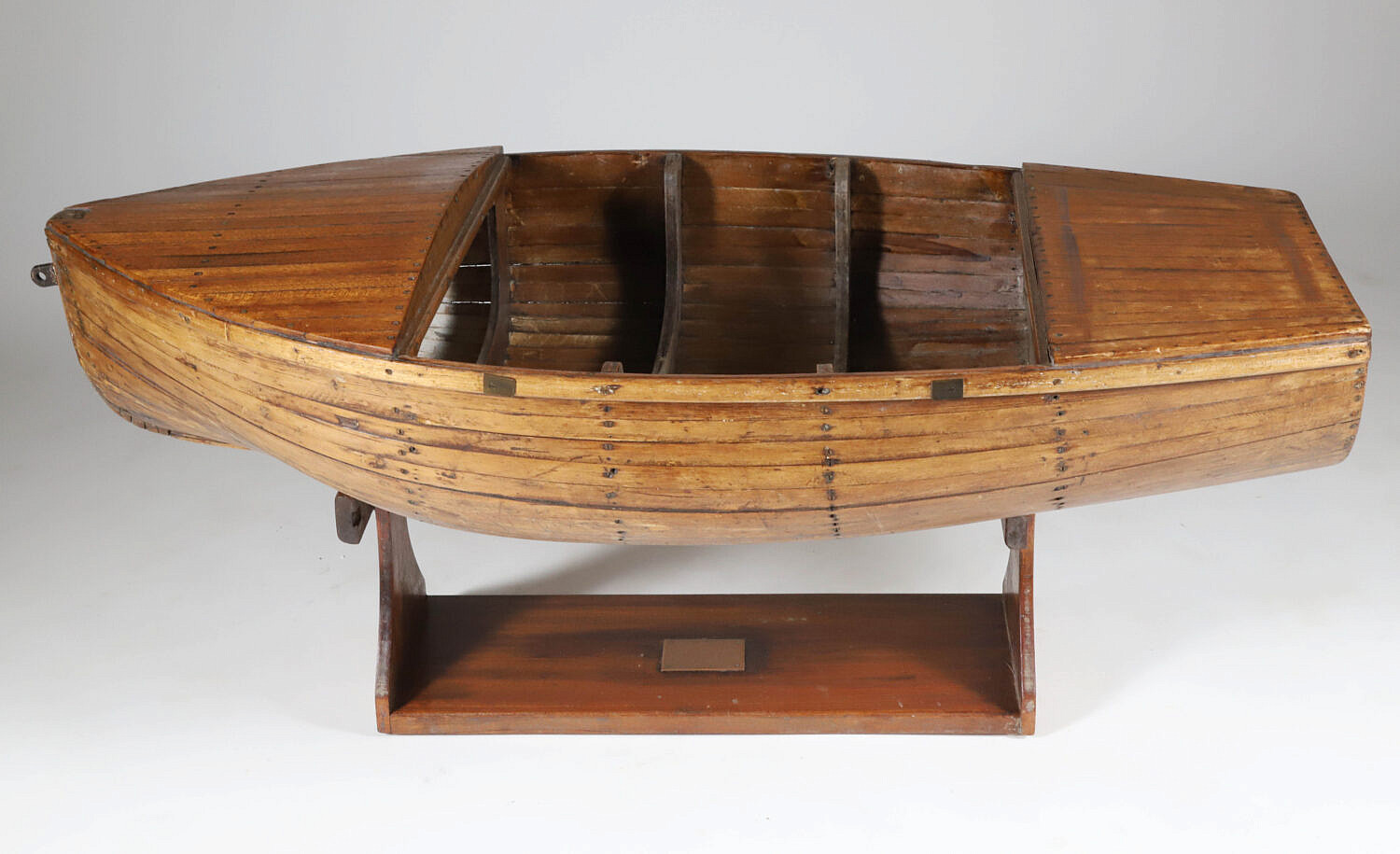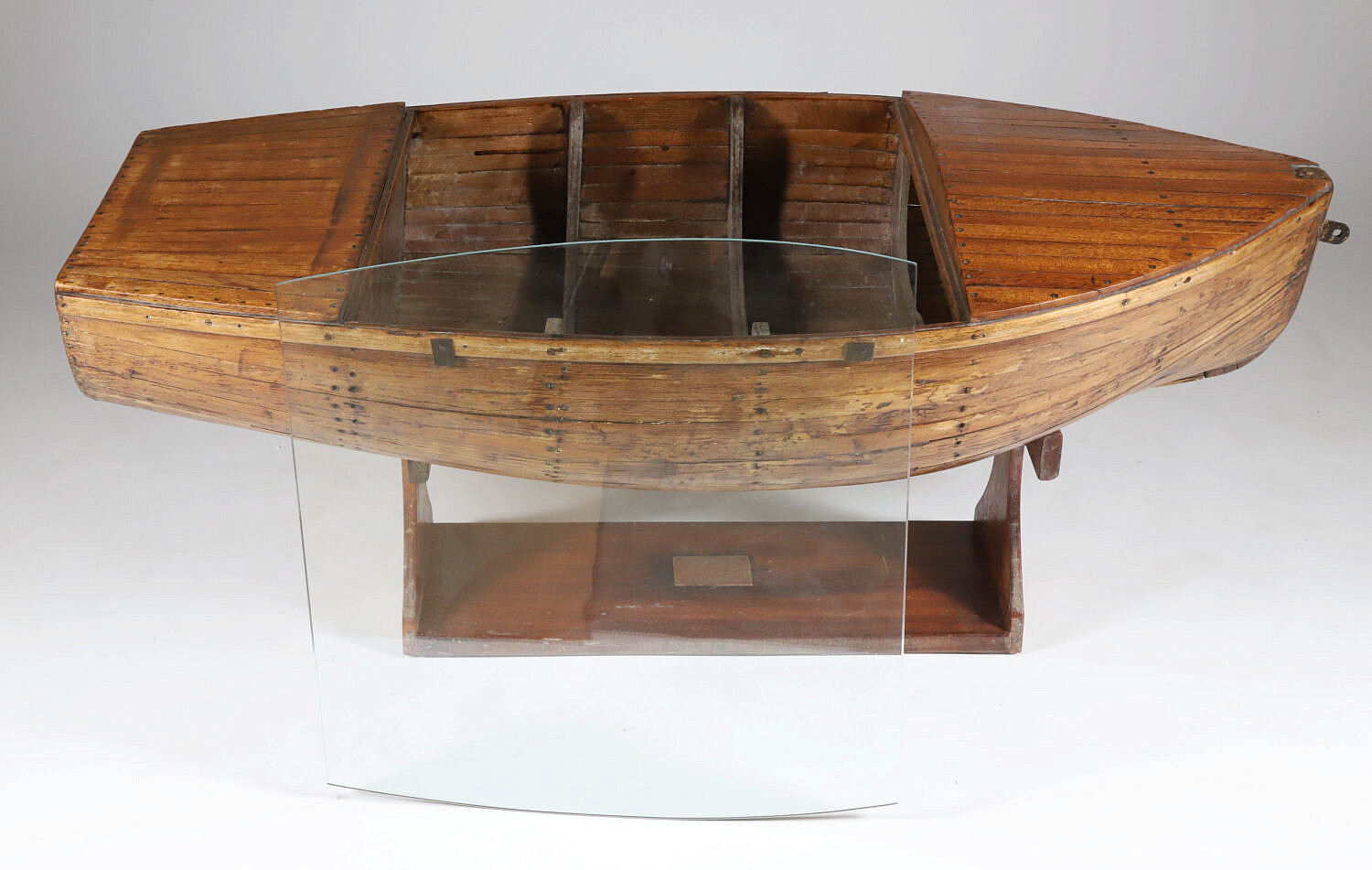 Vintage Hand Crafted Glass Top Dory Coffee Table