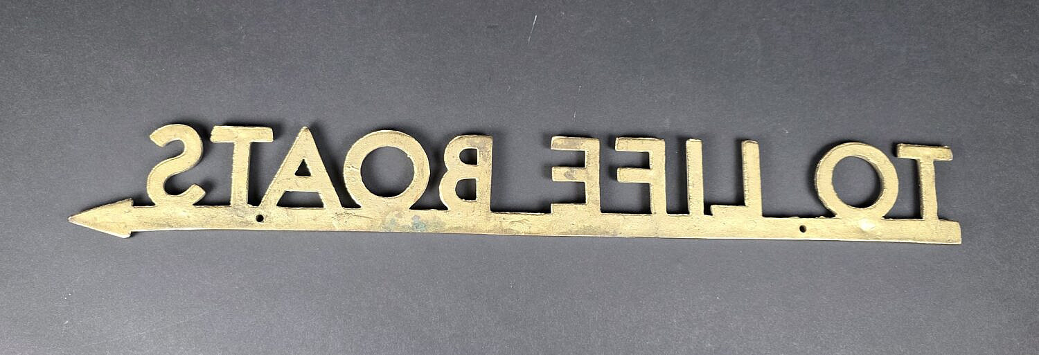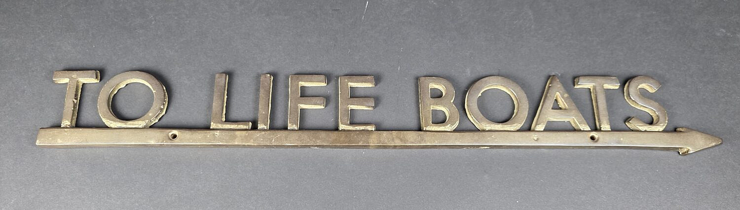 Vintage Solid Brass, “To Life Boats” Nautical Naval Deck Sign, 20th century