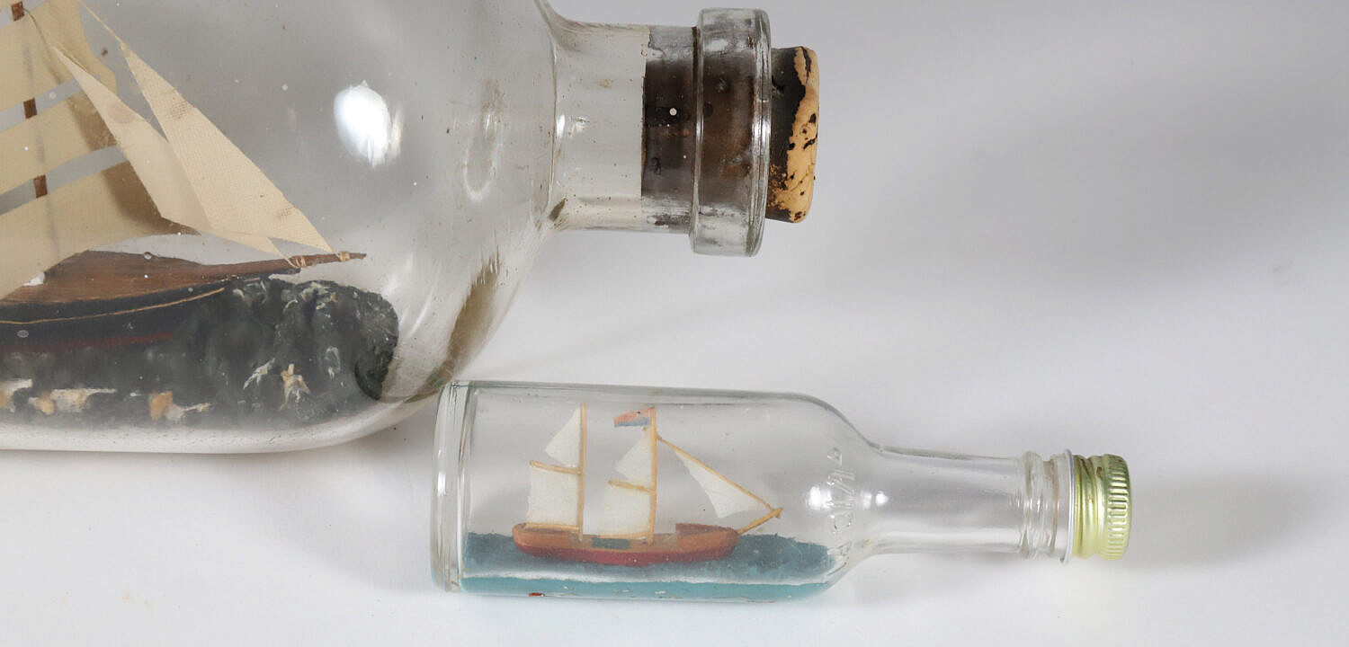 Group of Three Folk Art Ships in a Bottle Consign Now DeptDecorative Arts, Maritime ArtsSizeLengths smallest 4.5 in. largest 11 in. Group of Three Folk Art Ships in a Bottle Lengths smallest 4.5 in. largest 11 in. Please note that this auction has ended. Click here for an overview of this auction.