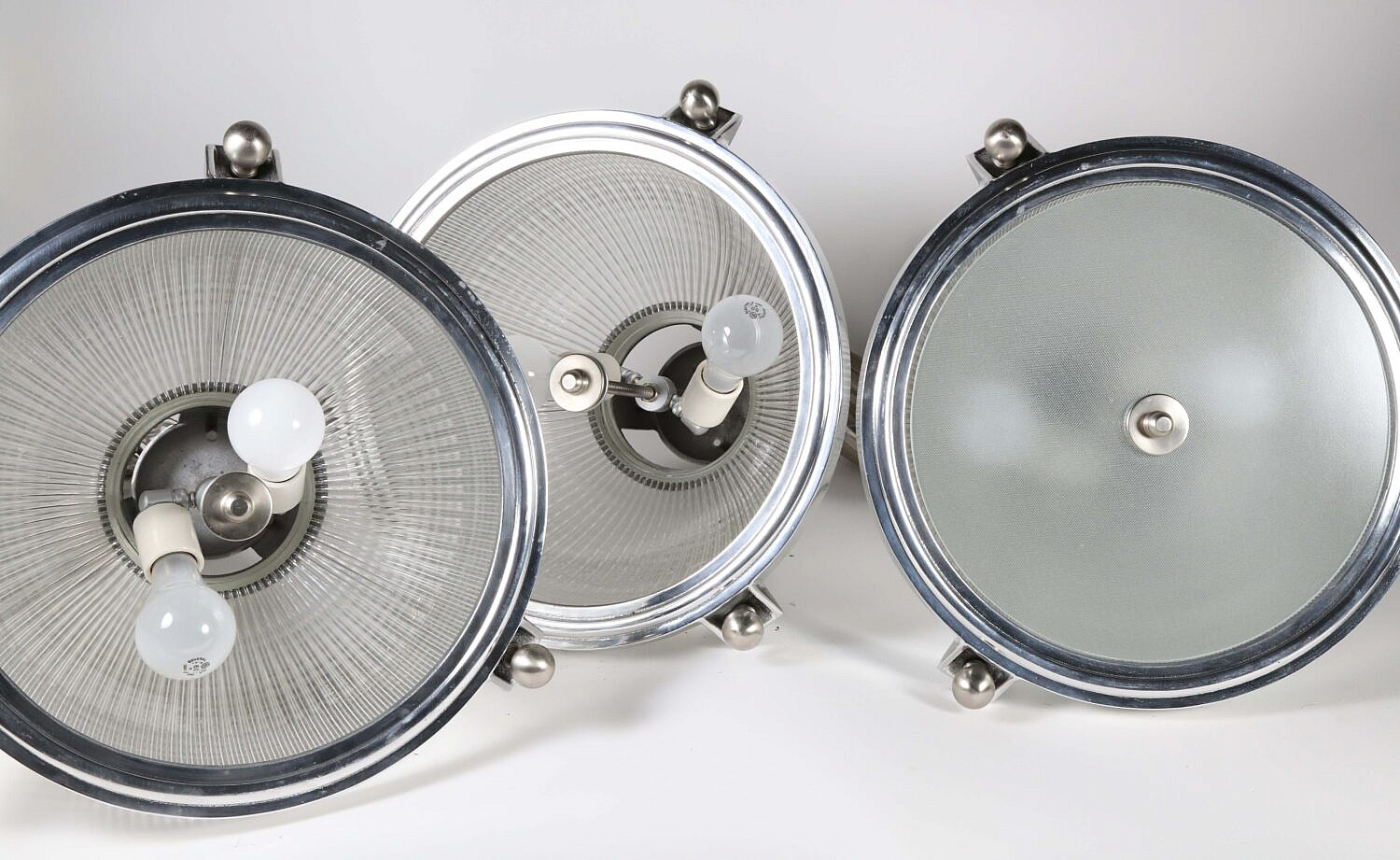 Three Contemporary Light Fixtures Consign Now DeptFurniture, Lighting/Candlesticks/SconcesSizeHeight 24 in. Diameter 15 in. Three Contemporary Light Fixtures, nickel plated with reeded clear glass bells Height 24 in. Diameter 15 in. Please note that this auction has ended. Click here for an overview of this auction.