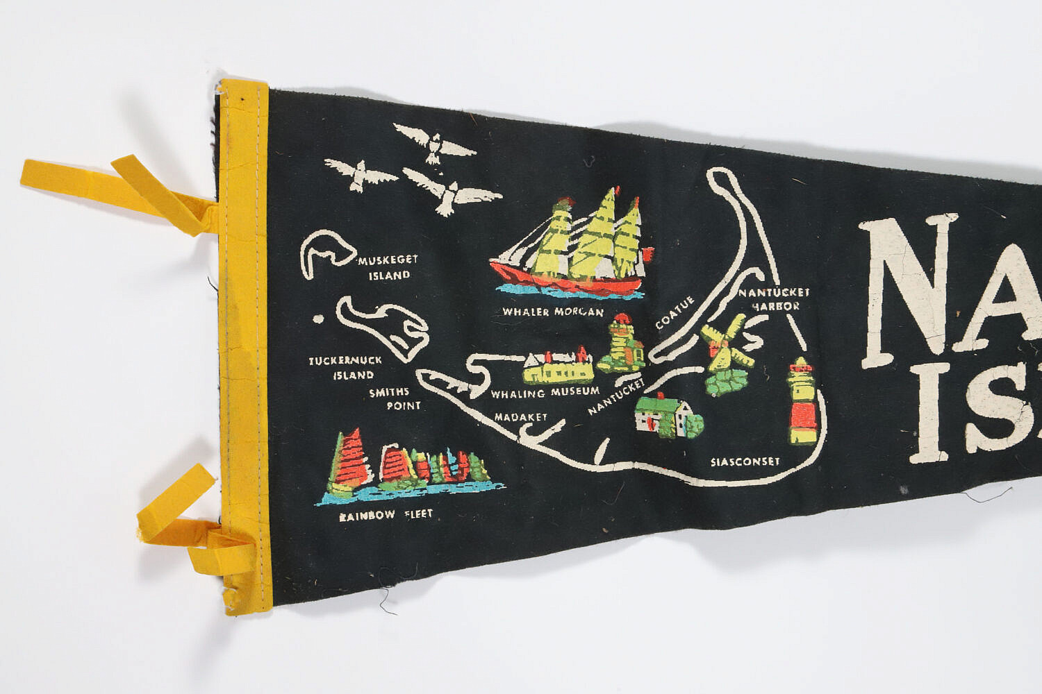 Vintage Nantucket Pennant with Island Map, Whale Ship Morgan, Rainbow Fleet and Prominent Landmarks Consign Now DeptDecorative Arts, Nantucket ArtSizeLength 26 in. Vintage Nantucket Pennant with Island Map, Whale Ship Morgan, Rainbow Fleet and Prominent Landmarks Length 26 in. Please note that this auction has ended. Click here for an overview of this auction.